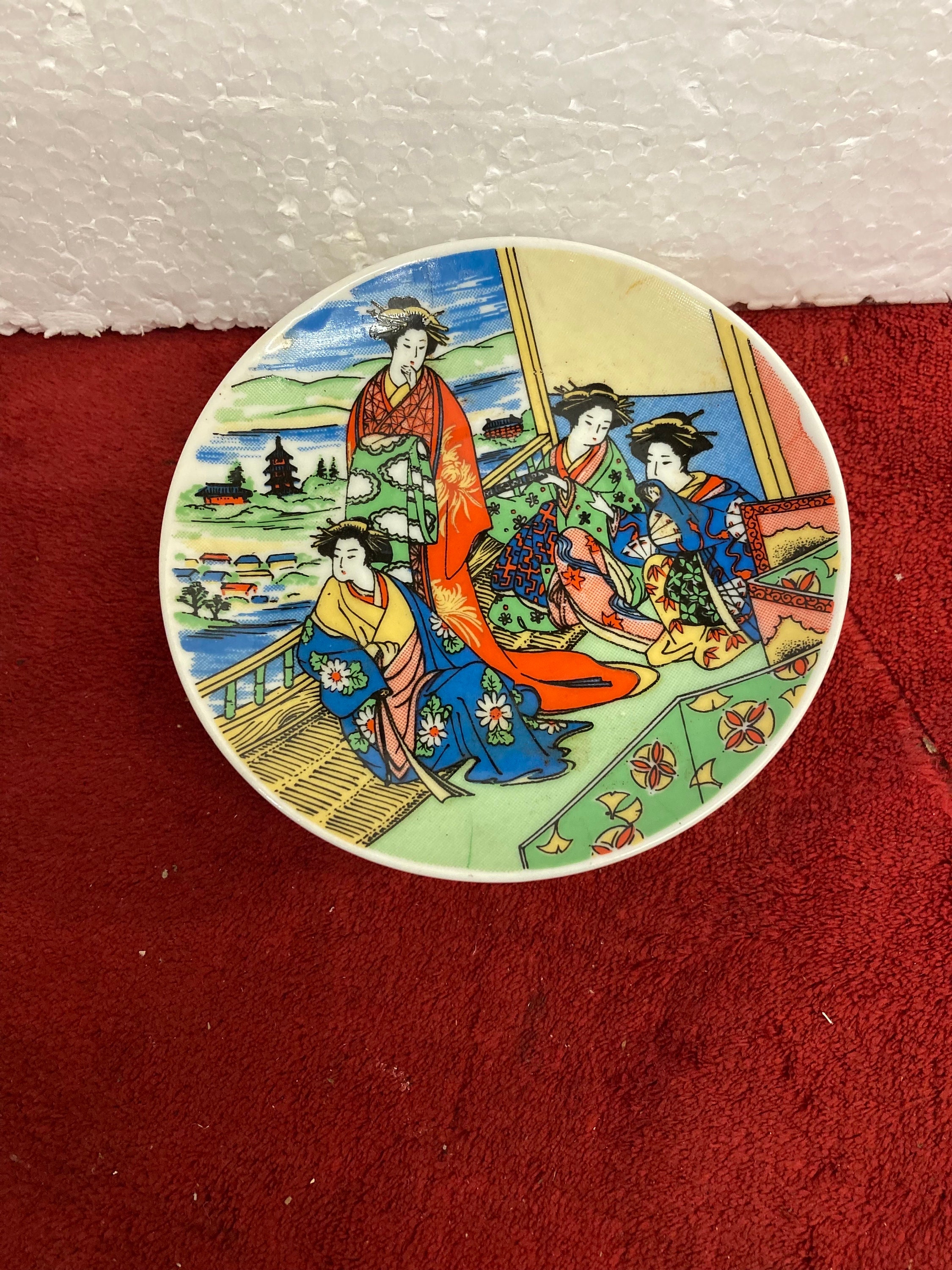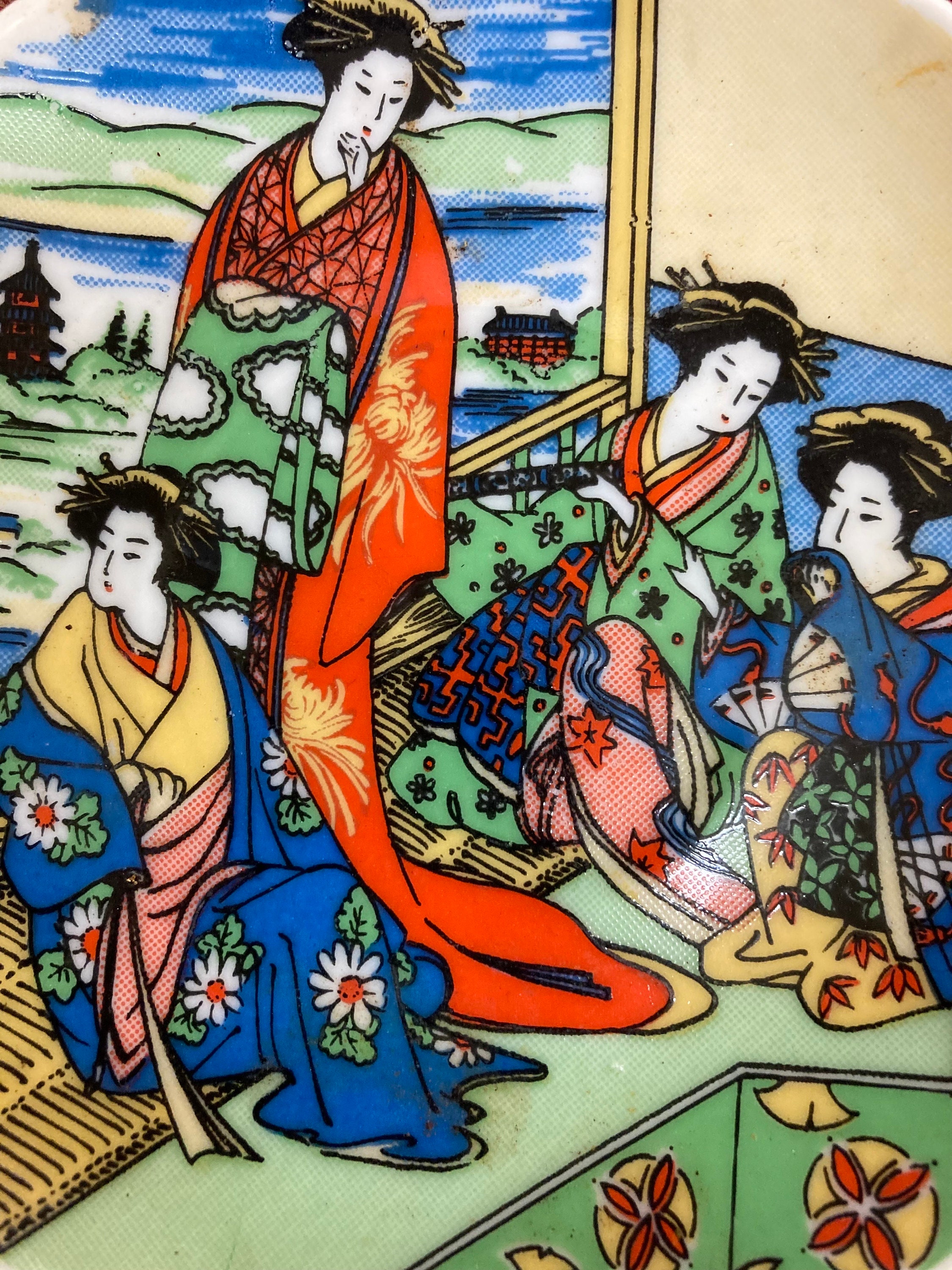 Featuring 4 Geisha girls , one standing, 3 sitting in vibrant vivid colors