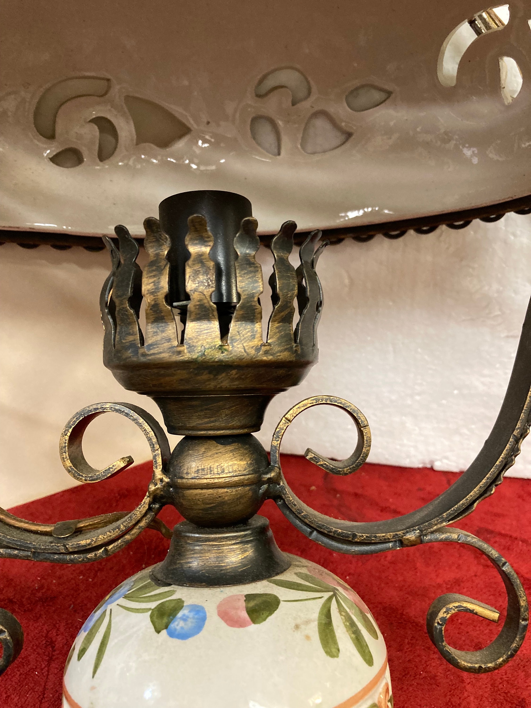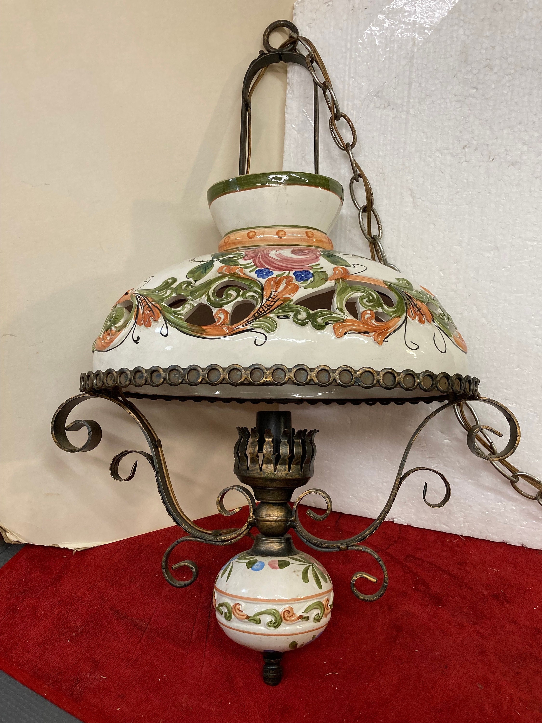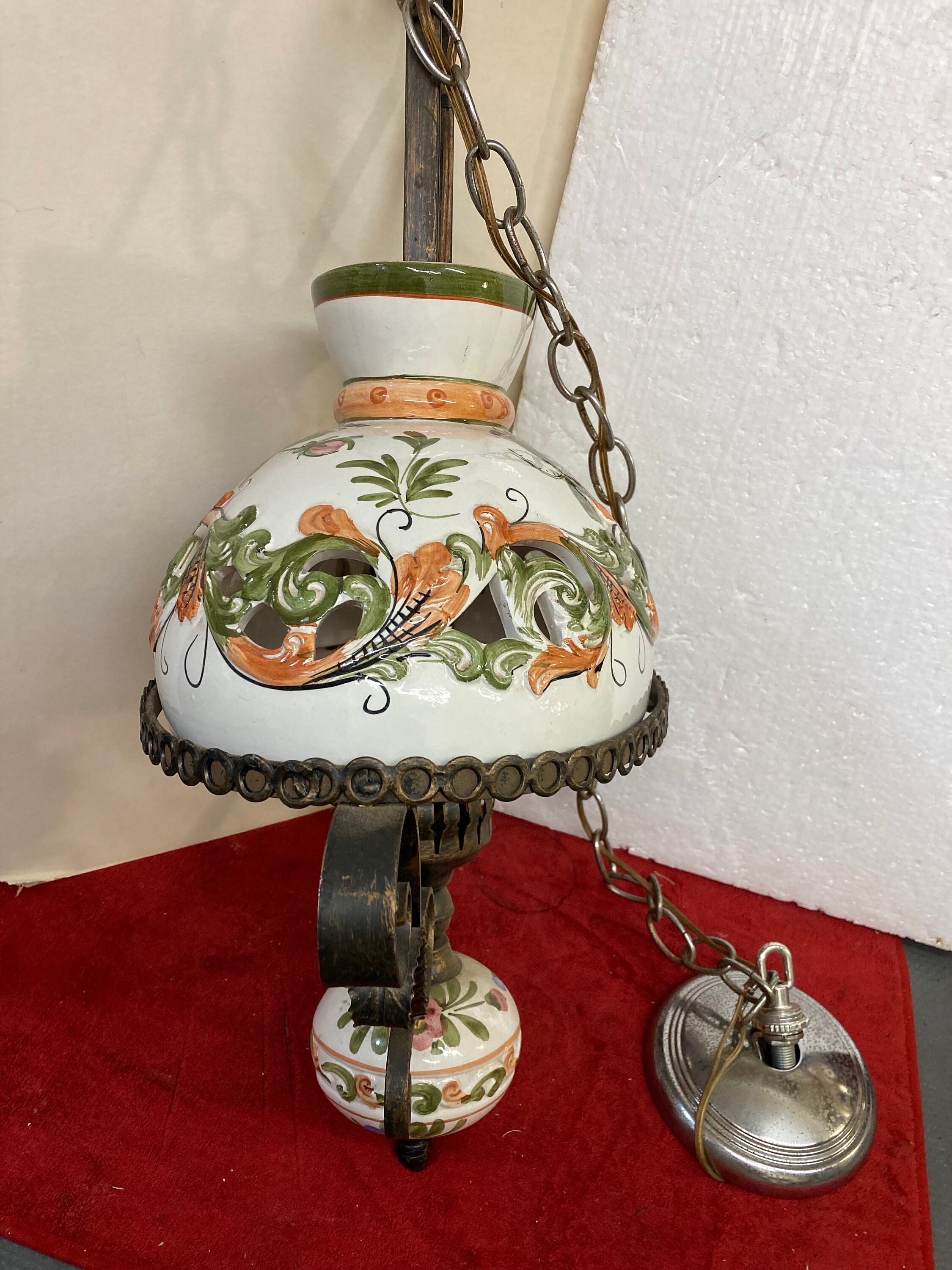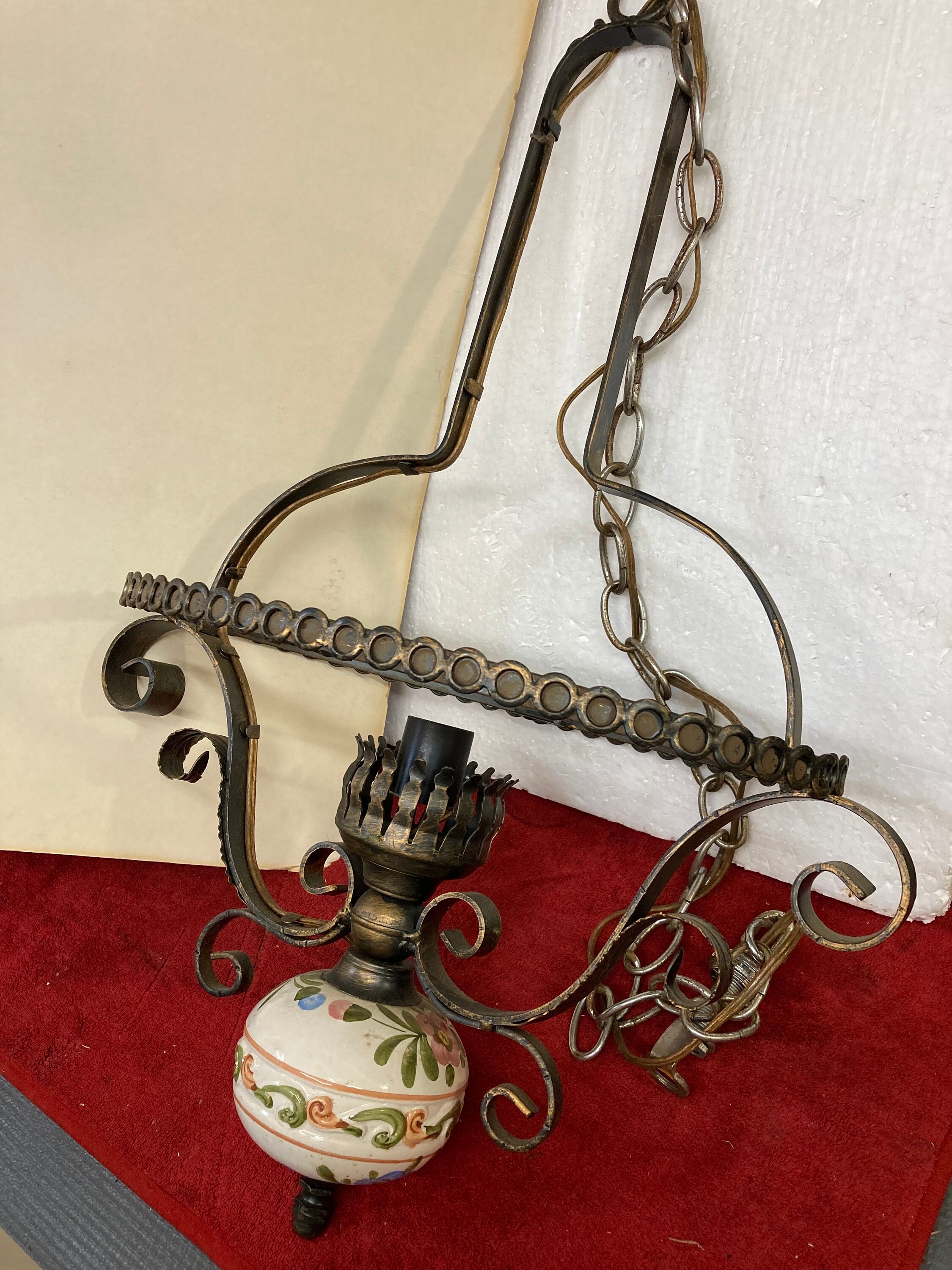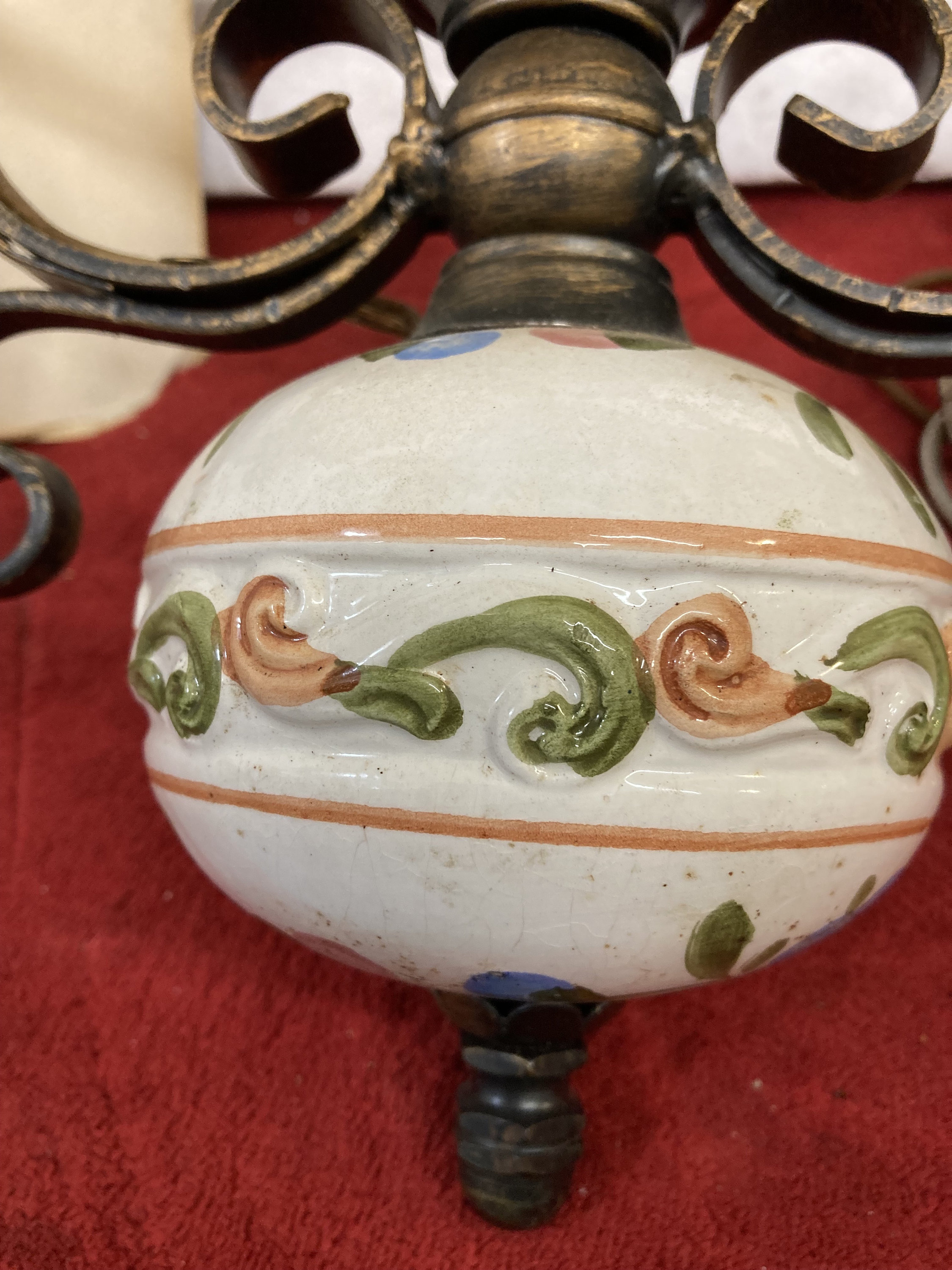 Vintage Hand Painted Porcelain & Wrought Iron Chandelier