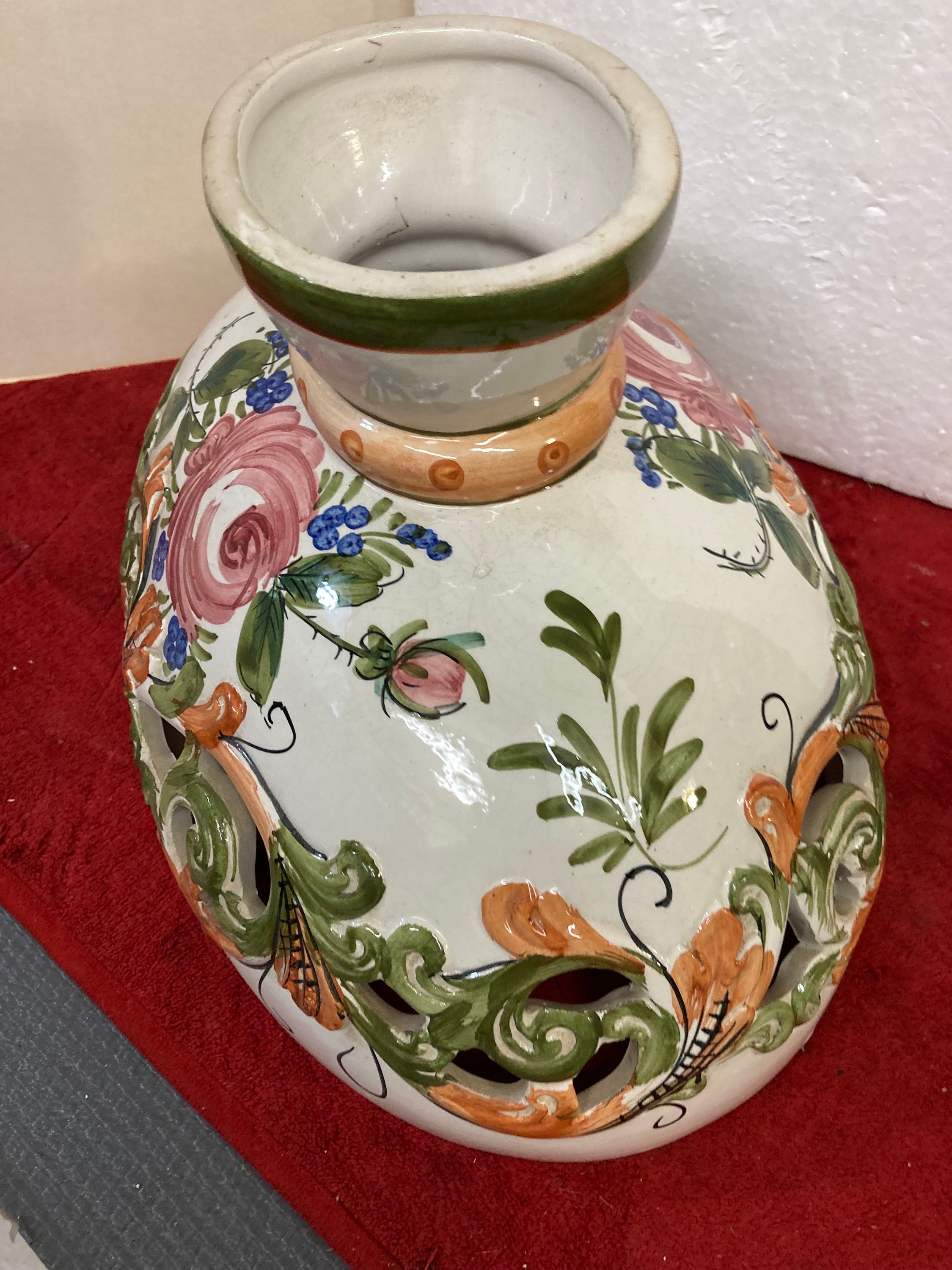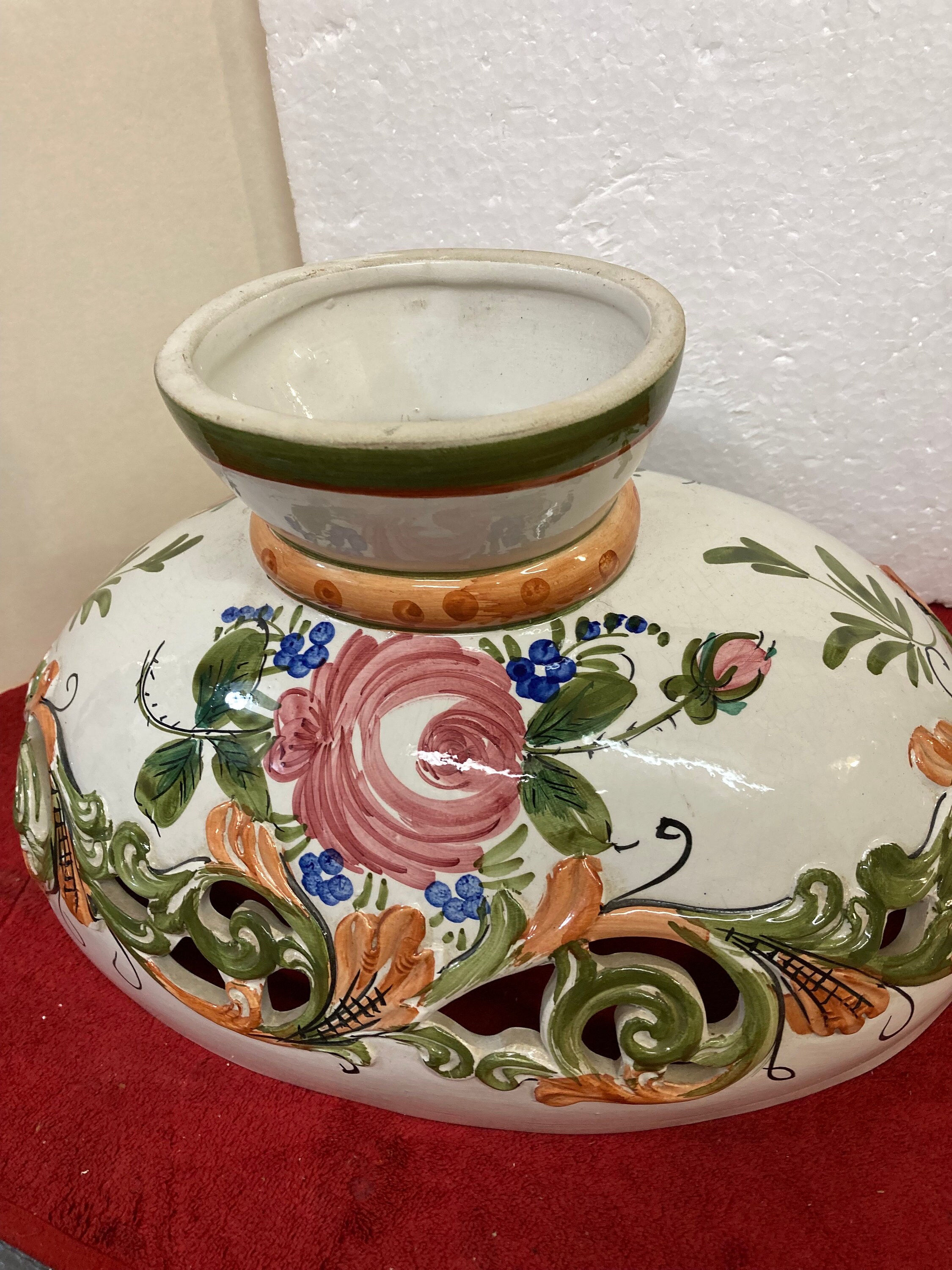 Early 20th Century Hand Painted Porcelain and wrought Iron