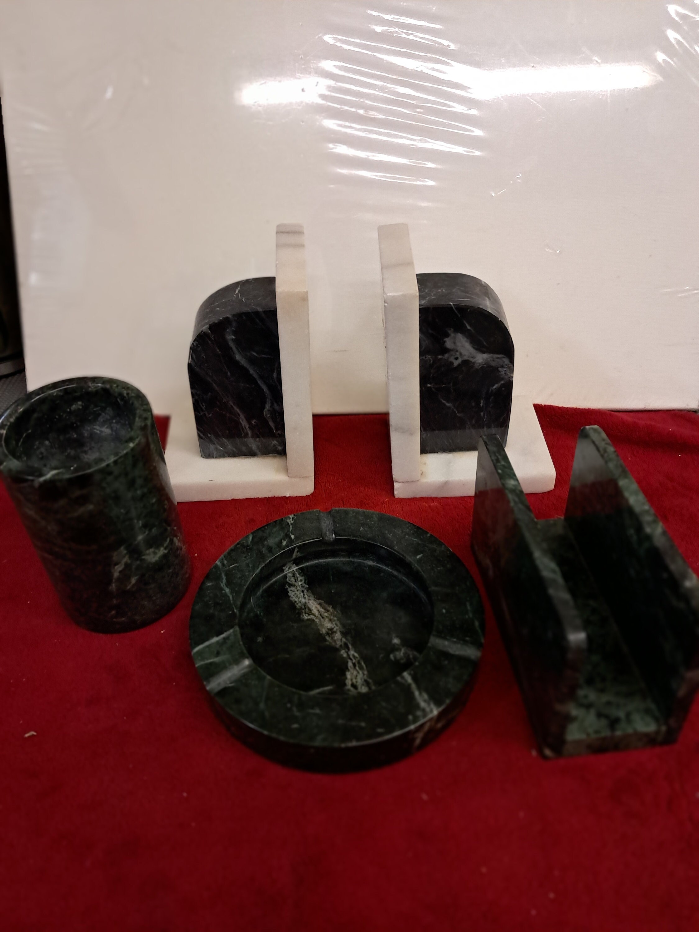 Vintage Art Deco Polished Marble Desk 5Pcs. Set