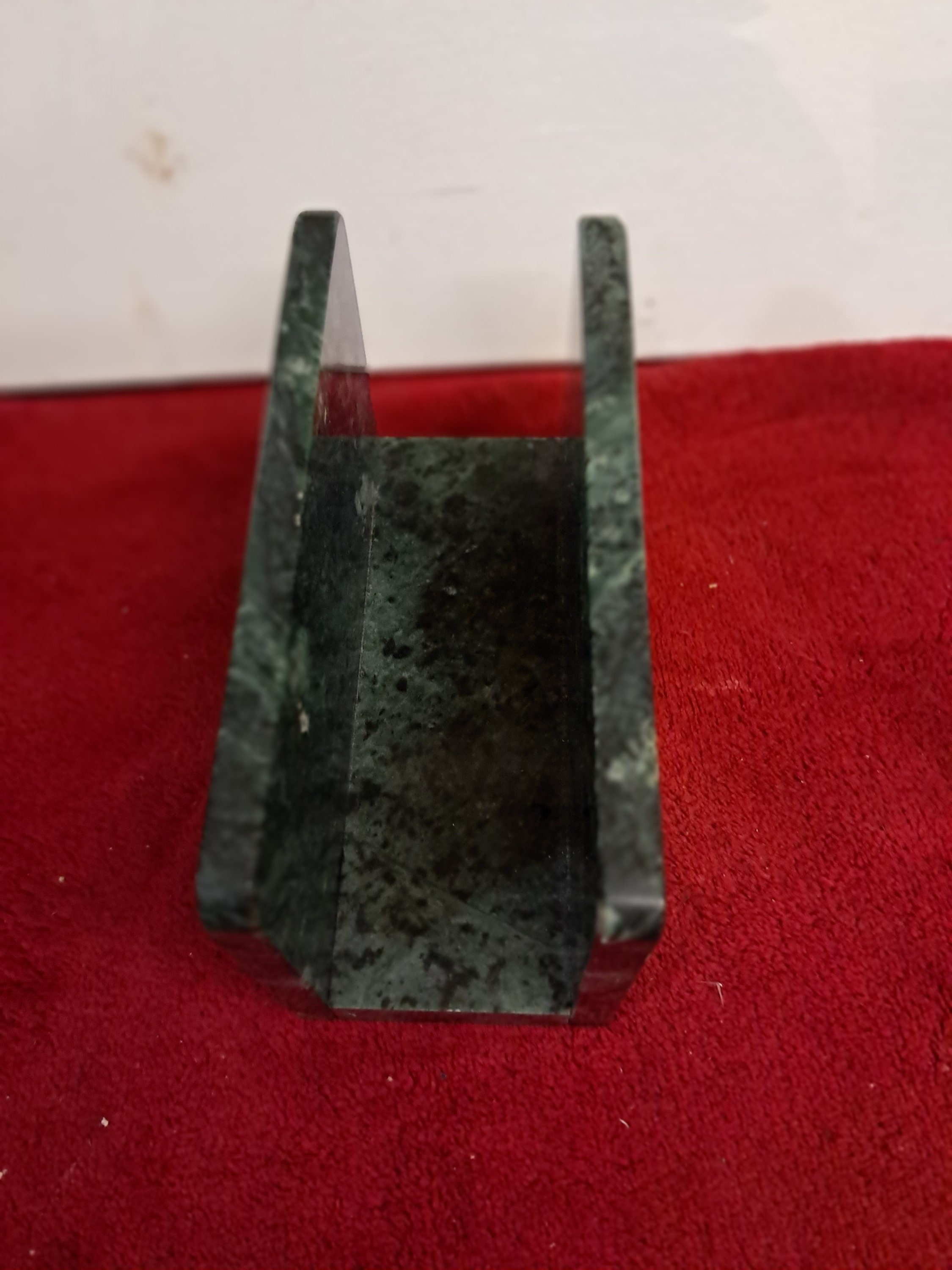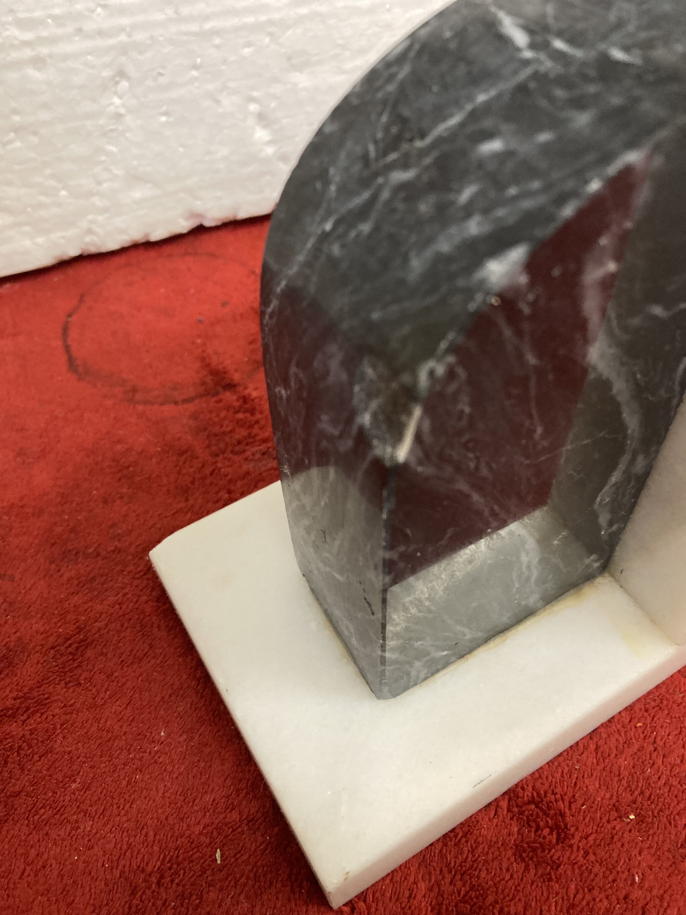 Vintage Art Deco Black Gray White Polished Marble Arch Bookends Book Ends