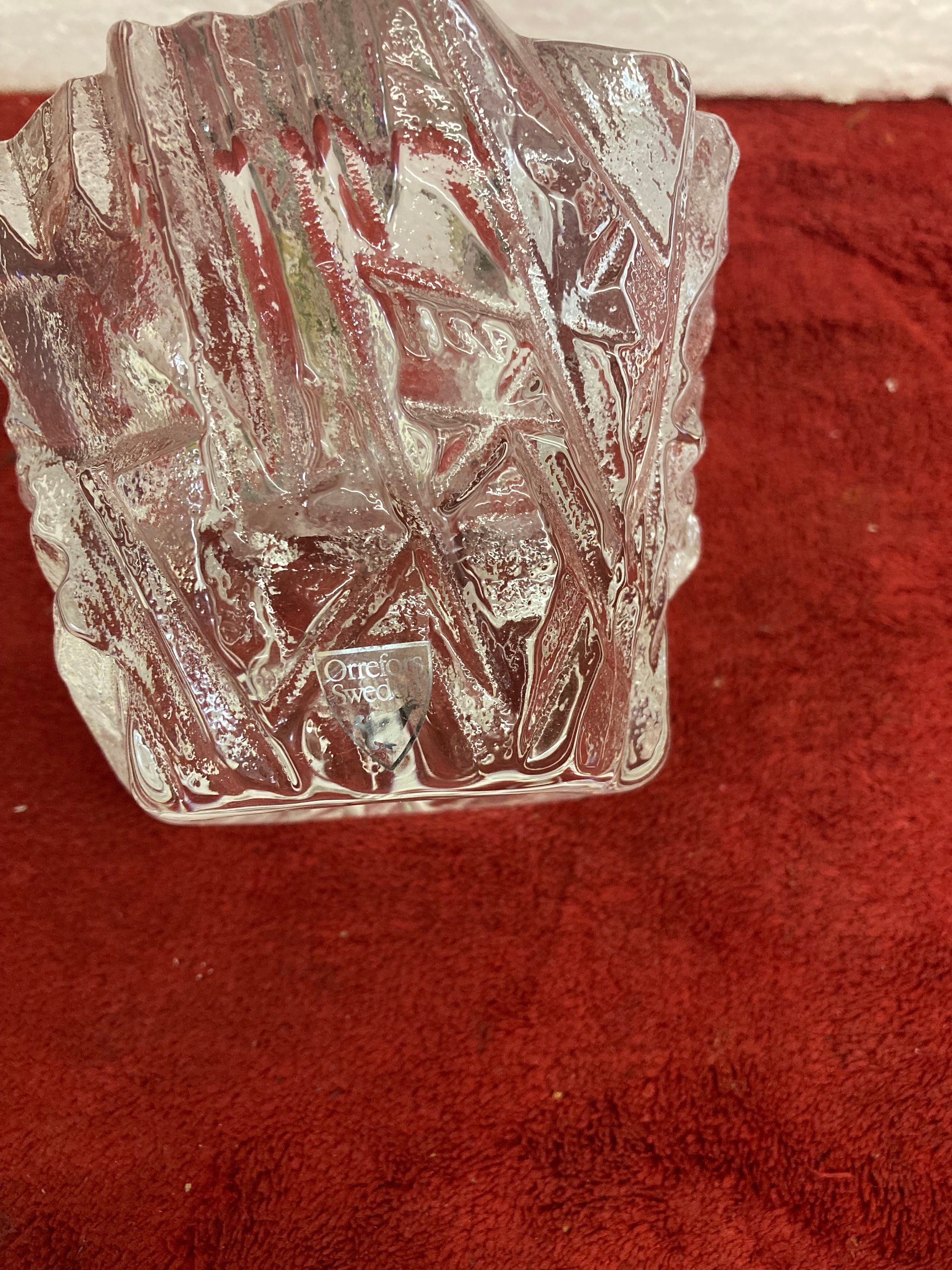 Orrefors Sweden Precious Crystal Votive Candle HolderCrystal Candle Holder 4.25" wide X 3.25" tall x 4.35" deepBase 2 .75"Weight : 2.5 lbs.Excellent ConditionNo Damages