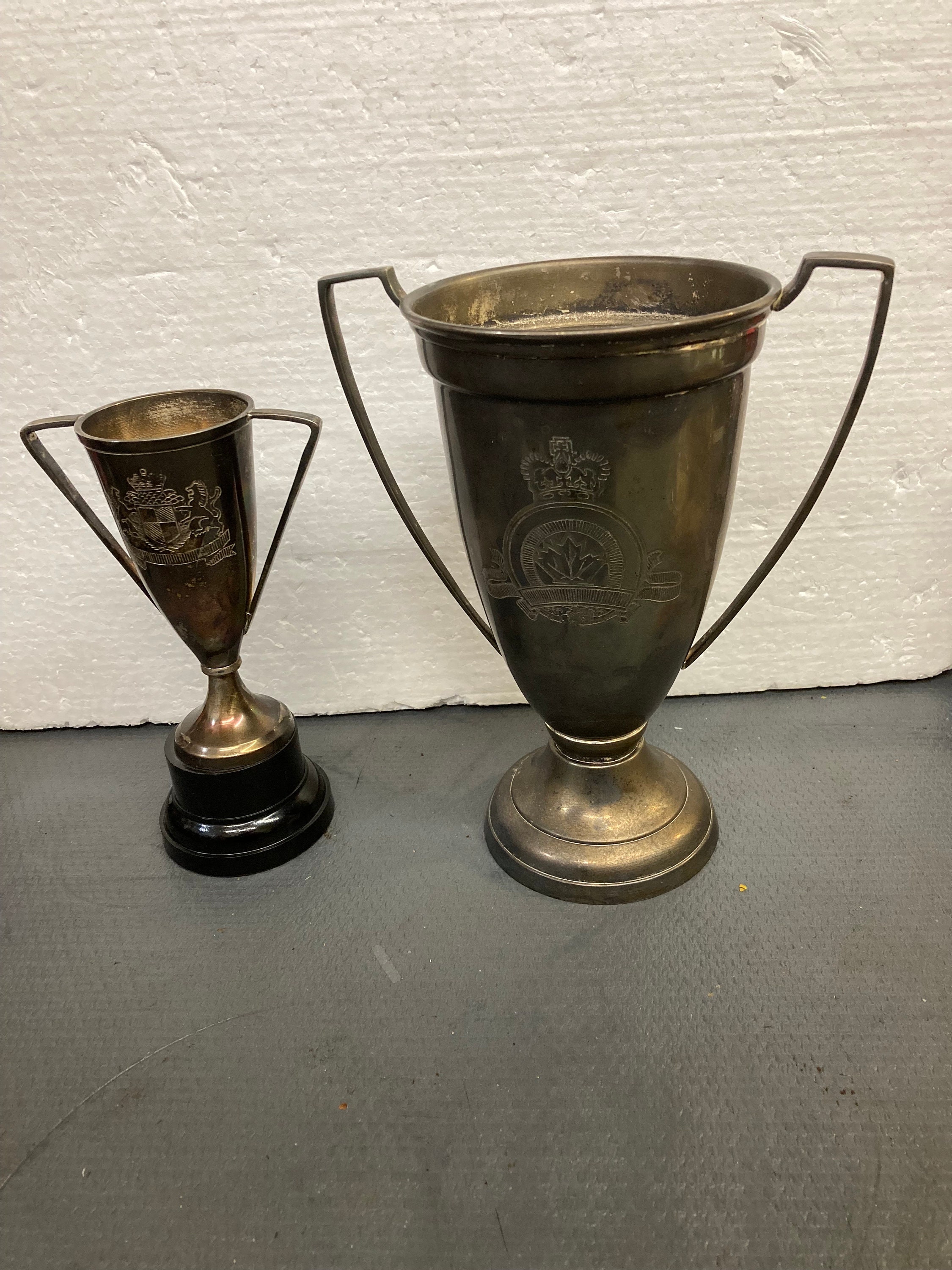 the taller one seems to have a Maple Leaf ( perhaps Canadian) and English royalty Crown on top