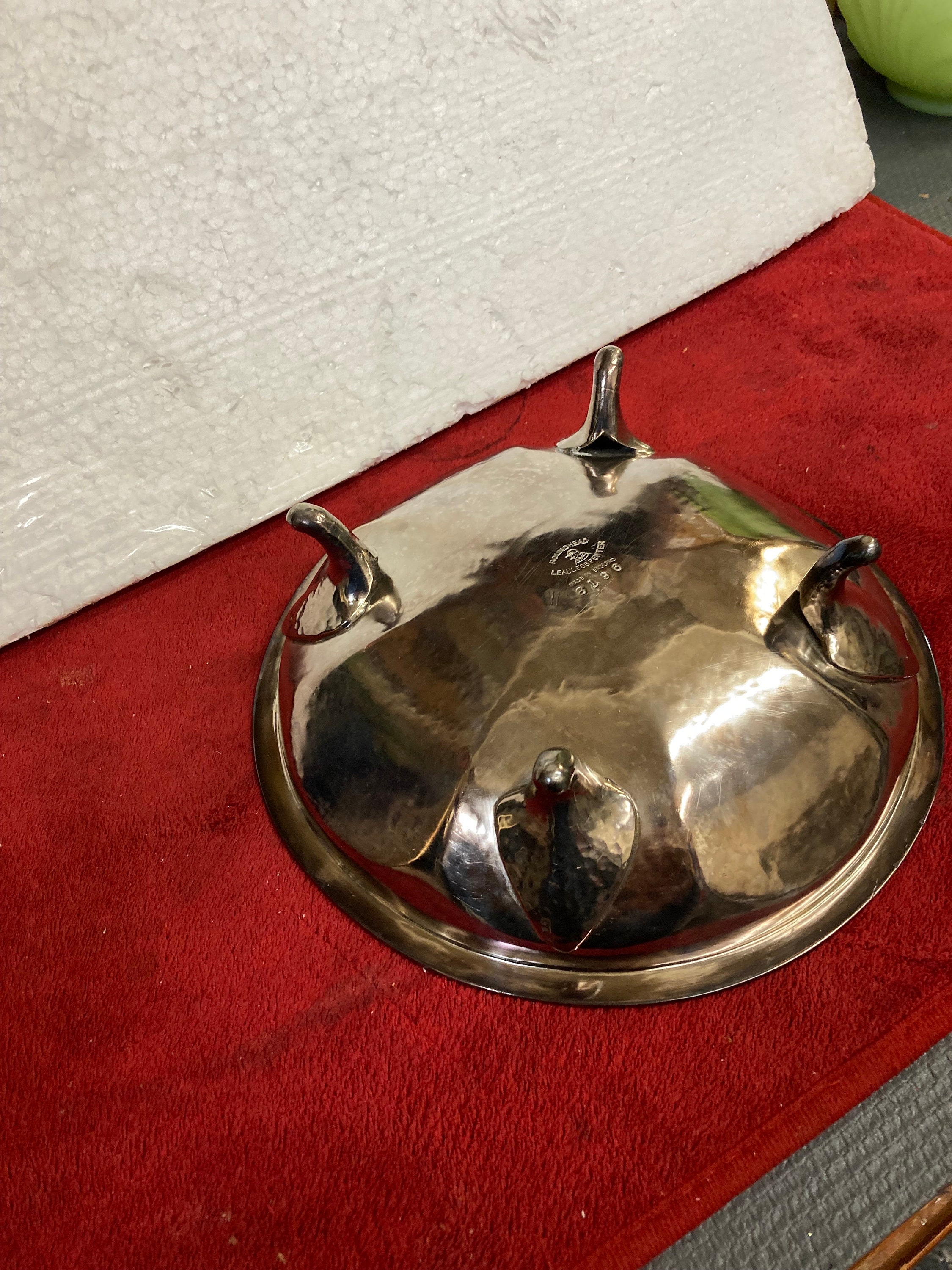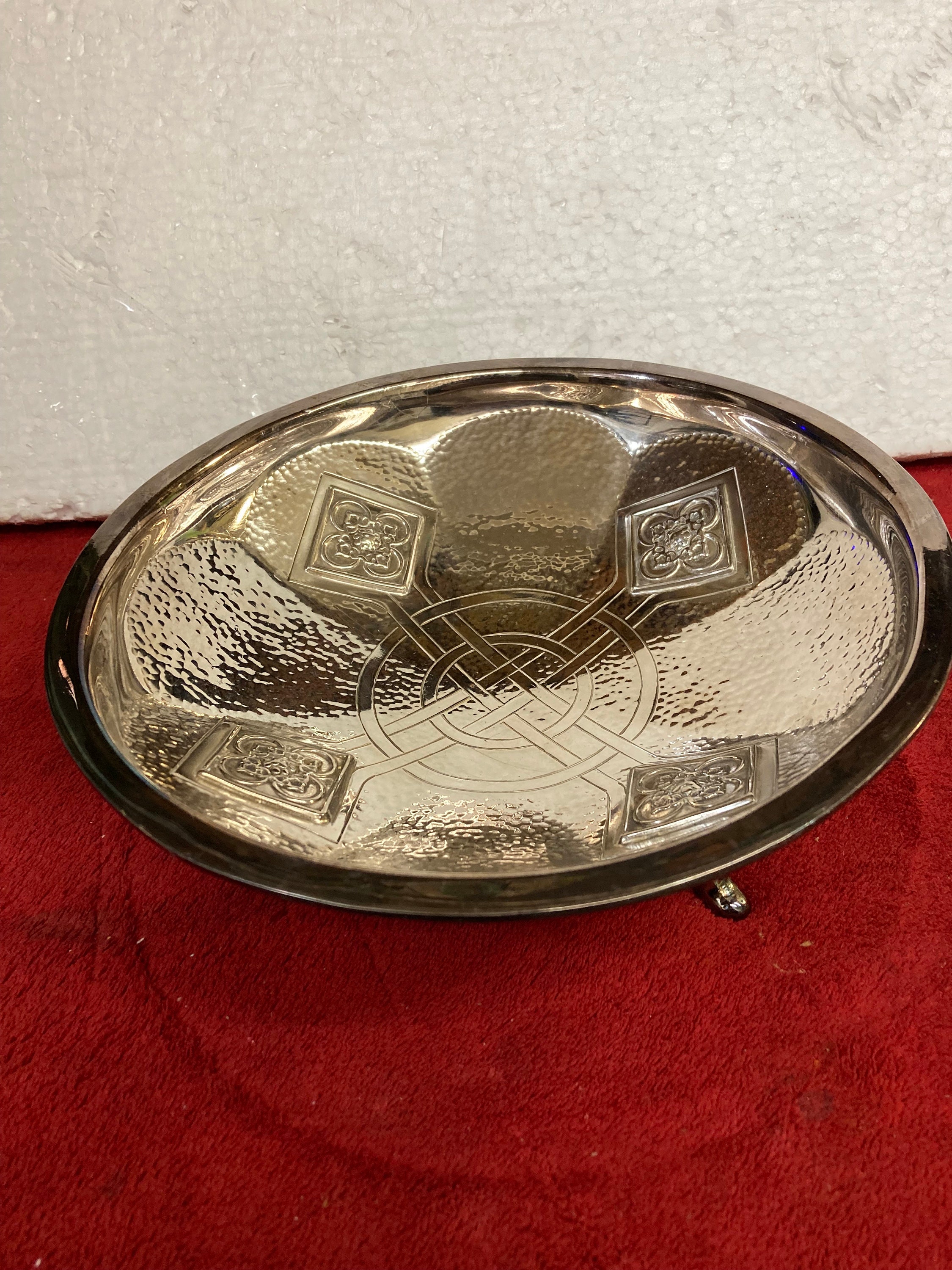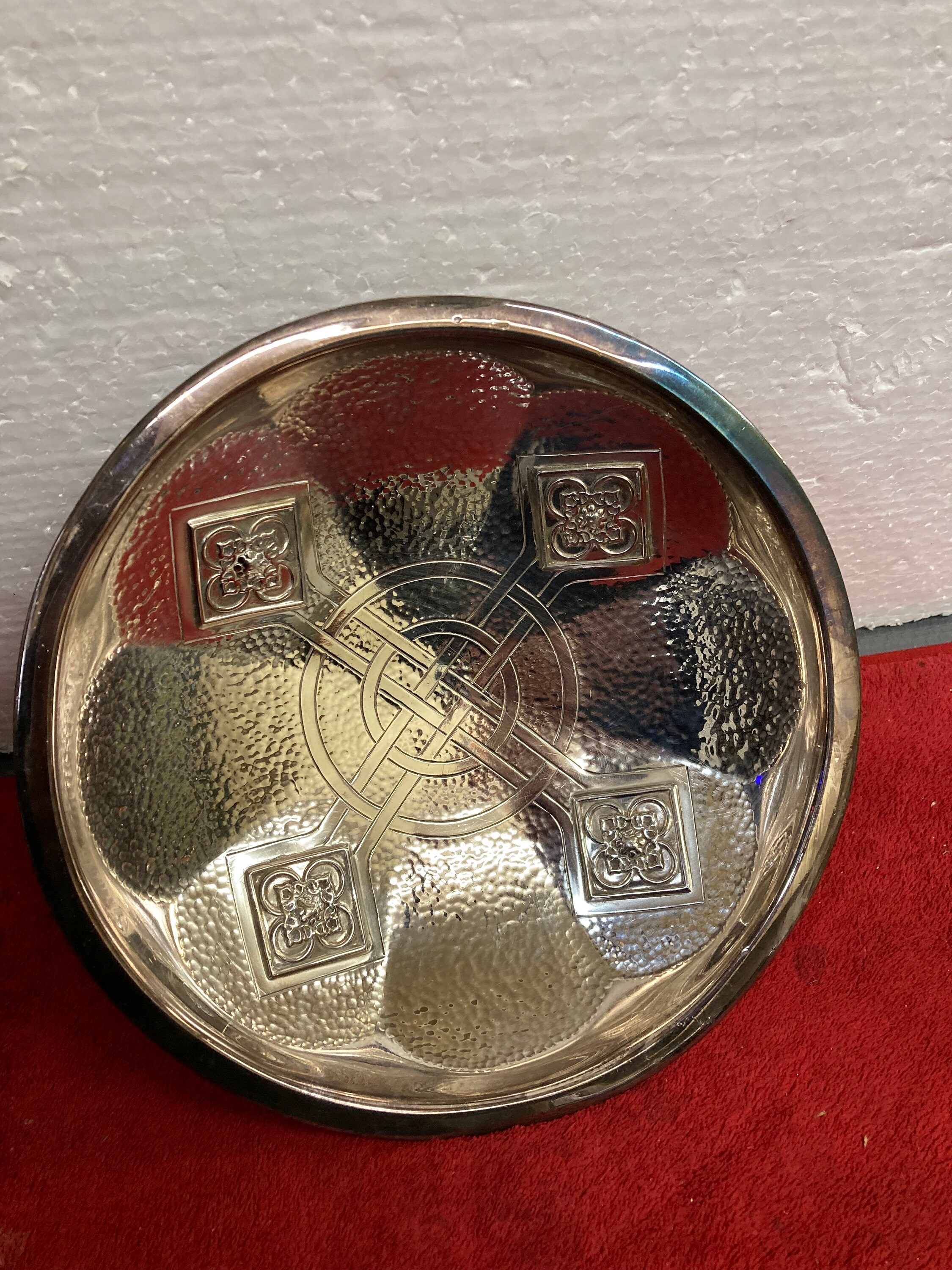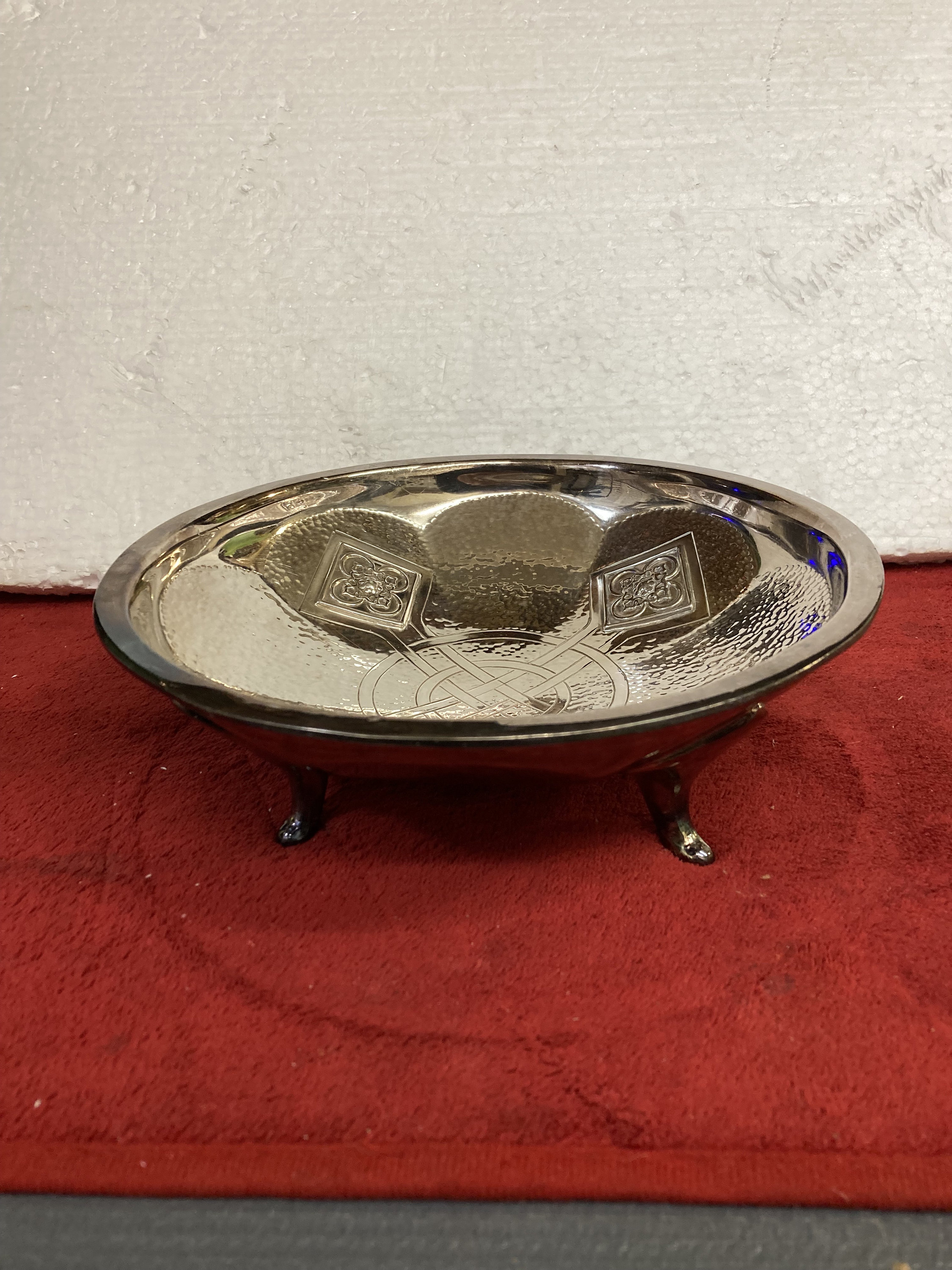 Antique Arts and Crafts style hammered and artful designed effect pewter Footed Bowl.