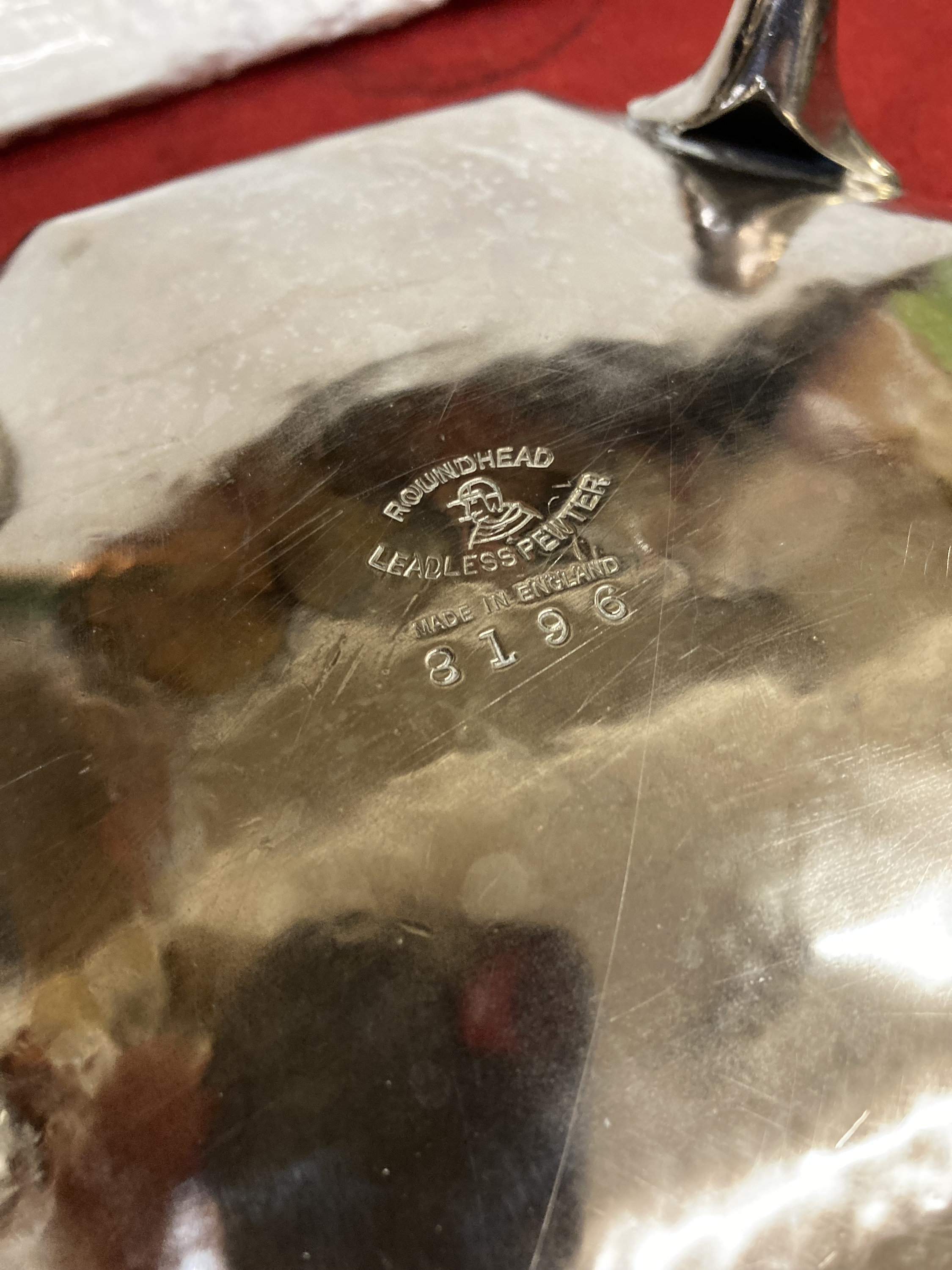 Marked on base: ROUNDHEAD LEADLESS PEWTER MADE IN ENGLAND 8196