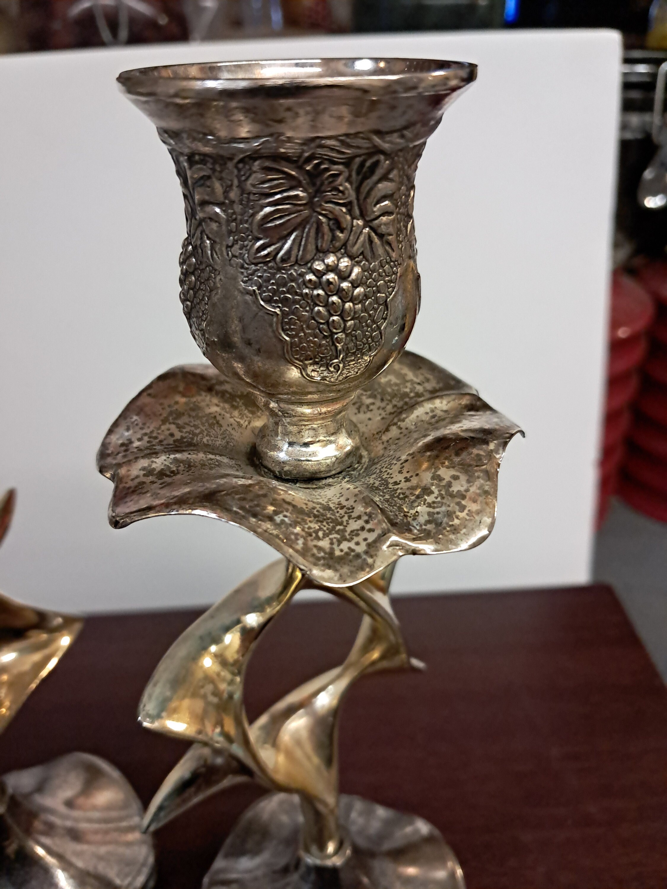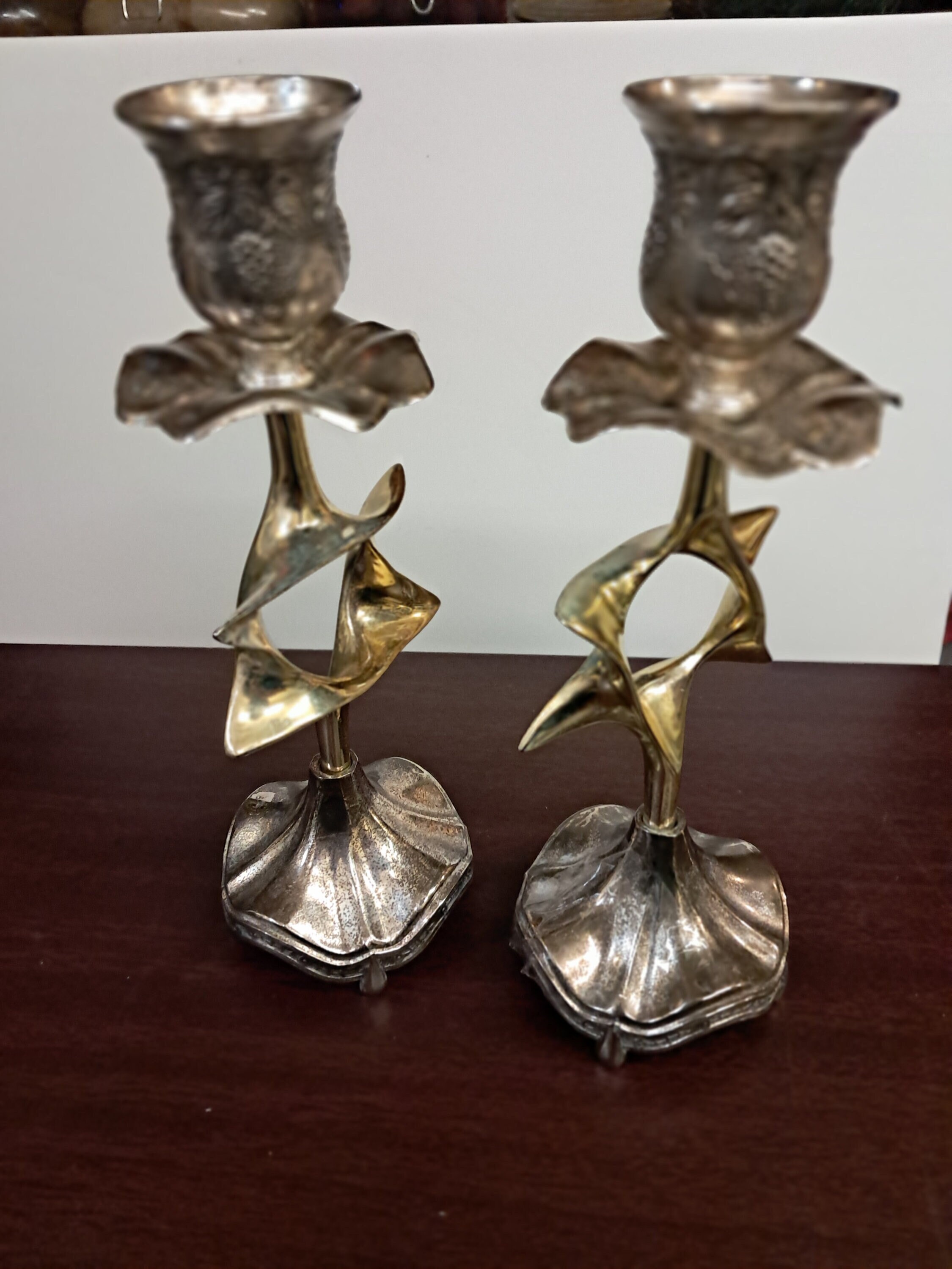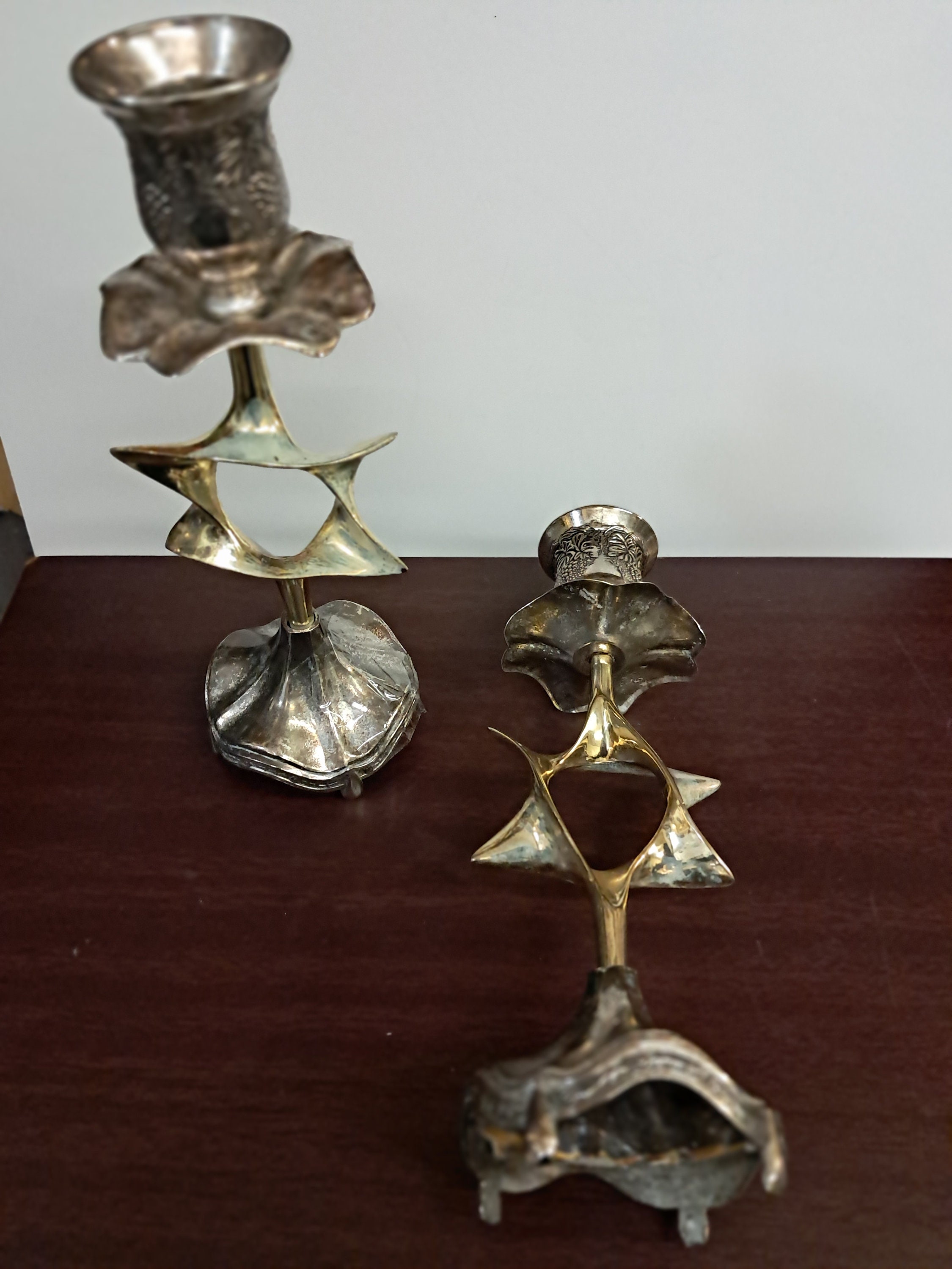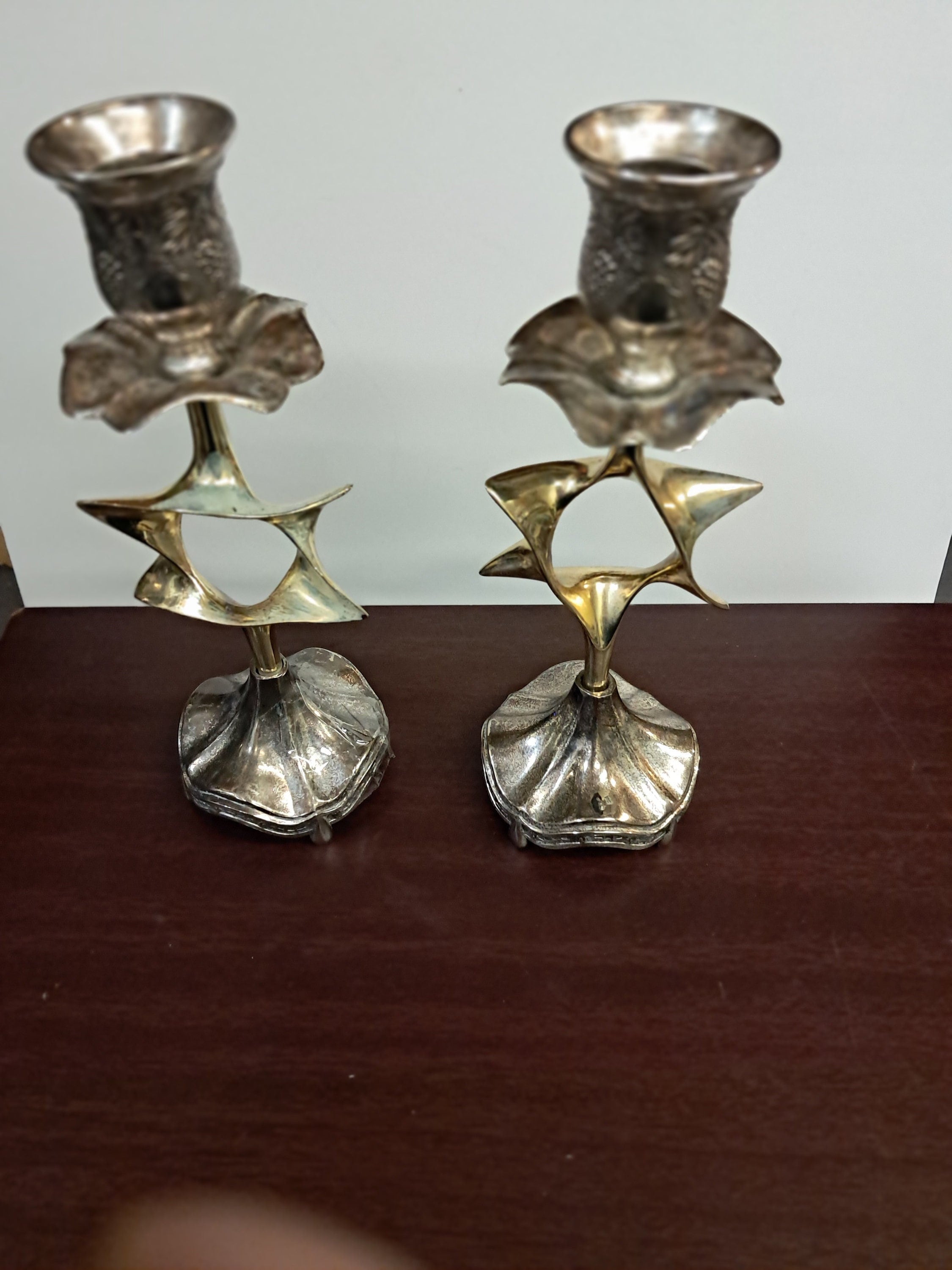 Pair Vintage Judaica Candlestick Candle Holders Silver Plated Magen David Star8.5" tall x 3 " wide x 2.75" deepIn a great Vintage ConditionNo damagesMade In Israel