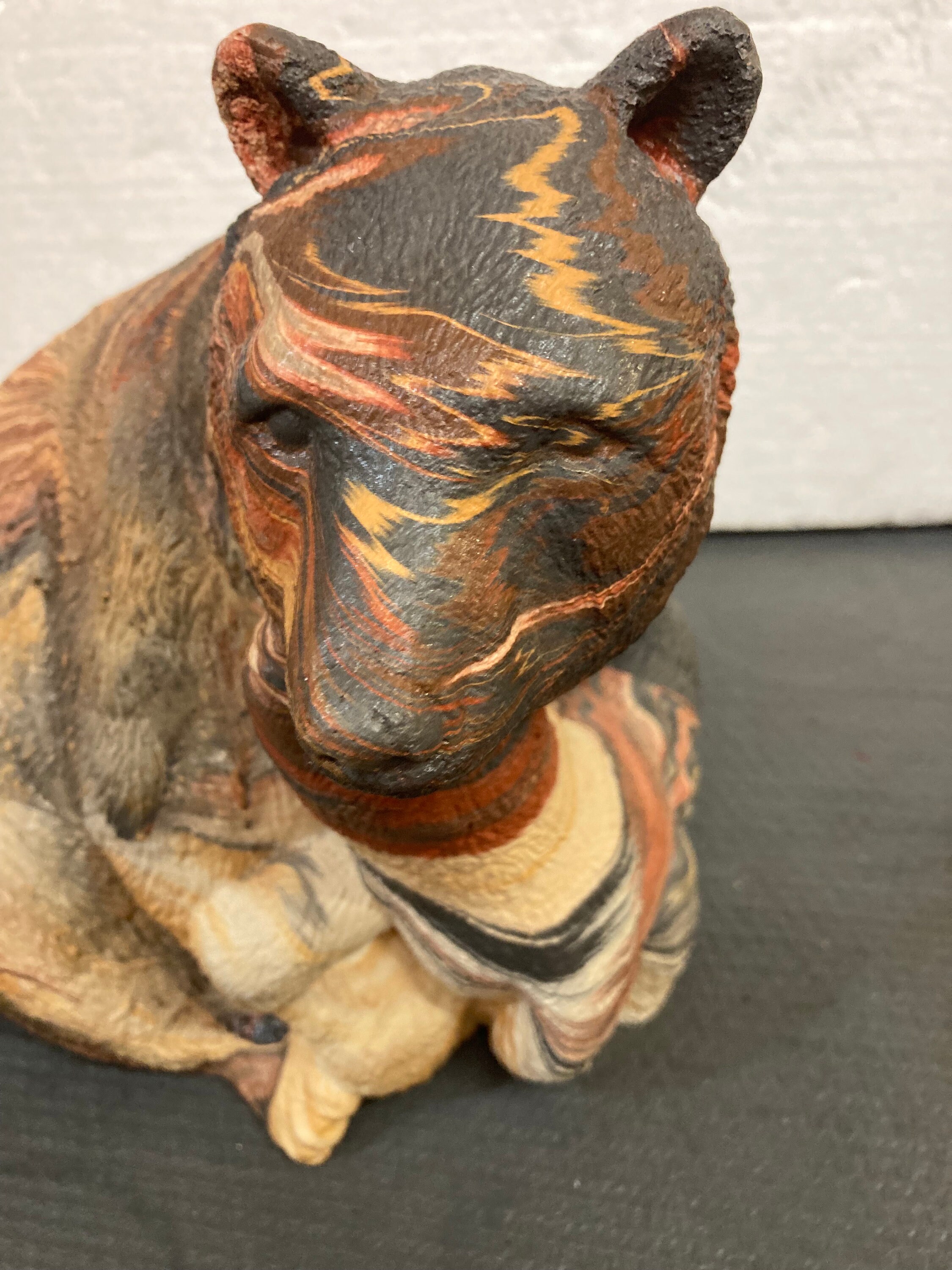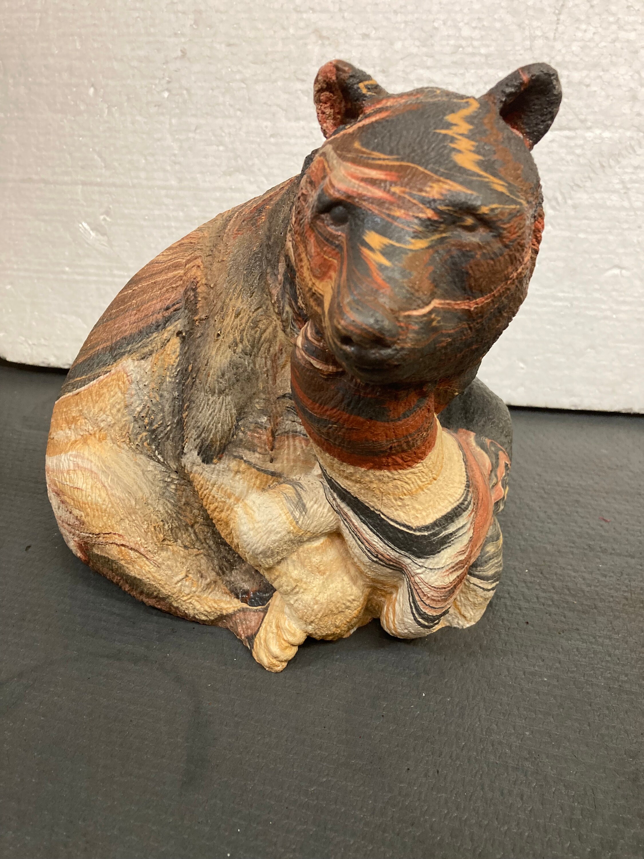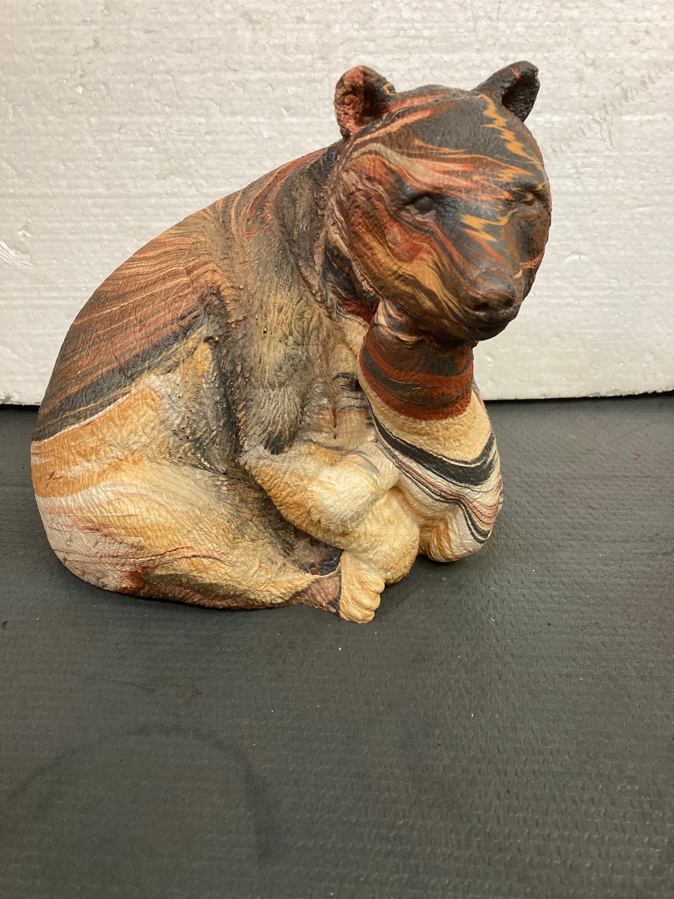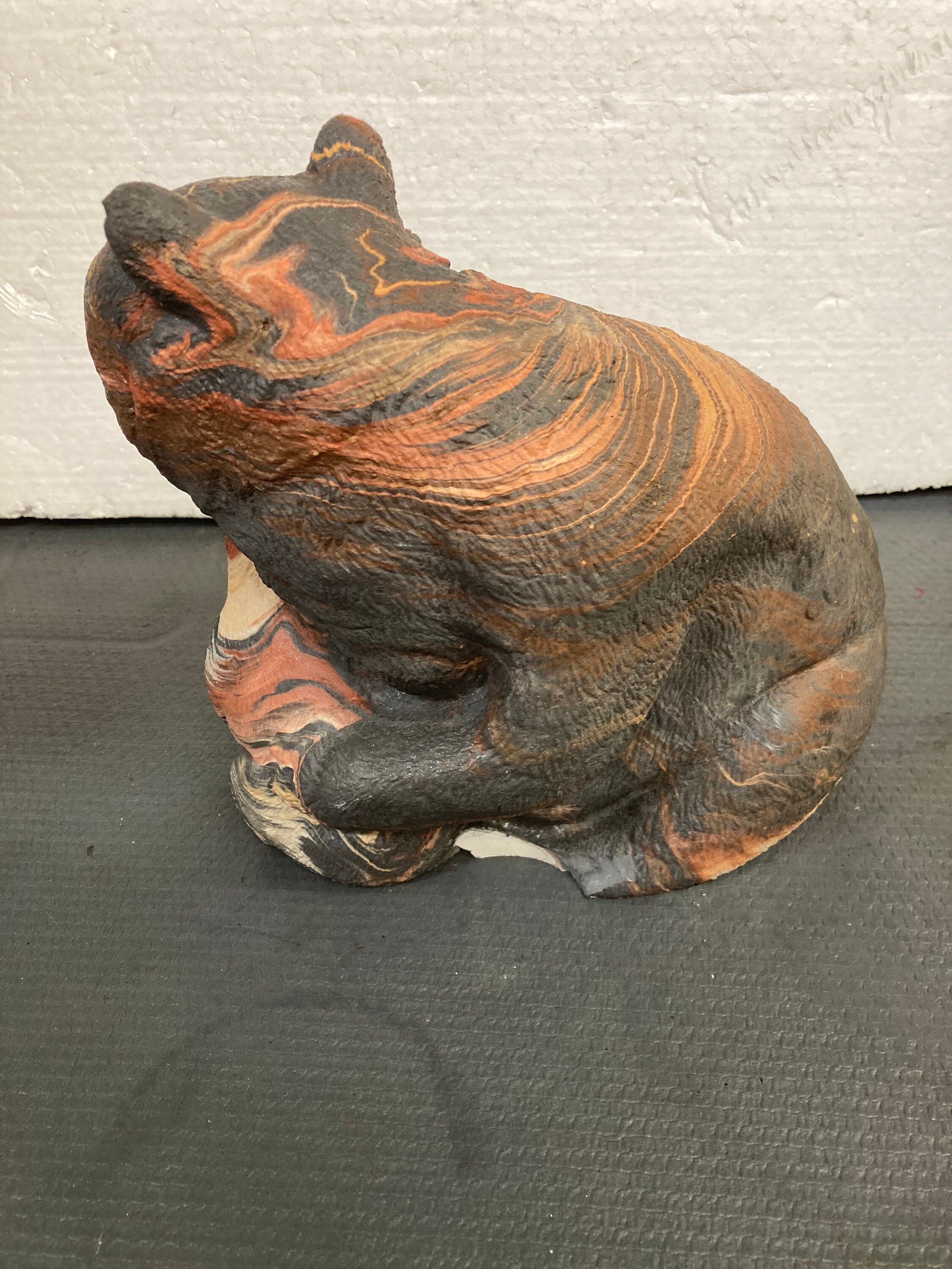 Heavy Colorful Stone Carved Bear With Cub Signed Art