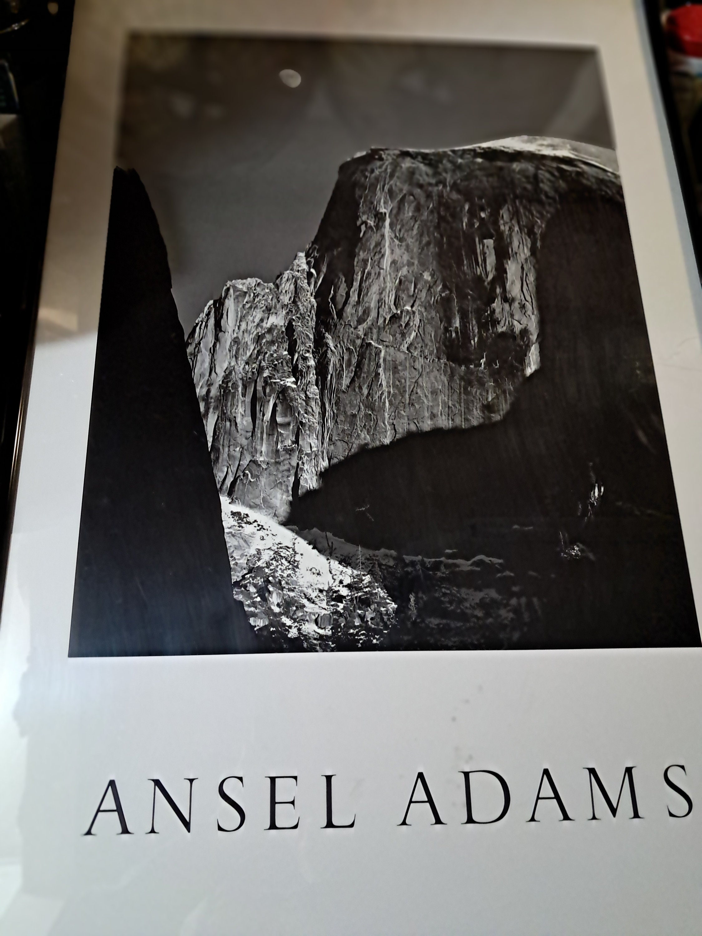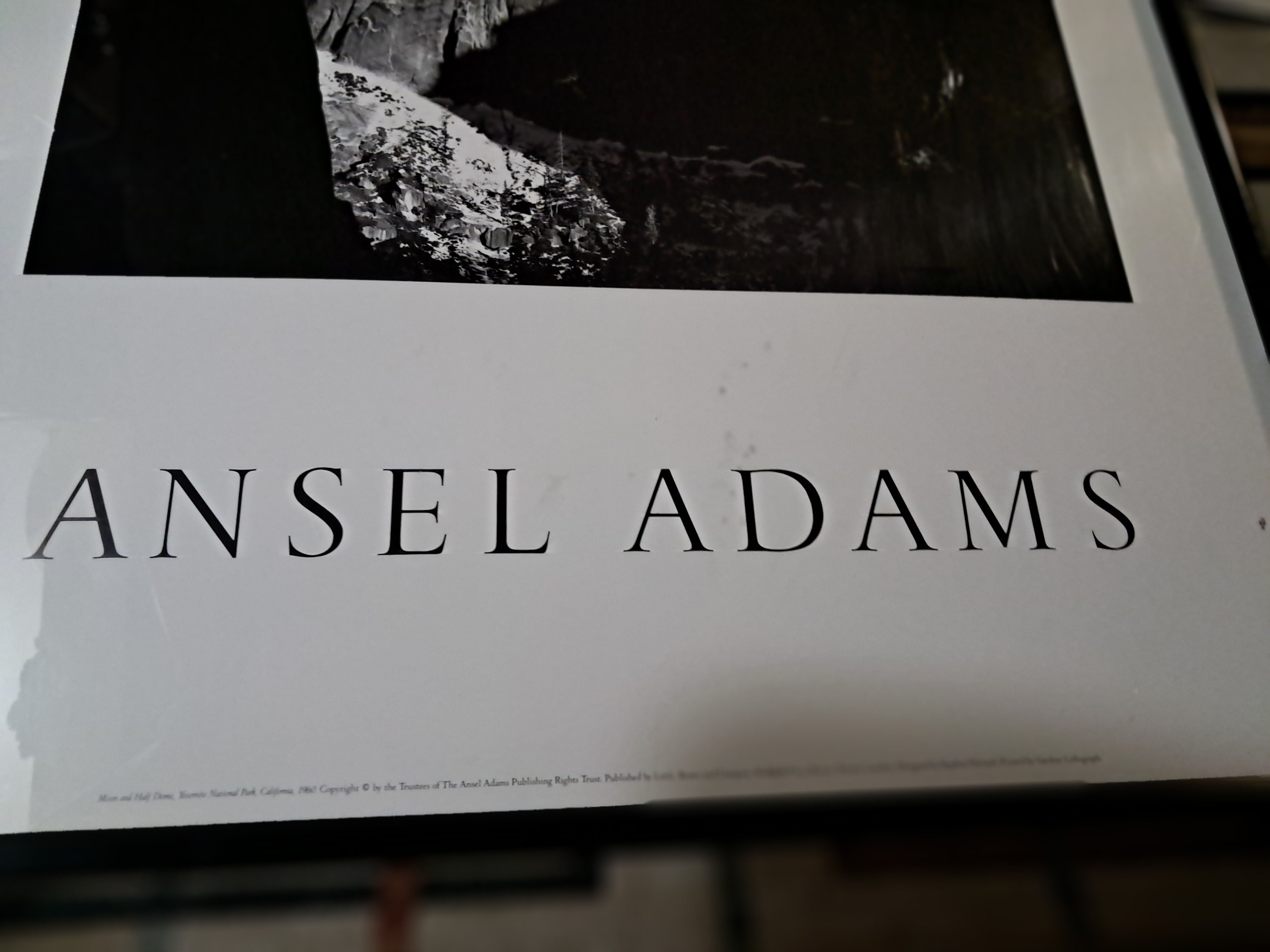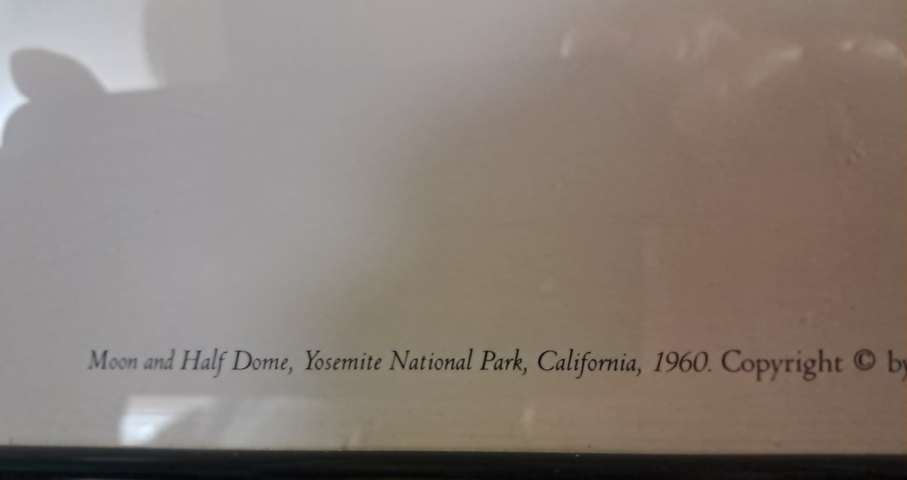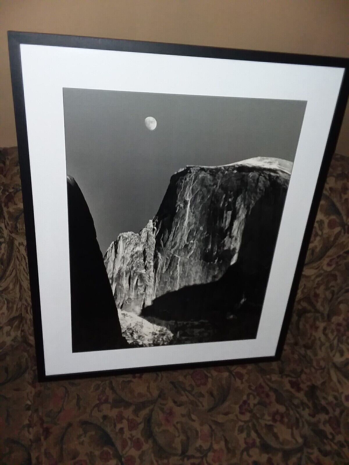 Ansel Adams Print, Framed, Half Dome, Yosemite, AA Authorized EditionMarkings: AA Authorized Edition (see pics)Dimensions: Approx.24x36Condition: Very Nice!A few scratches but overall in exceptional condition; gallery quality frame w/wire intact.About the Half Dome image:Ansel Adams made this image at 4:14 the afternoon of December 28, 1960 with a Hasselblad camera and 250mm Zeiss Sonnar lens, releasing the mirror before operating the shutter to minimize vibration. It was one of his last well known photographs. Arguably, this is the definitive photograph of Half Dome and among the most famous images of Yosemite National Park. “At one with the power of the American landscape, and renowned for the patient skill and timeless beauty of his work, photographer Ansel Adams has been a visionary in his efforts to preserve this country’s wild and scenic areas, both on film and on Earth. Drawn to the beauty of nature’s monuments, he is regarded by environmentalists as a monument himself, and by photographers as a national institution. It is through his foresight and fortitude that so much of America has beensaved for future