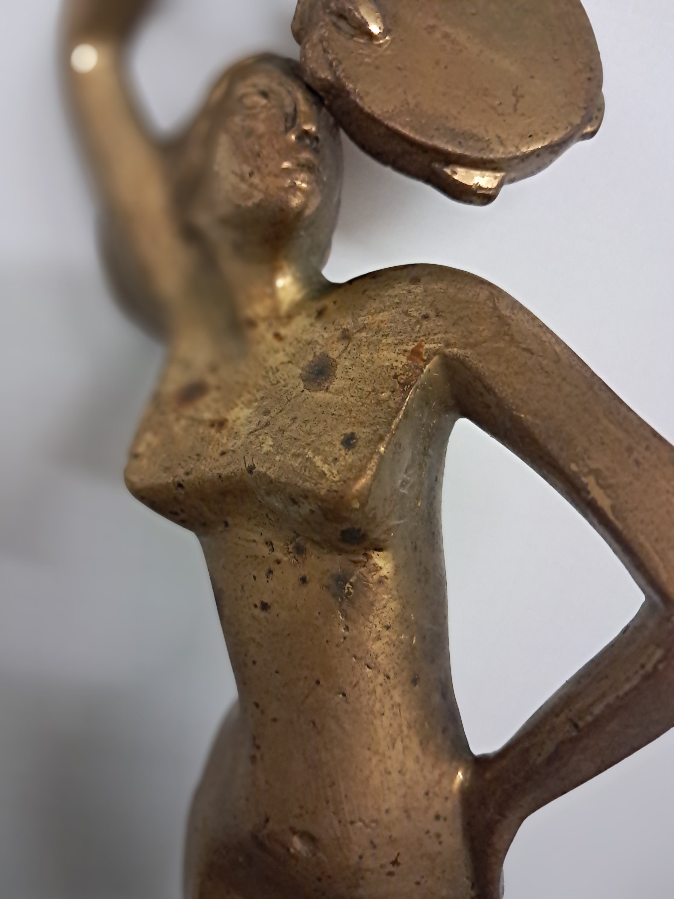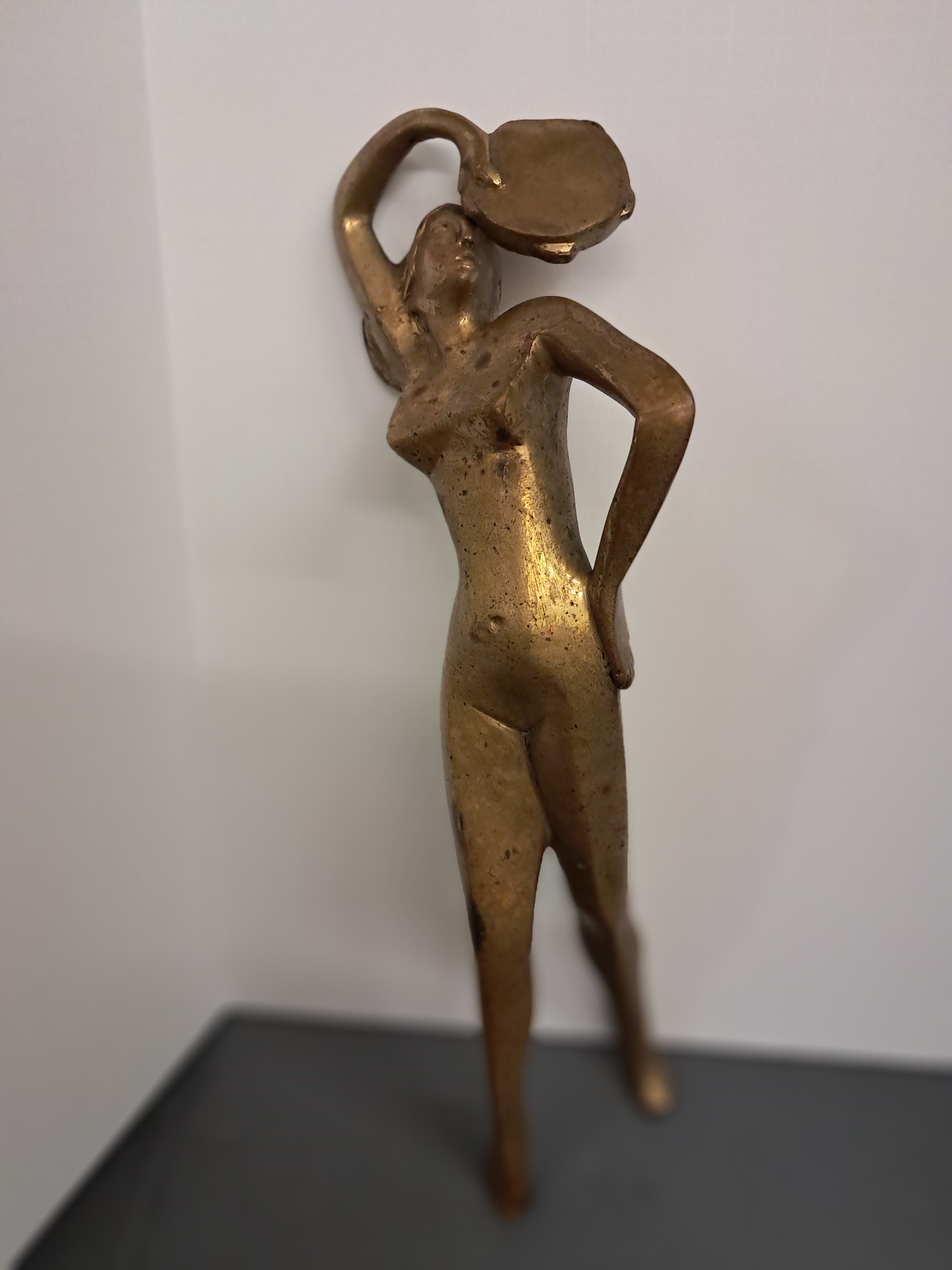 Vintage Bronze Nude Tambourine Dancer Sculpture ,Bronze Nude Tambourine Dancer