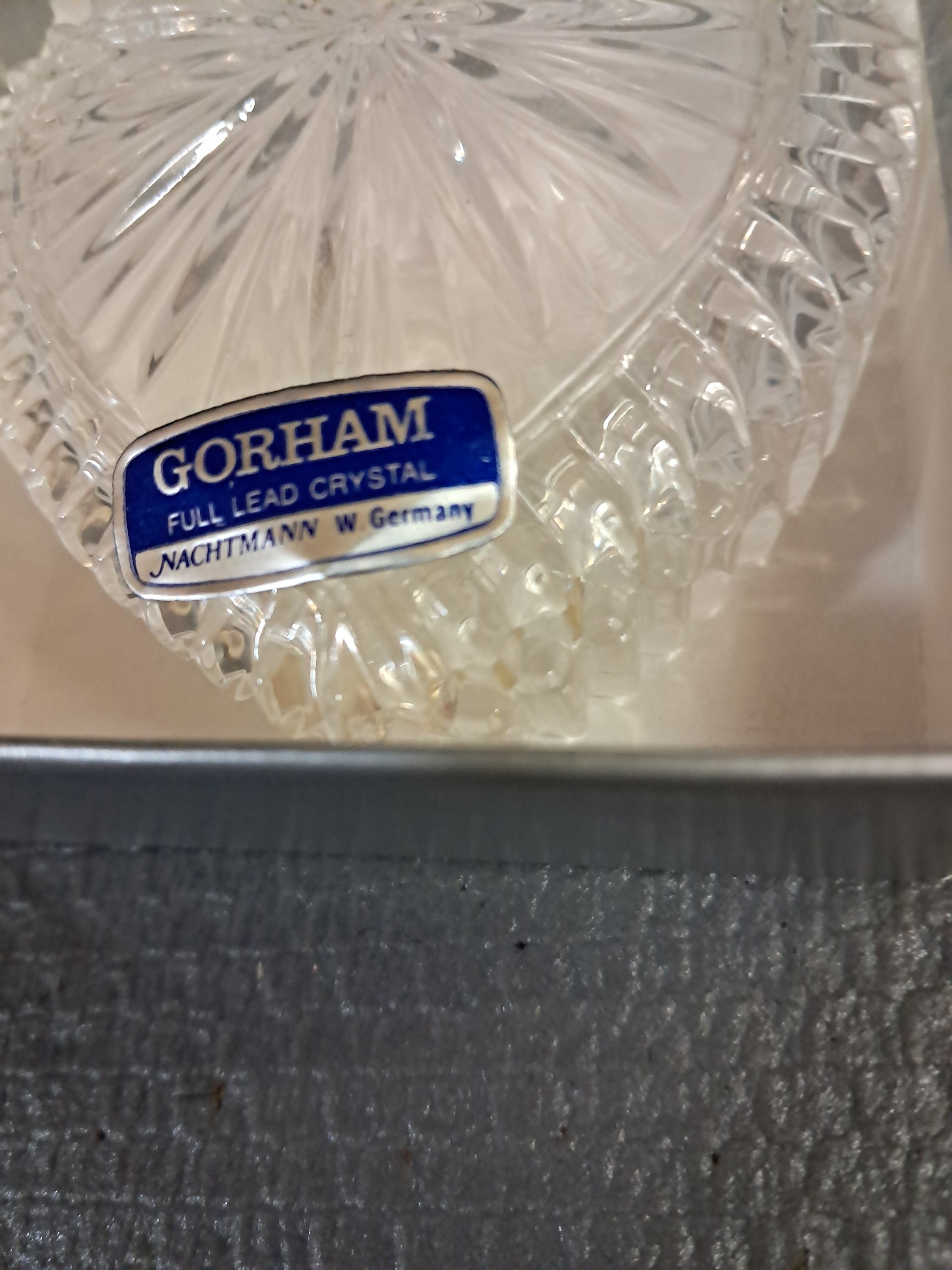 This heart shaped covered crystal trinket dish was made in West Germany as noted on the sticker.
