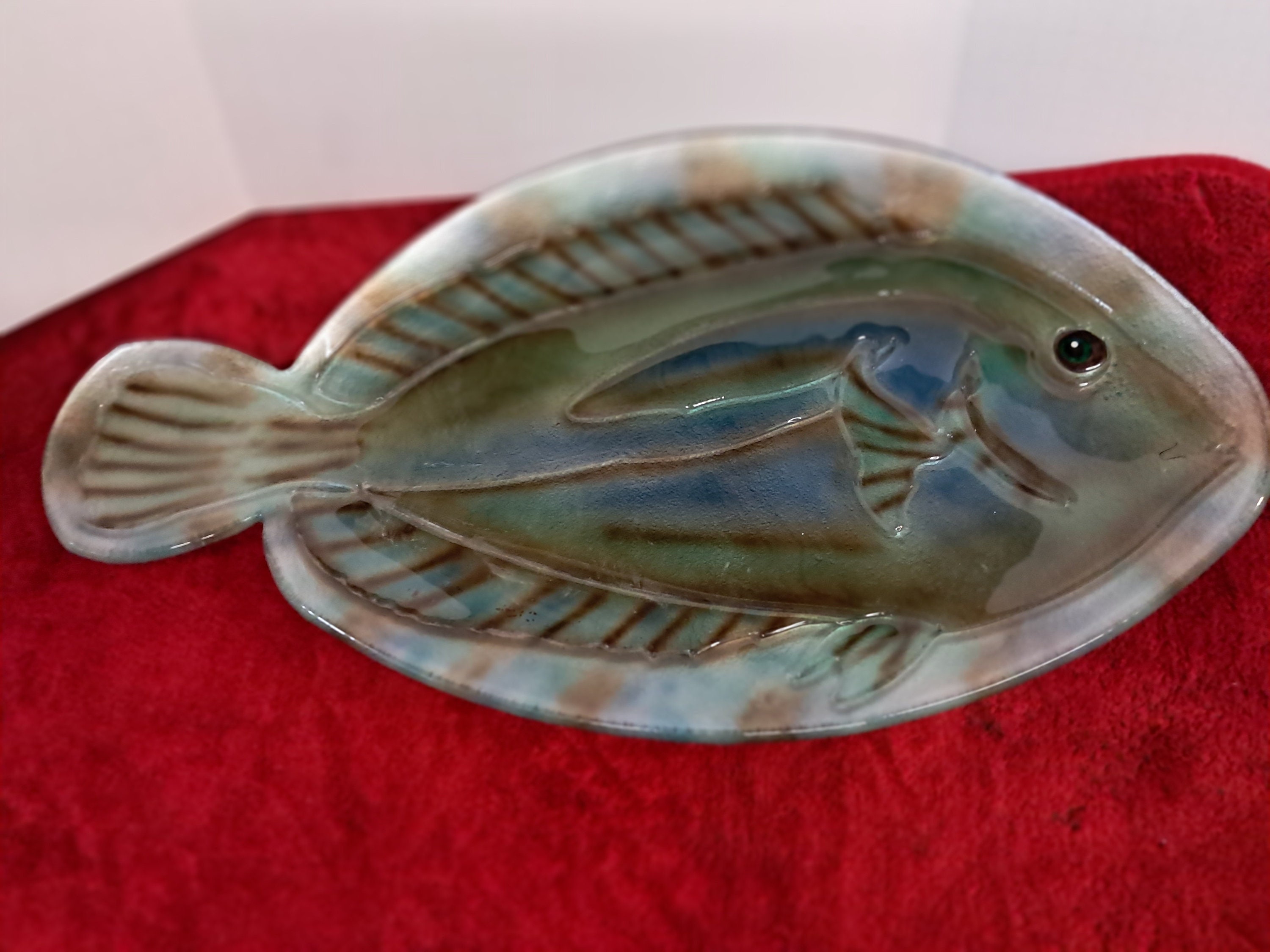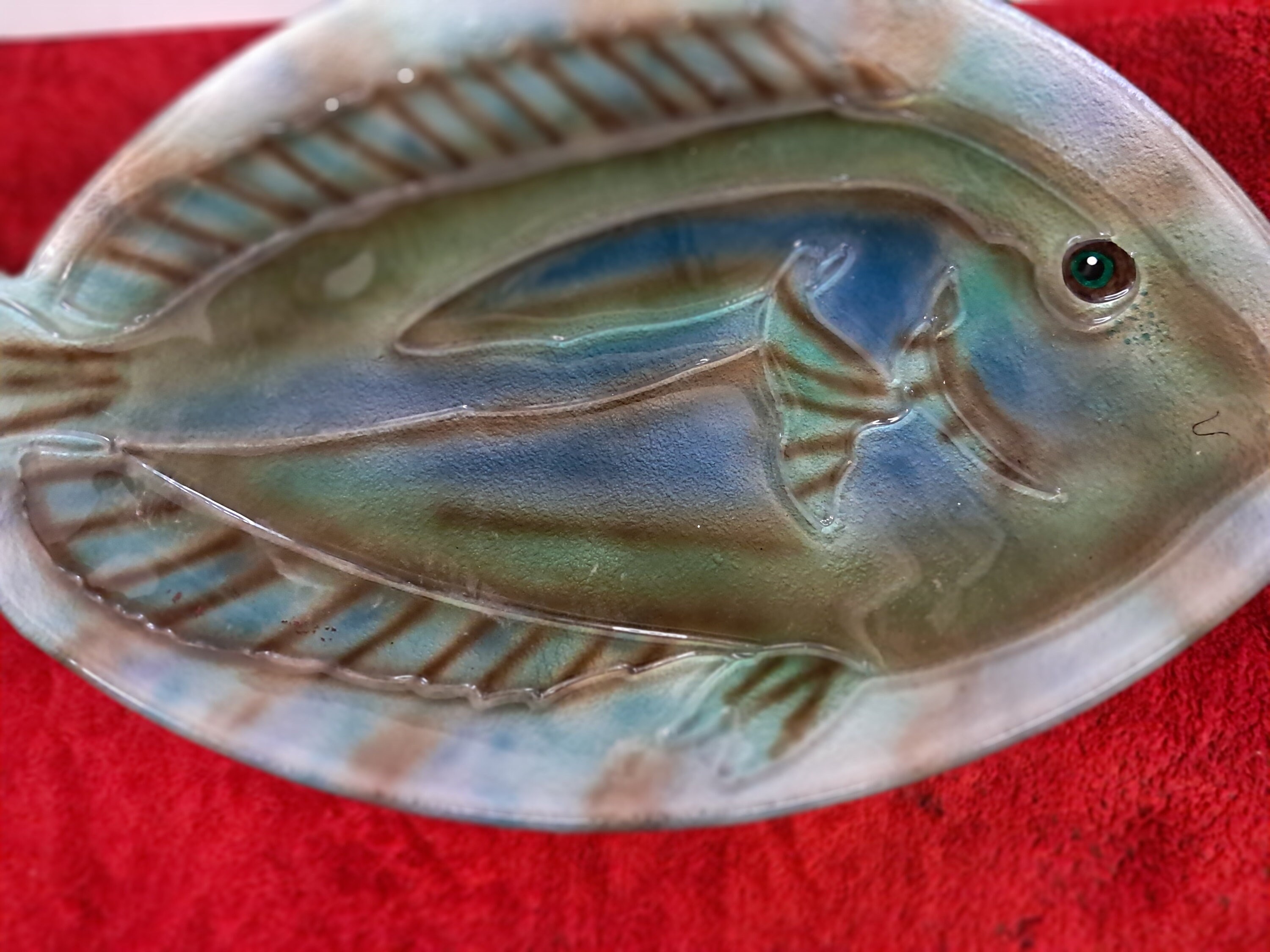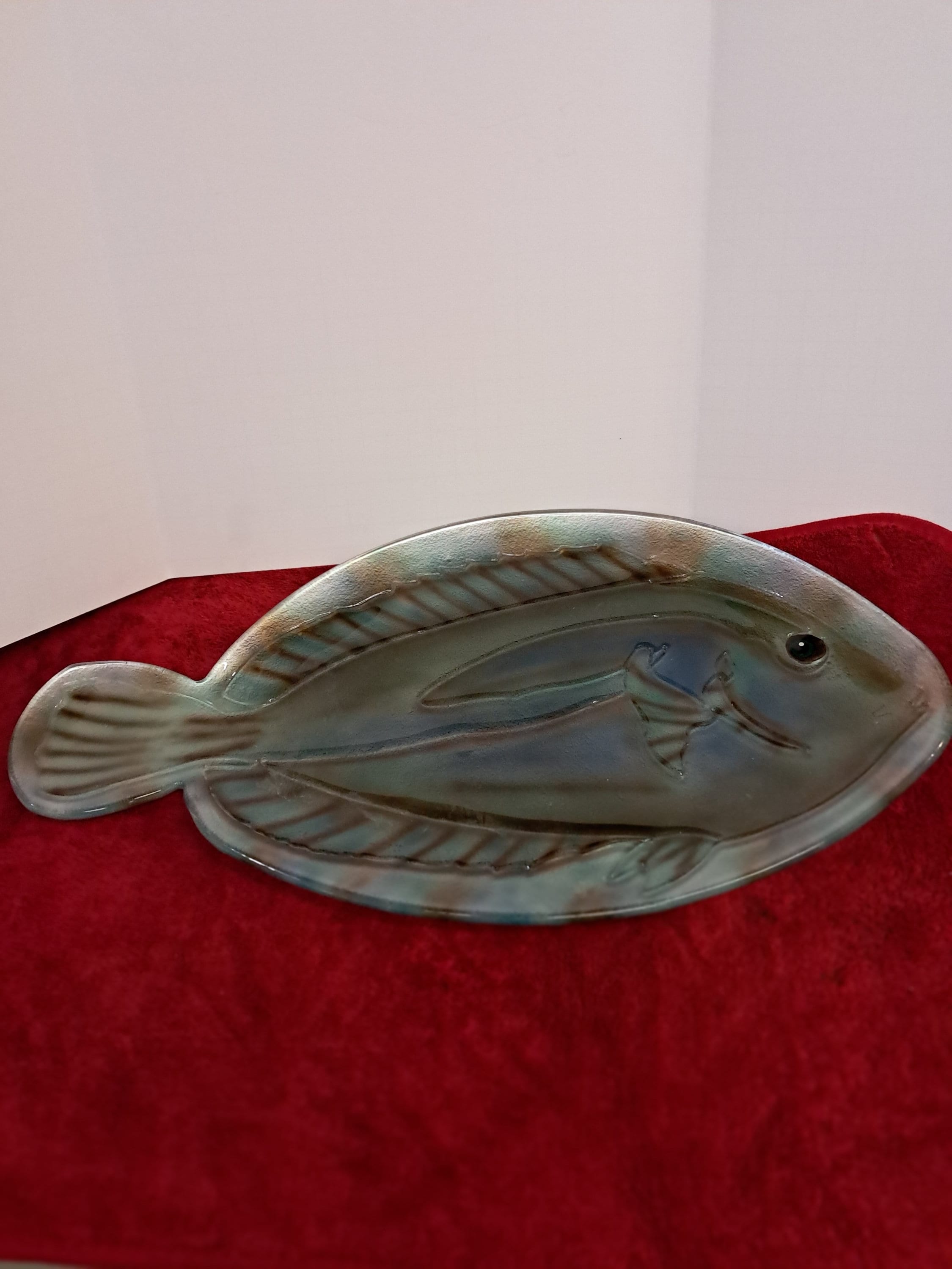 Vintage Handmade Green/Brown Glass Fish Serving Platter