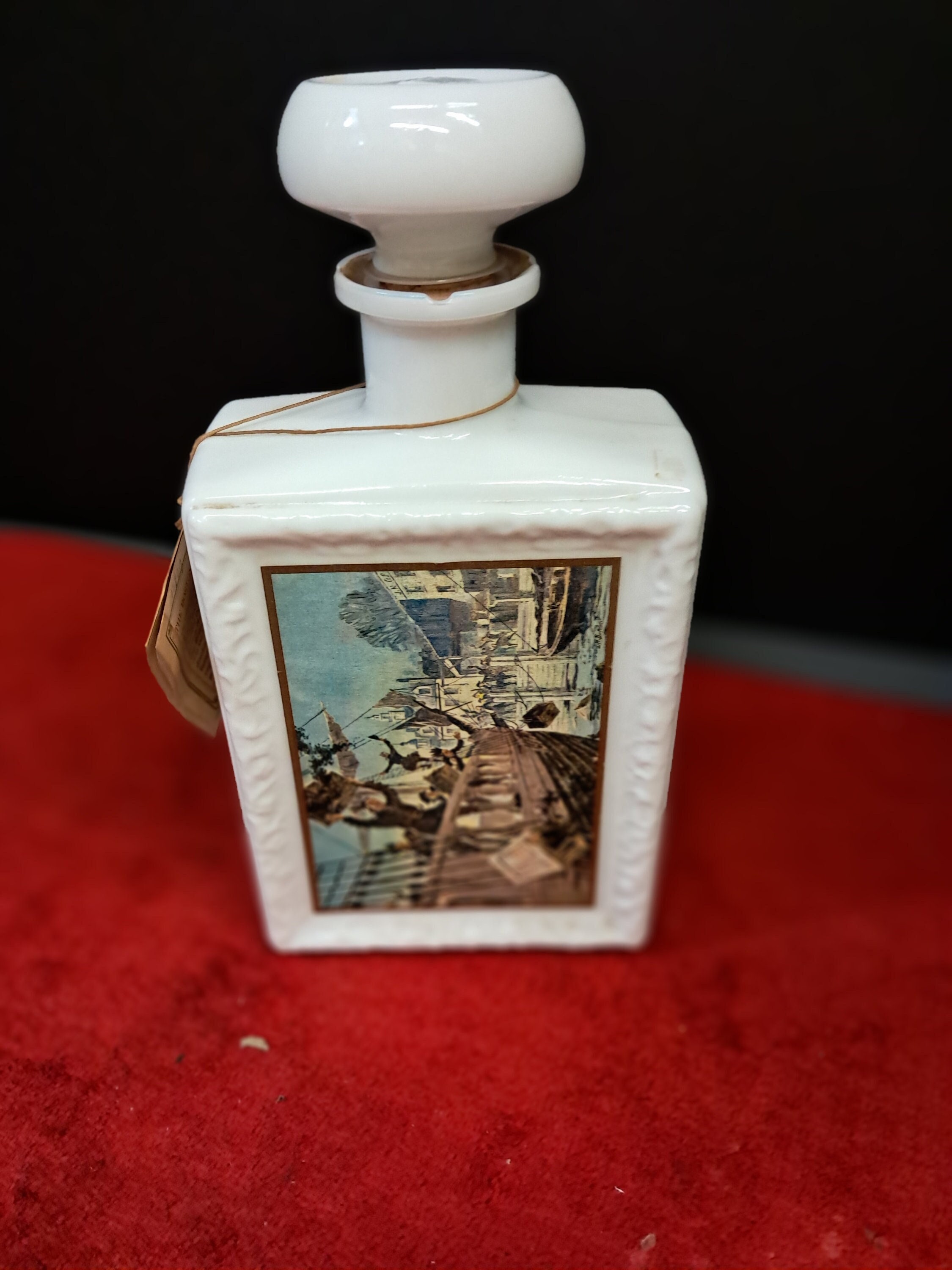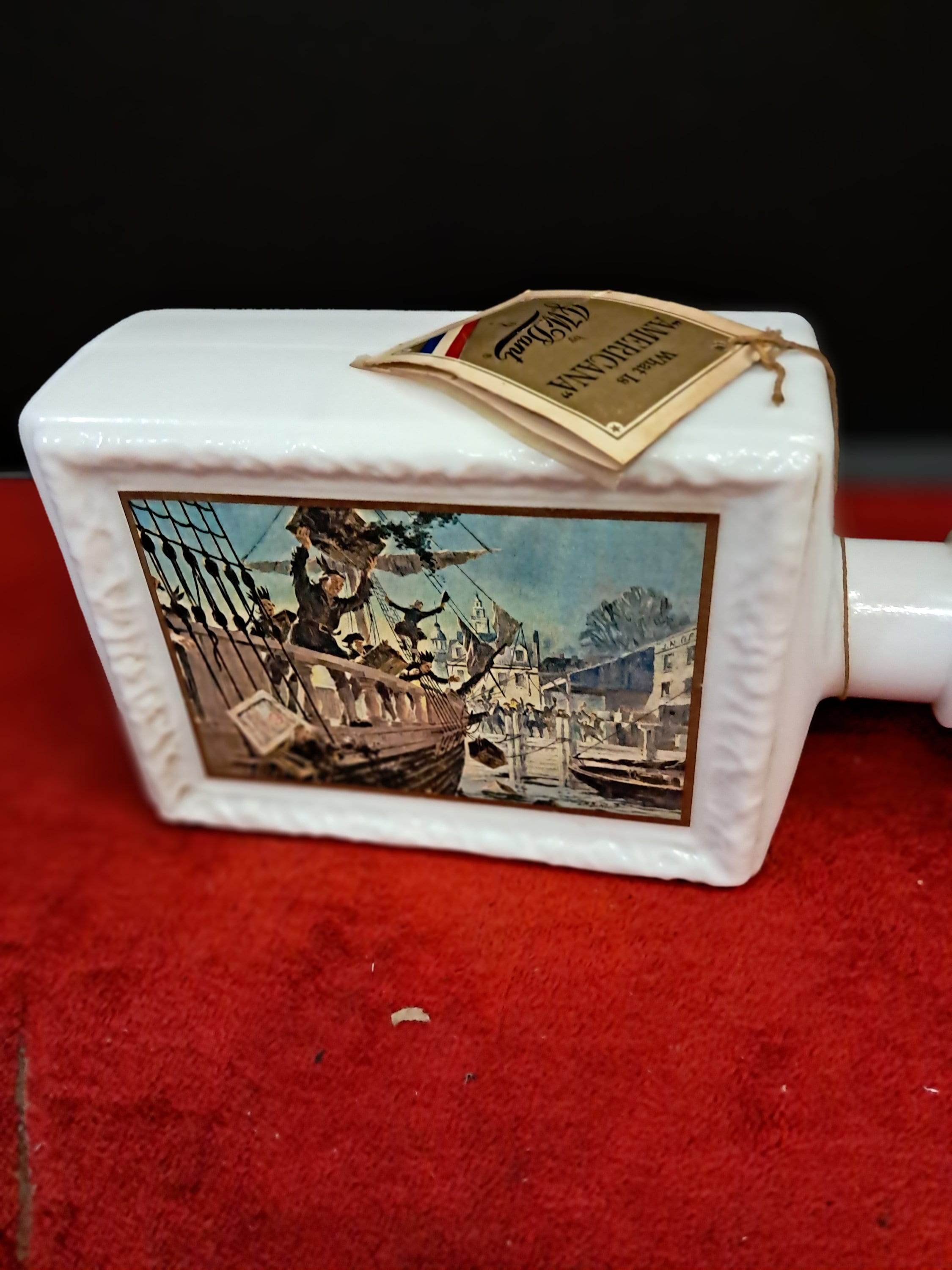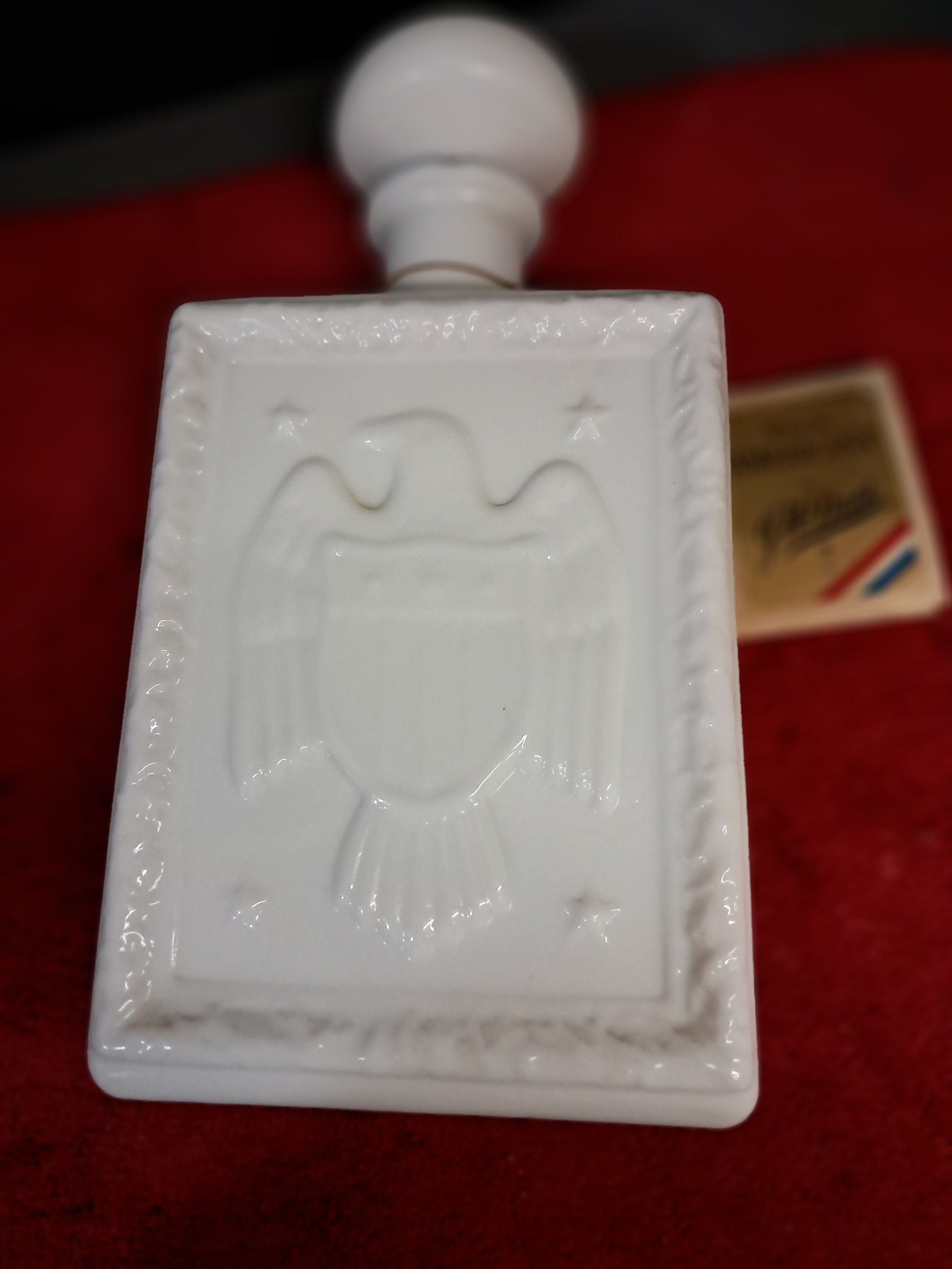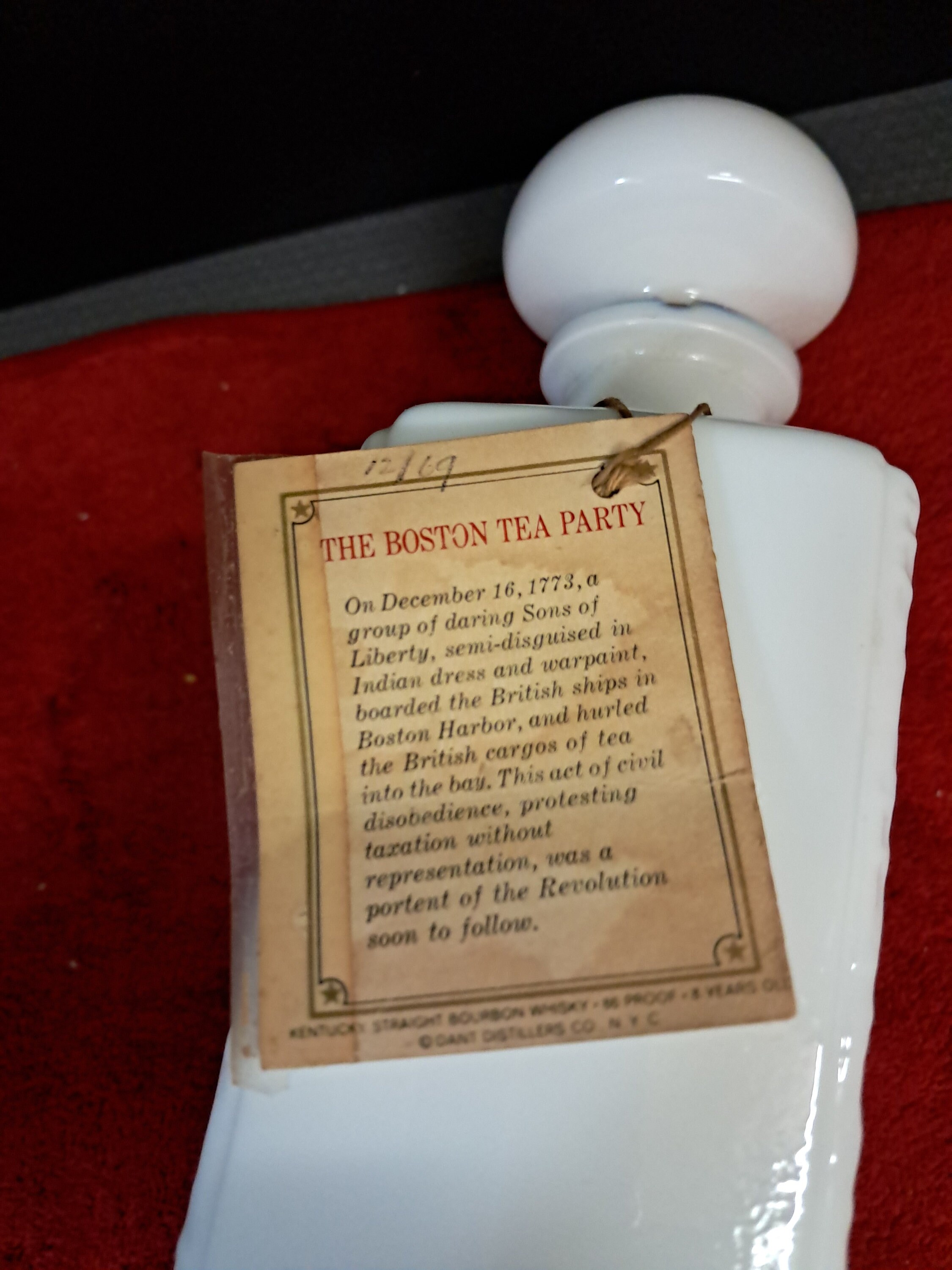 Vintage JW Dants 1969 Milk Glass Boston Tea Party Whiskey Bottle Decanter