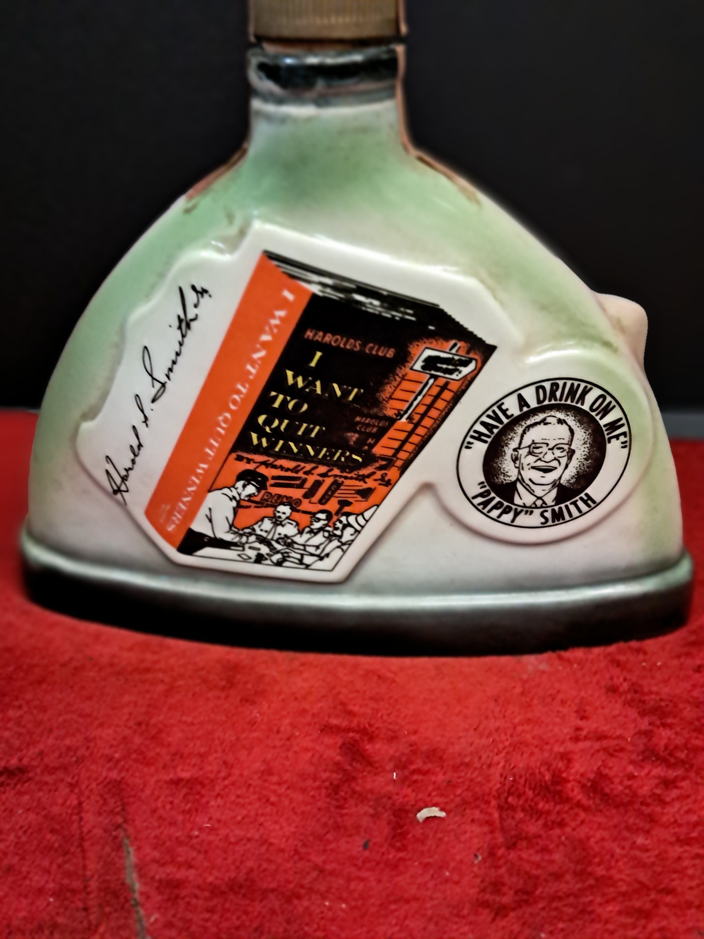 VINTAGE JIM BEAM 1969 DECANTER BOTTLE "HAROLD'S CLUB OR BUST" PAPPY SMITH.