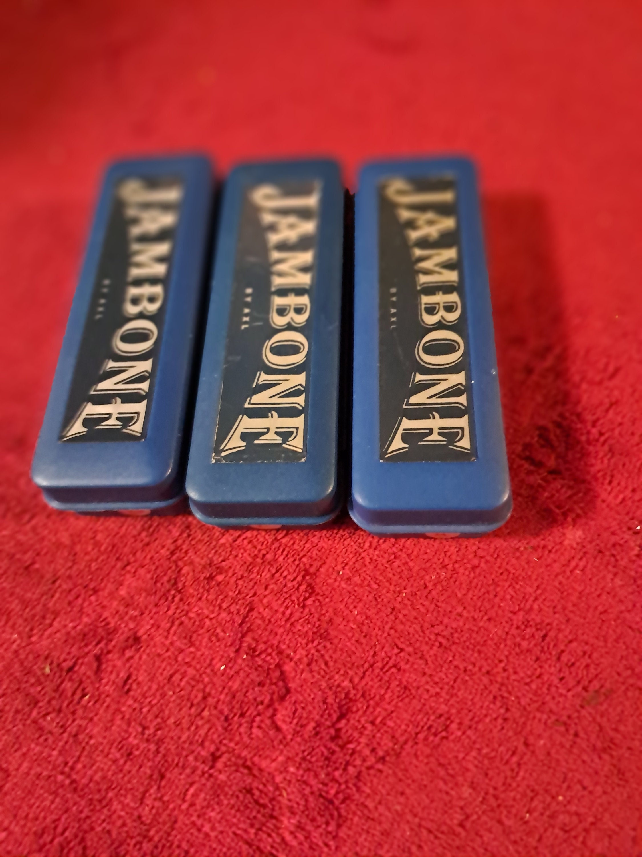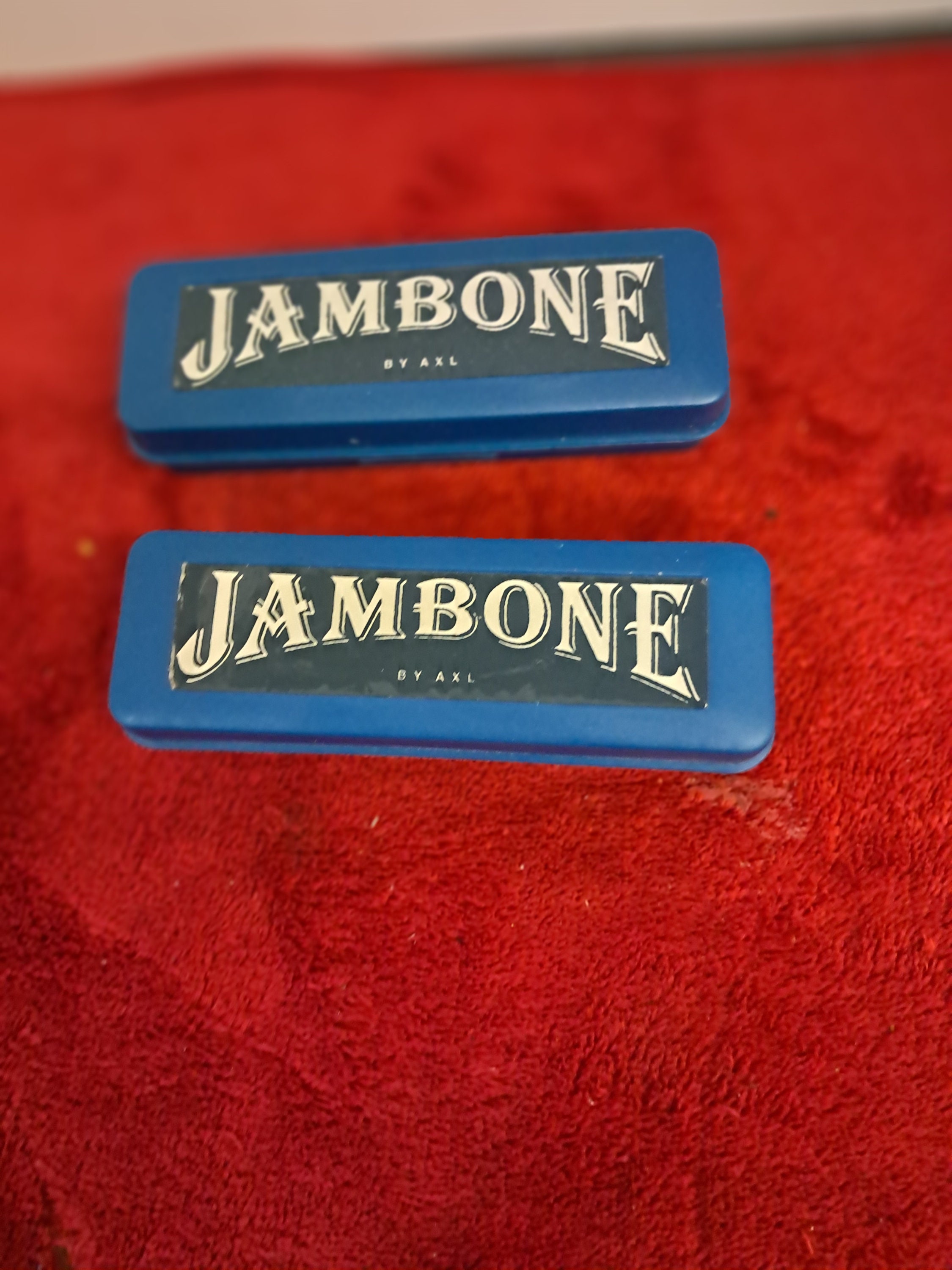 The Jambone is a diatonic harmonica that delivers good performance at a modest price. The Jambone gets its professional sound from brass reeds that are recessed into its shell. This prevents air leaks and allows for generous note bending. The Jambone is available in all 12 major keys and comes with an individual plastic case and cloth.