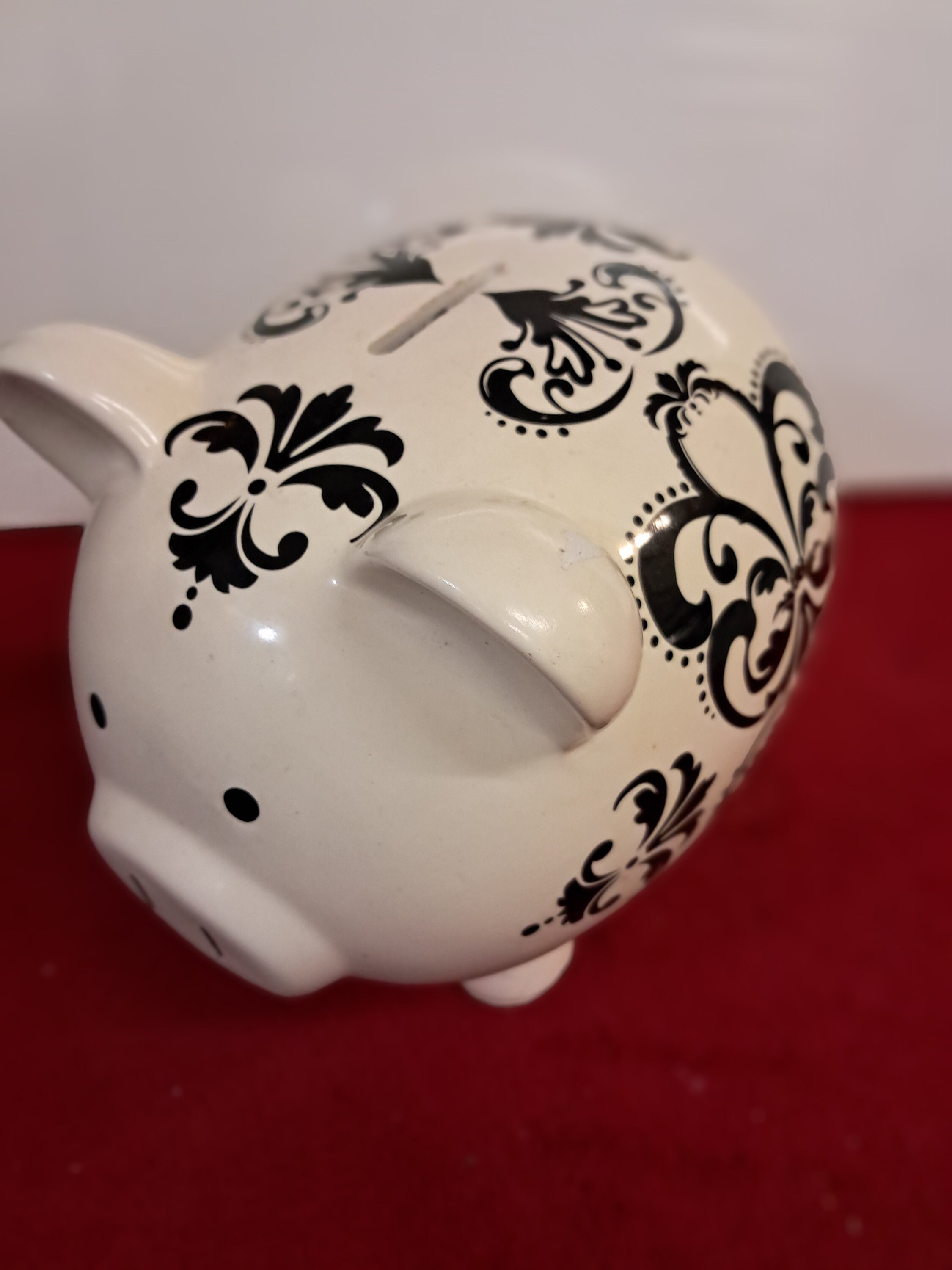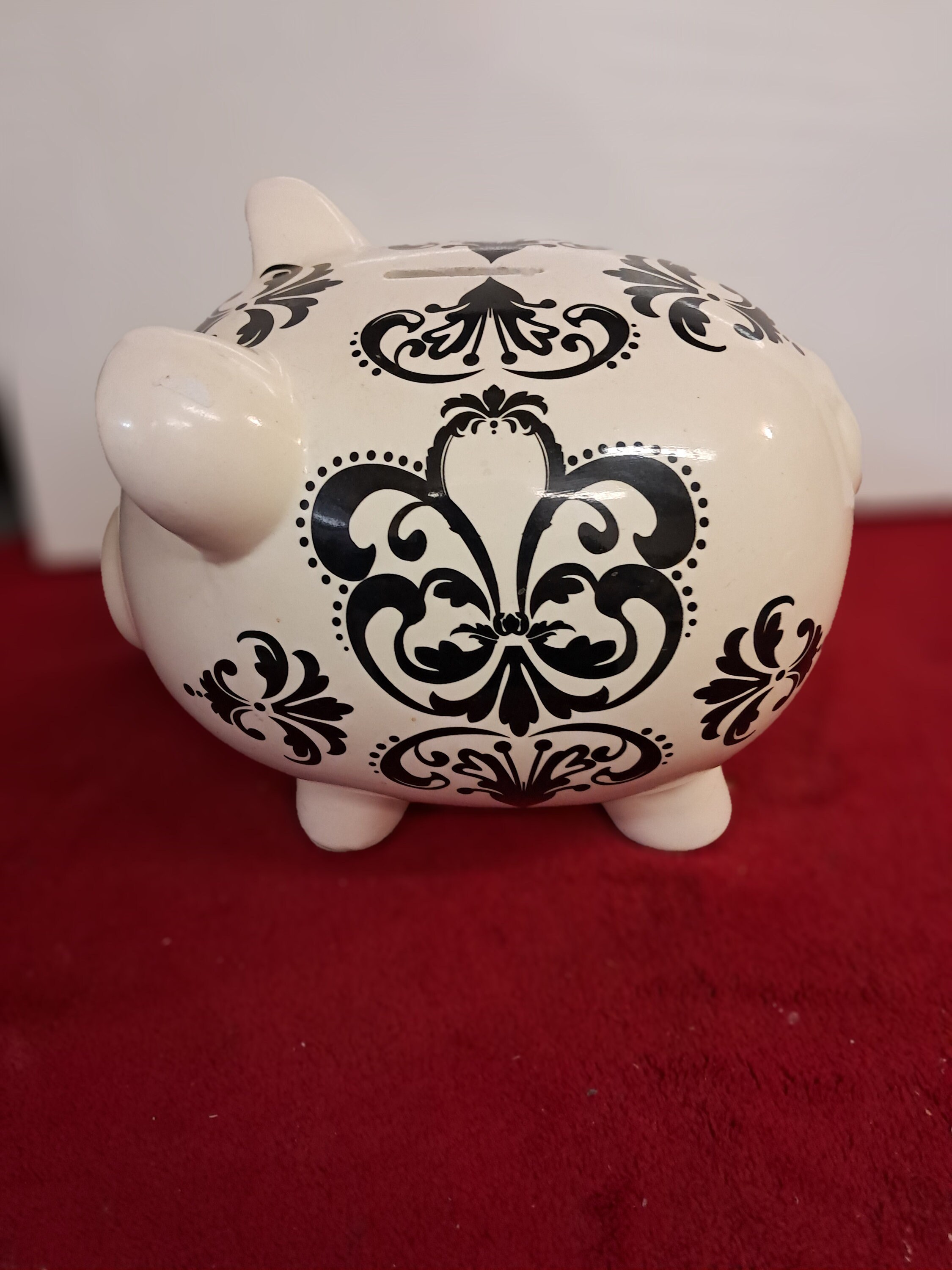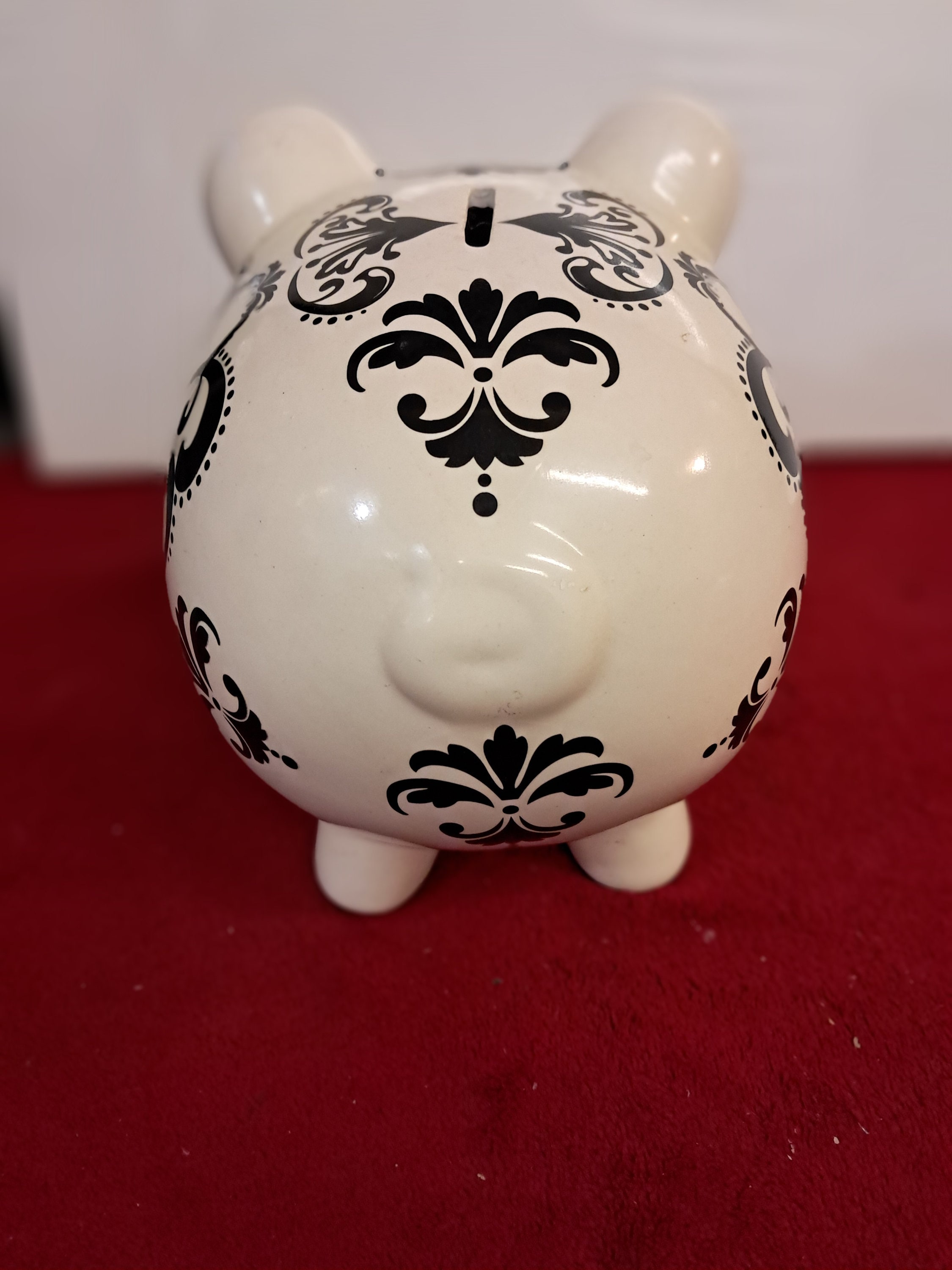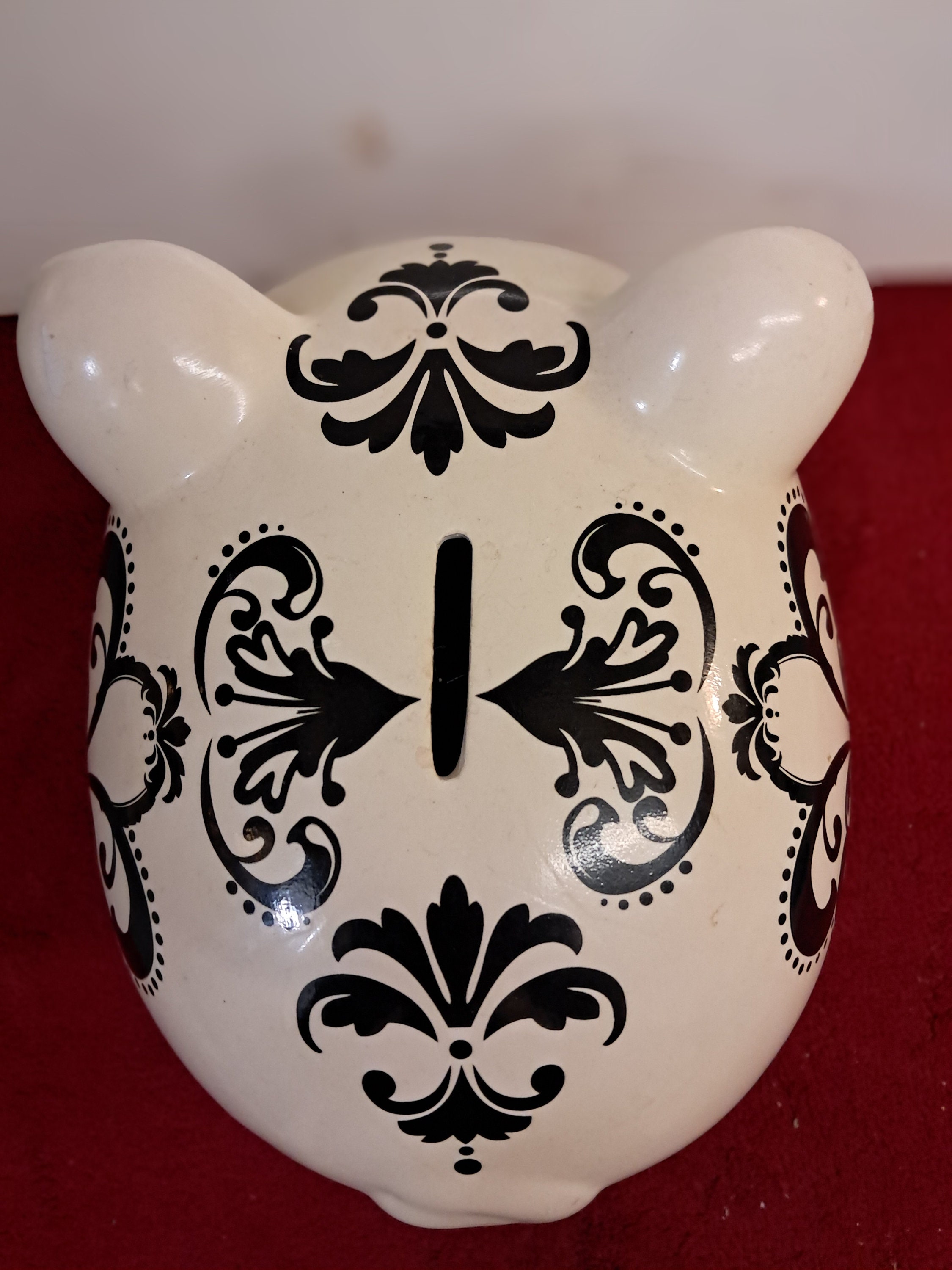 WHITE w/ BLACK DESIGN PIGGY BANK