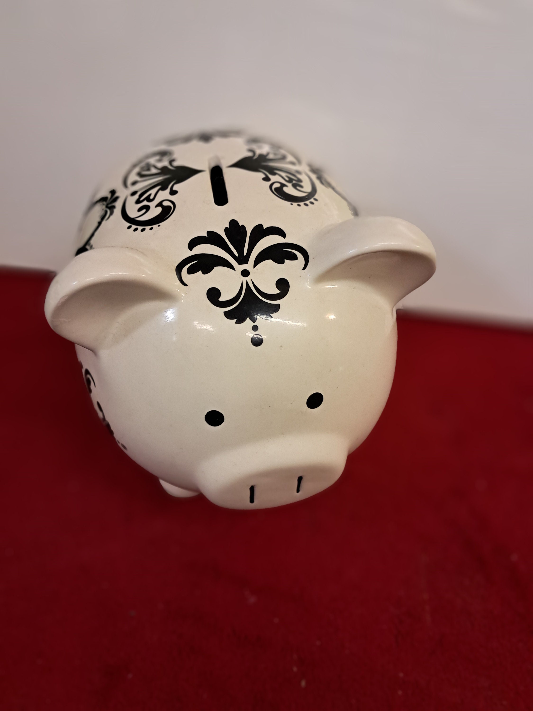 This hollow decorative ceramic piggy bank is a beautiful piece.