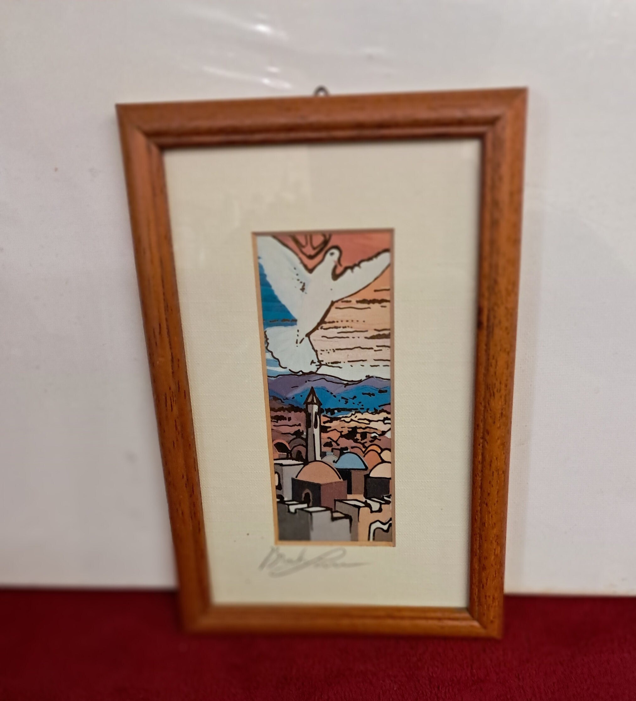 Bracha Lavee Signed Art Workhttps://bracha-lavee.com/about/A view of Jerusalem with a Peace Dove flyingOriginal Art workFramed: 7.75" x 5"Art Work: 4.5" x 2"Signed : Bracha LaveeMade In Israel