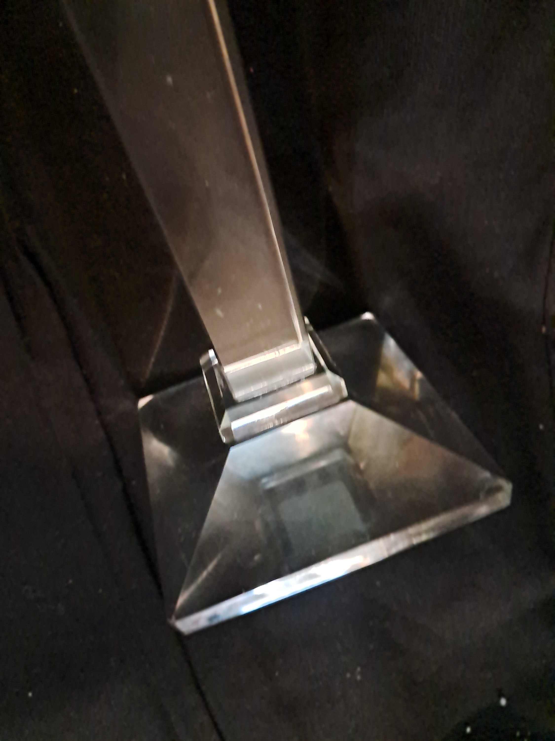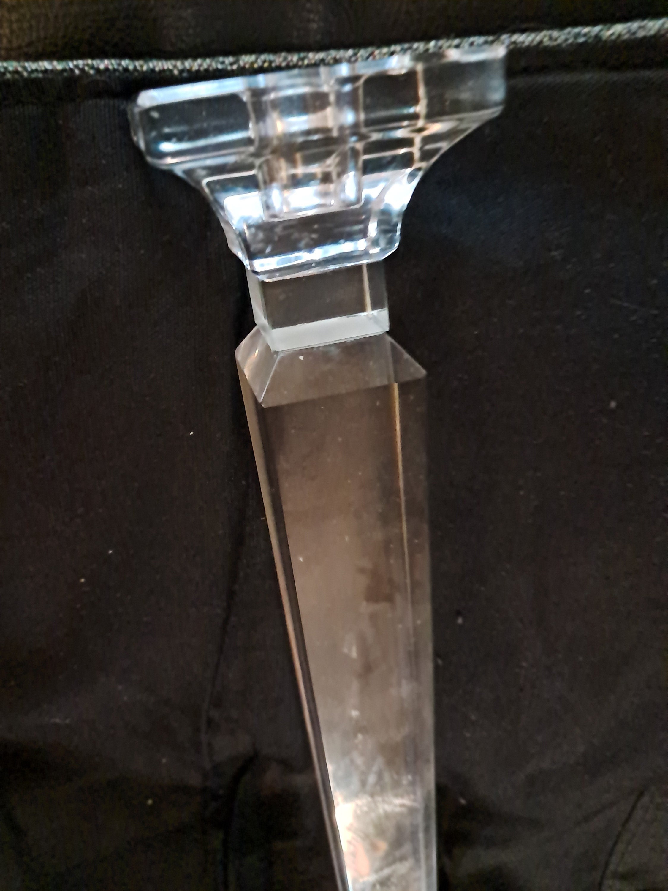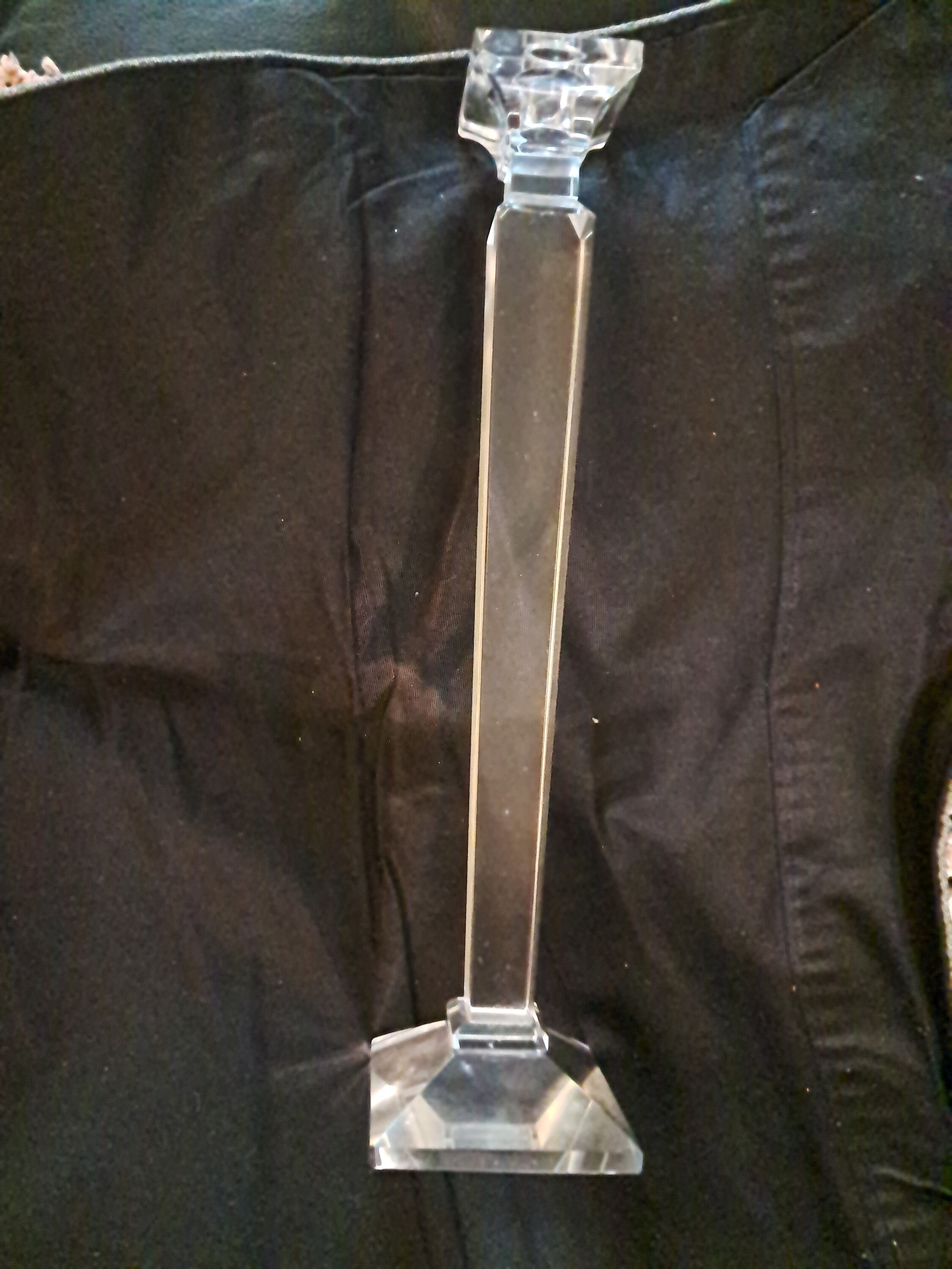 Condition :Used , NO damages. Looks like NewMaterial :CrystalMounting Type:TabletopColor:ClearItem Diameter: 3.5 x 3.5 Inches. BaseItem Weight:2.5 poundsTheme:GeometricProduct Dimensions3.5"L x 3.5"W x 15.25"H