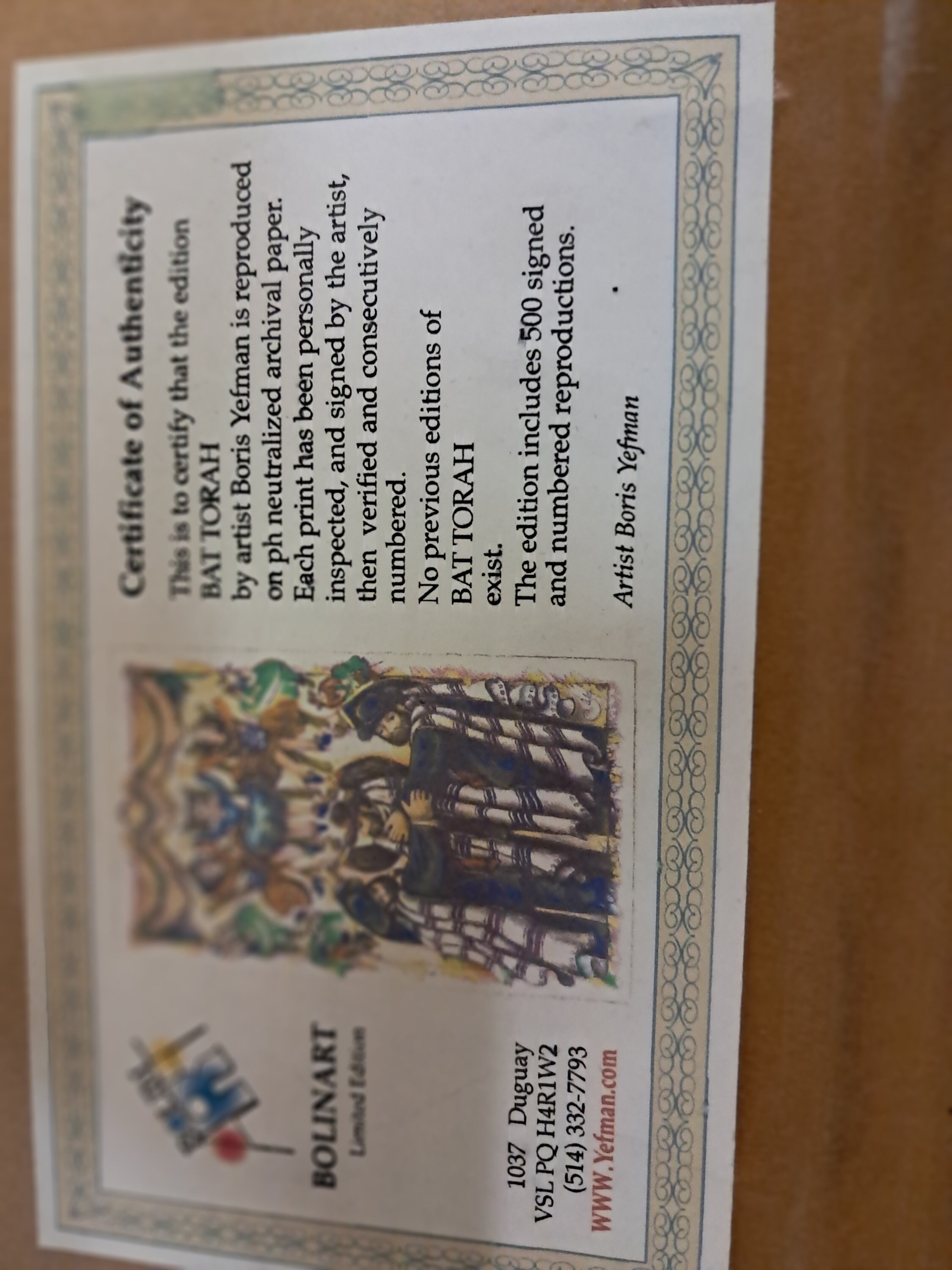 Boris Yefman Painting.Bat Torah,Bolin Art Limited Edition