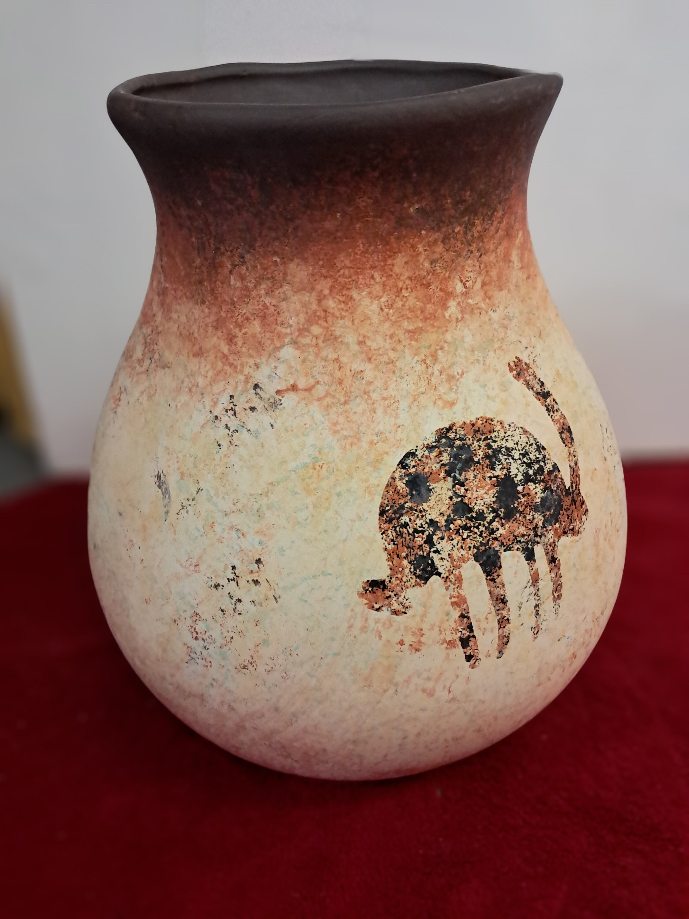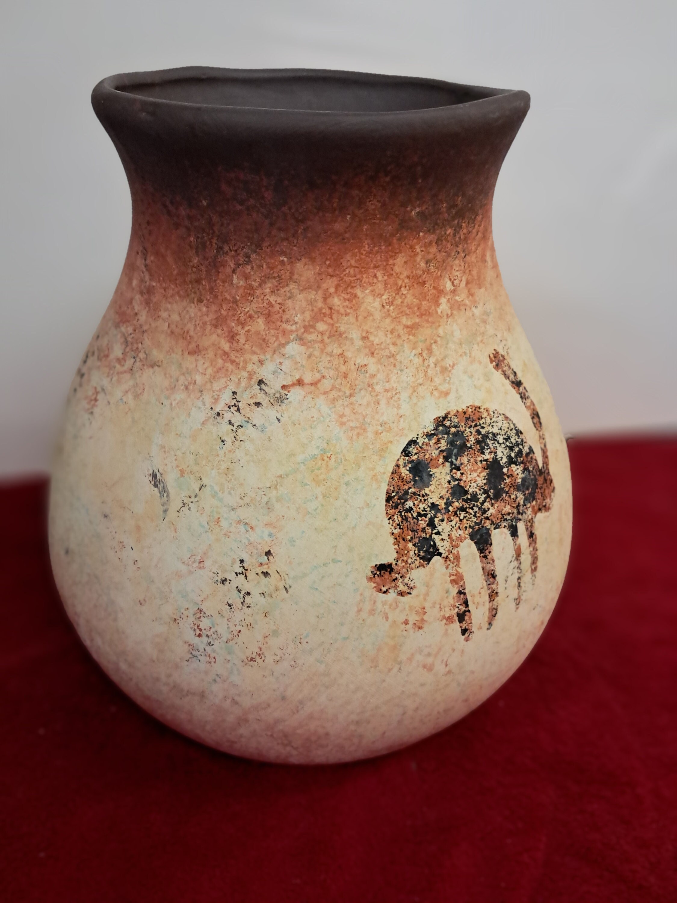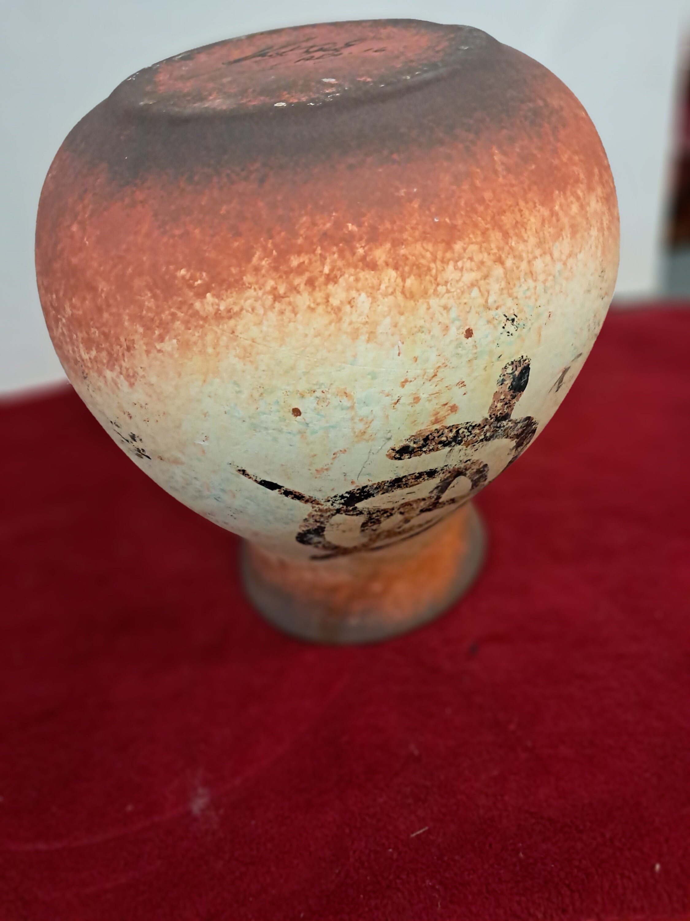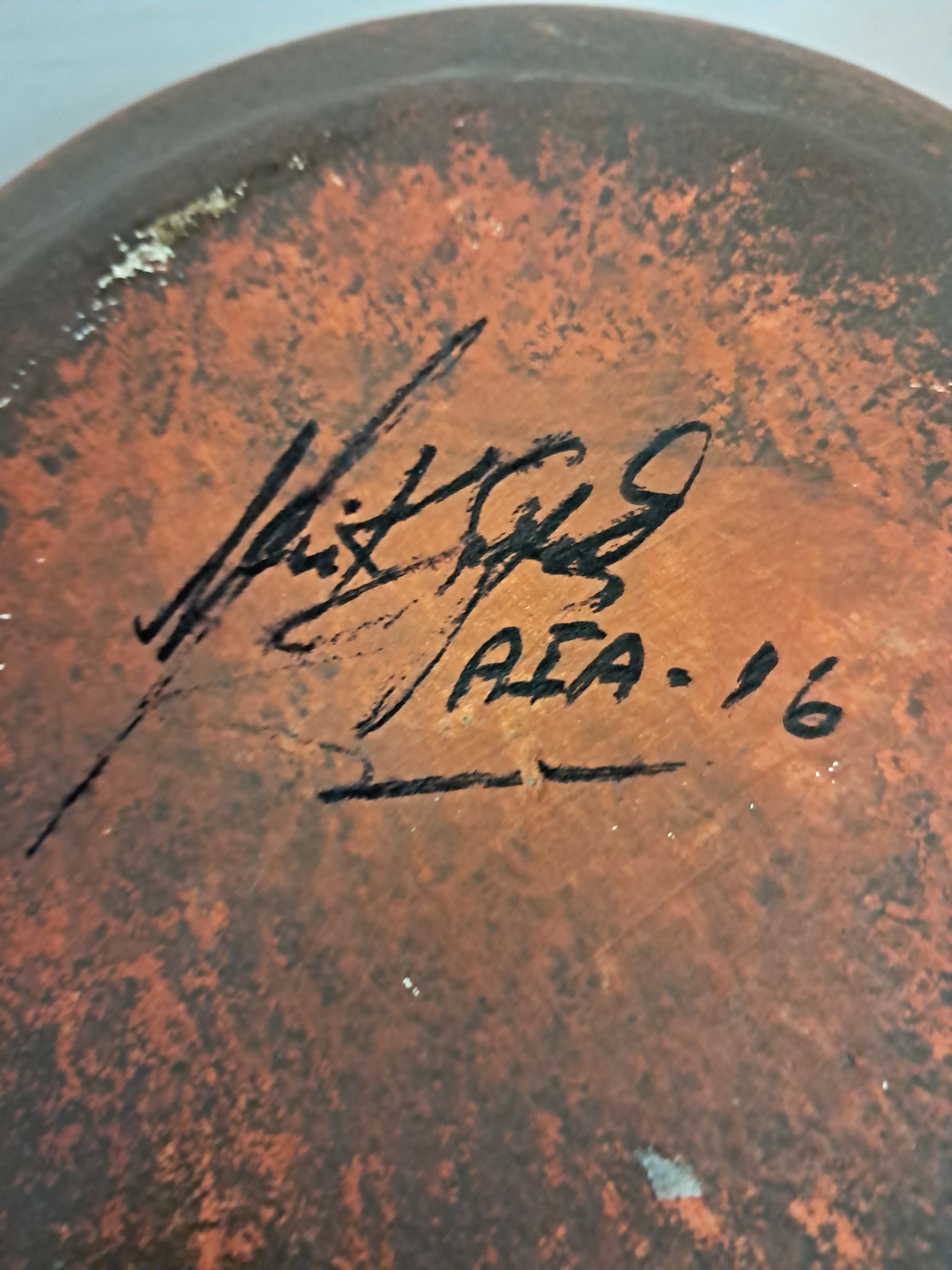 Ceramic Art Pottery Vase/ Large Hand Thrown Art Pottery Signed , Rustic Collectable Pottery9.25" Tall x 9" in Diameter5" : Base 5" :OpeningSigned by ArtistGood Vintage CondiotionNo damages