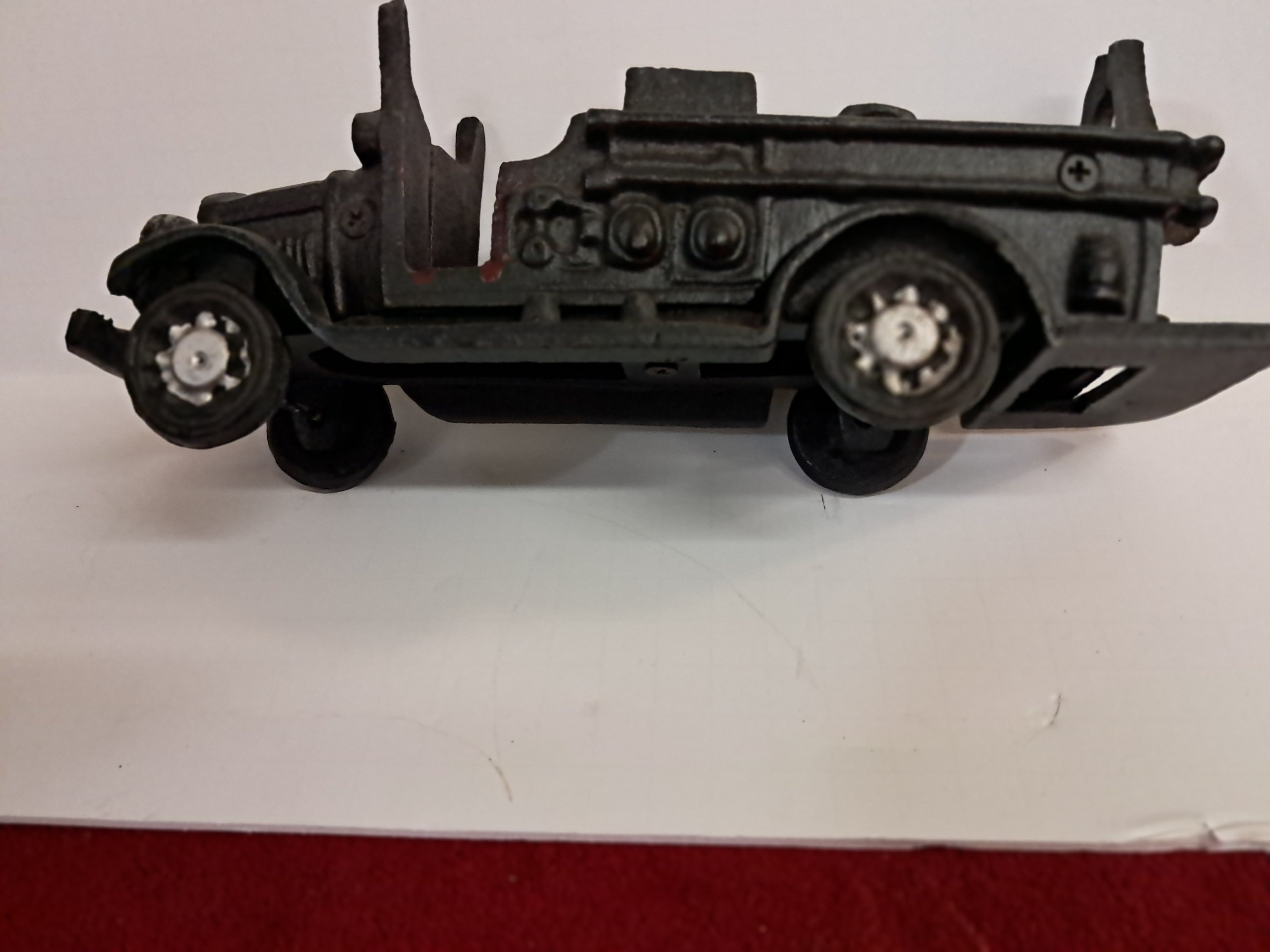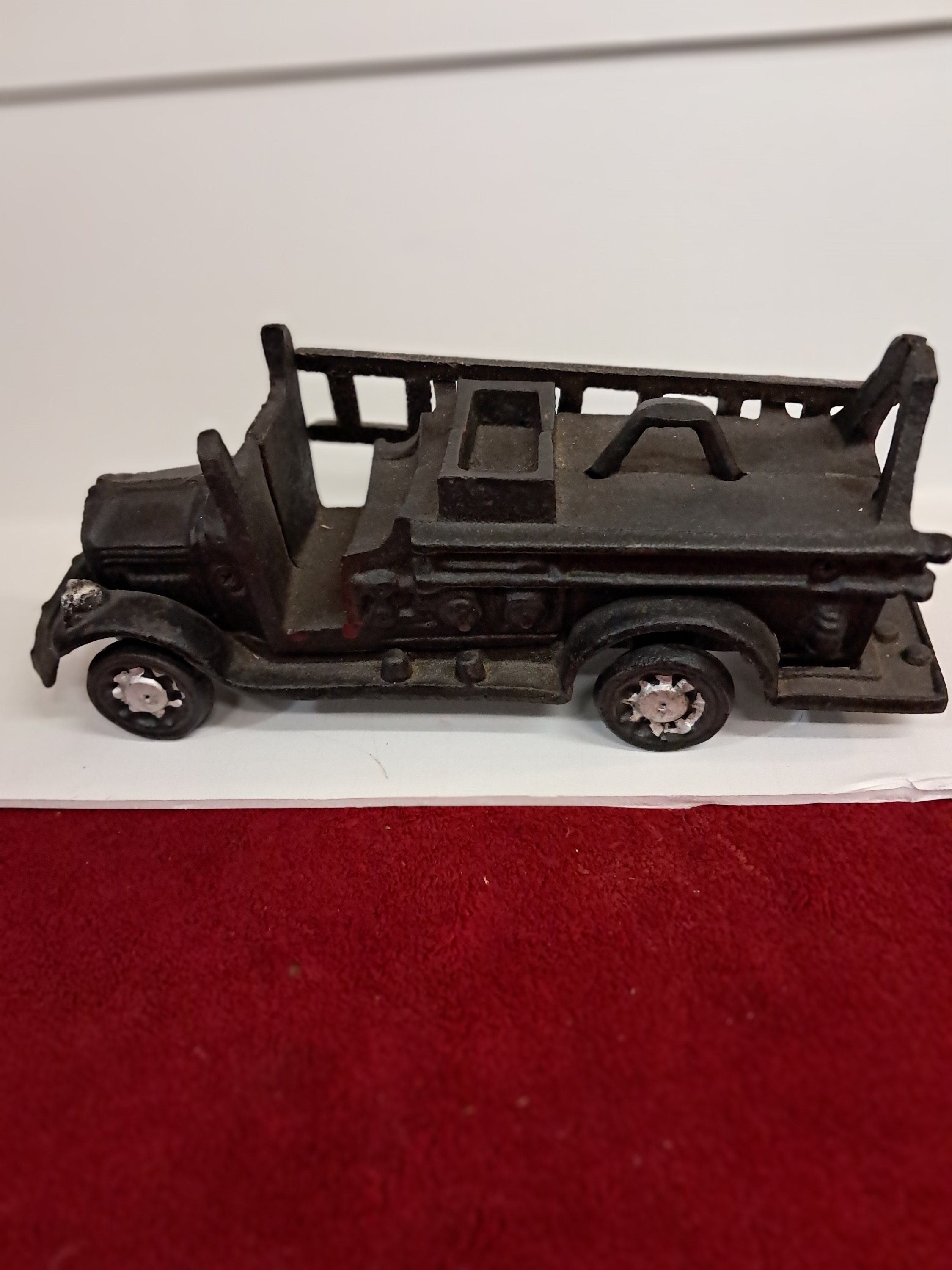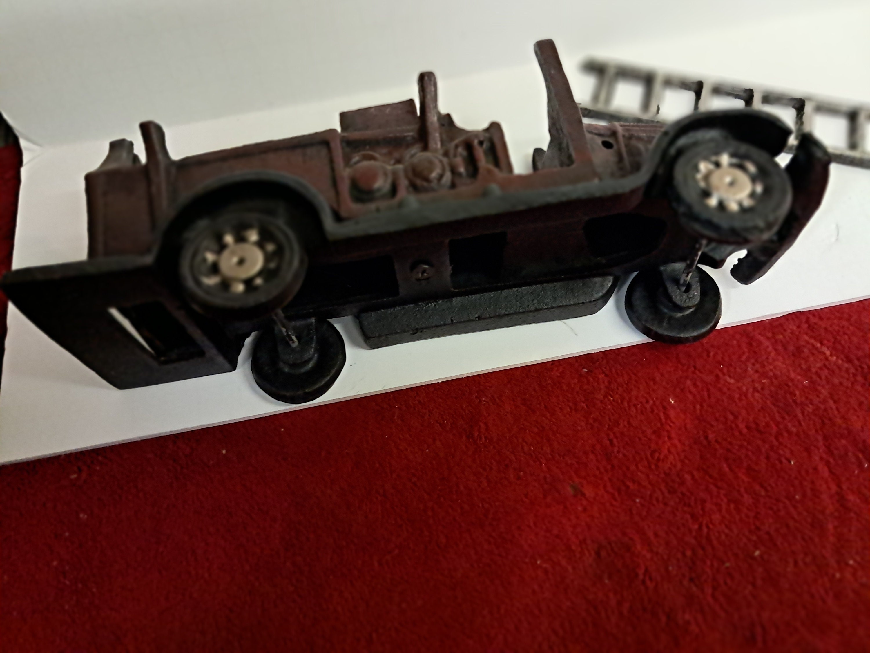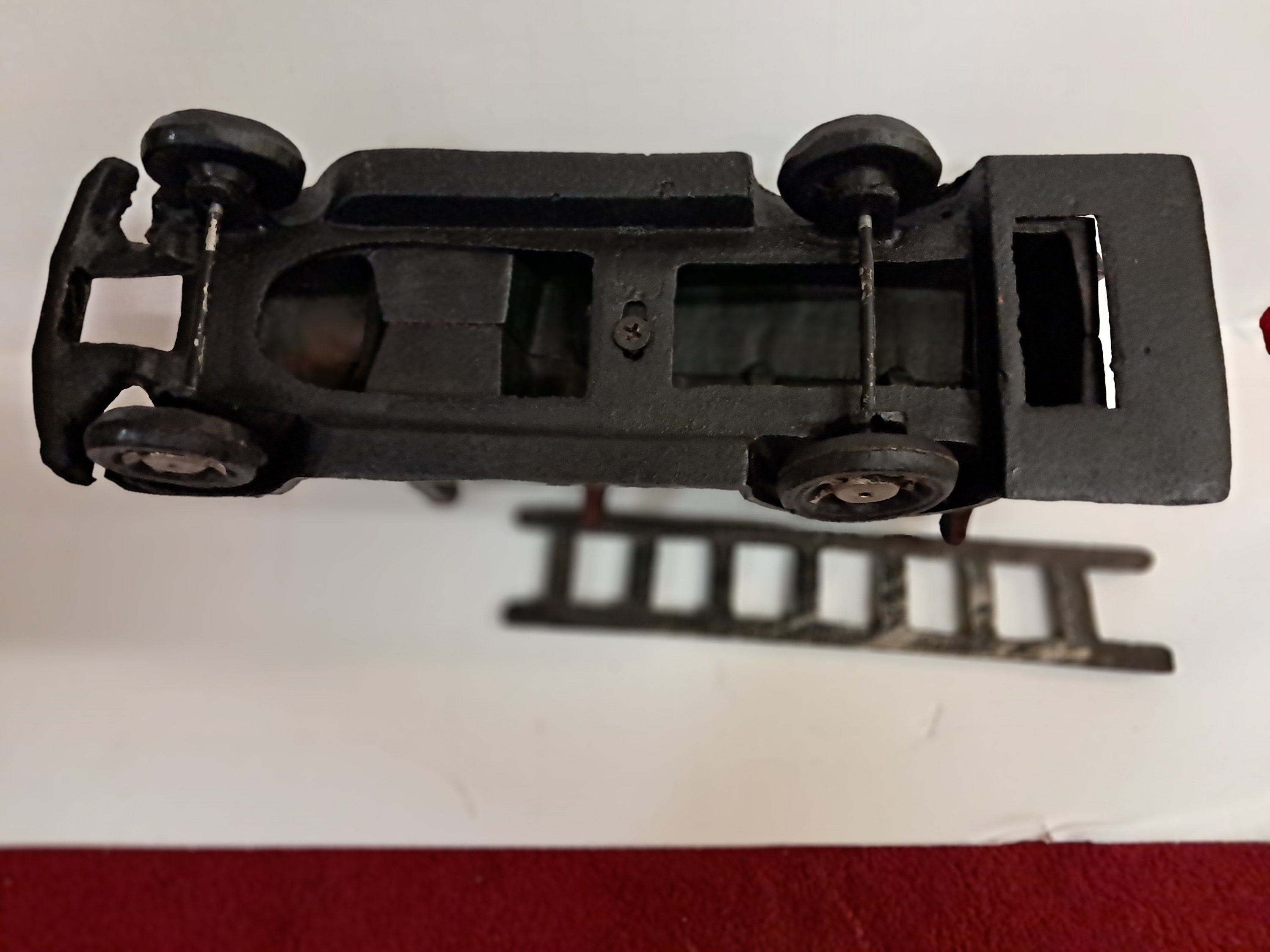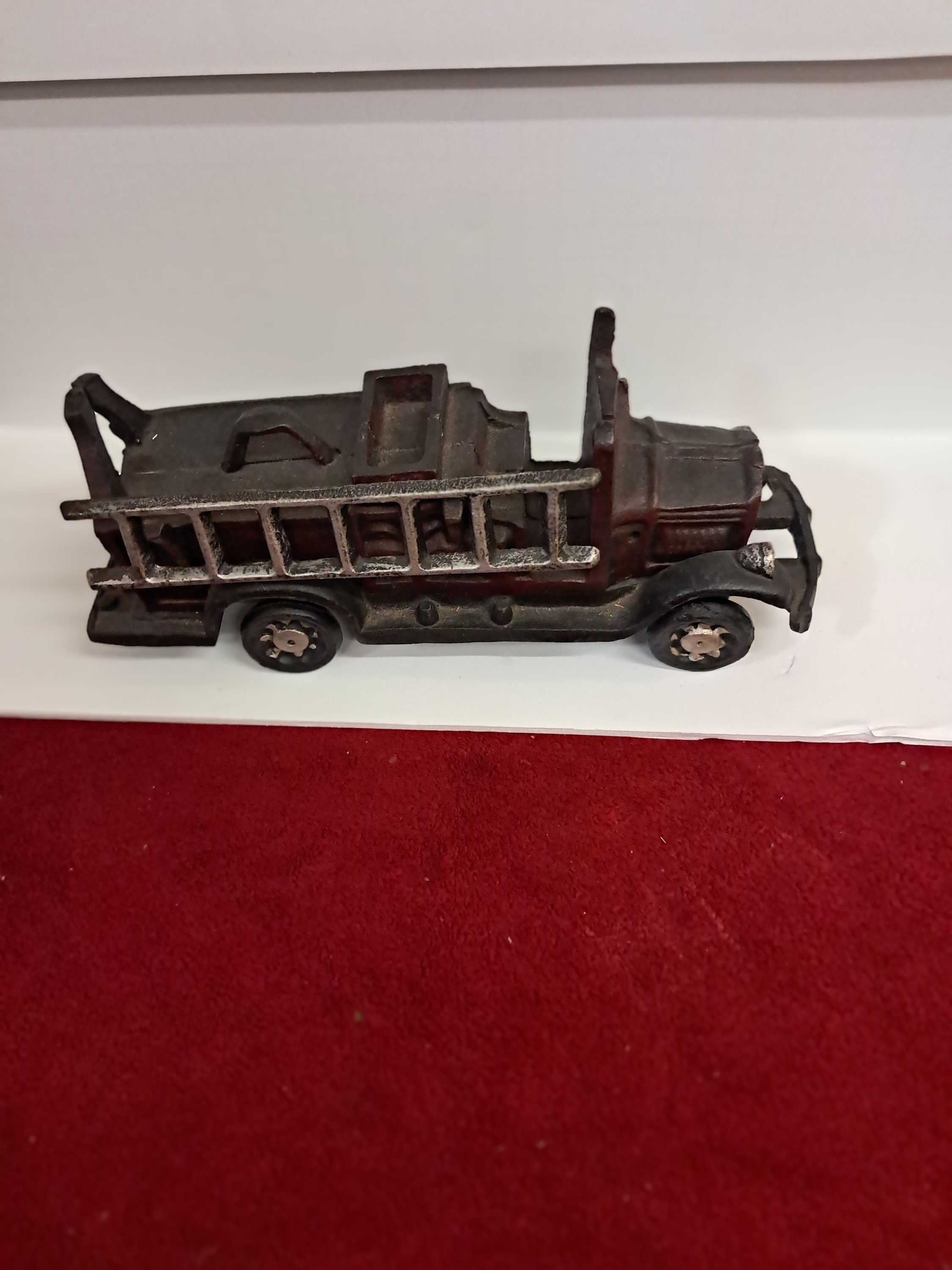 Vintage Cast Iron Fire Truck Reproduction Removable Ladder10 " L x 4" T x 3" DLadder: 6.75" L x 1.25" WNo DamagesPerfect ConditionHeavy 10.5 lbs