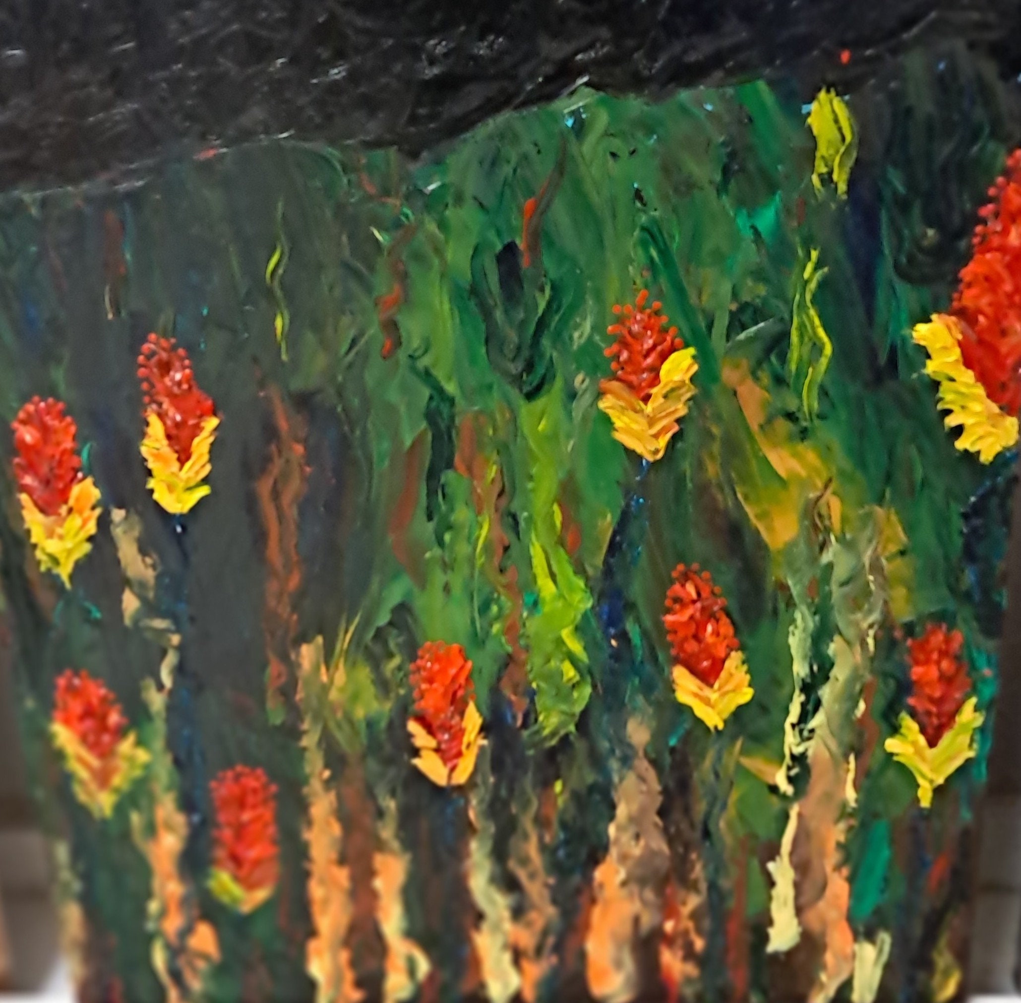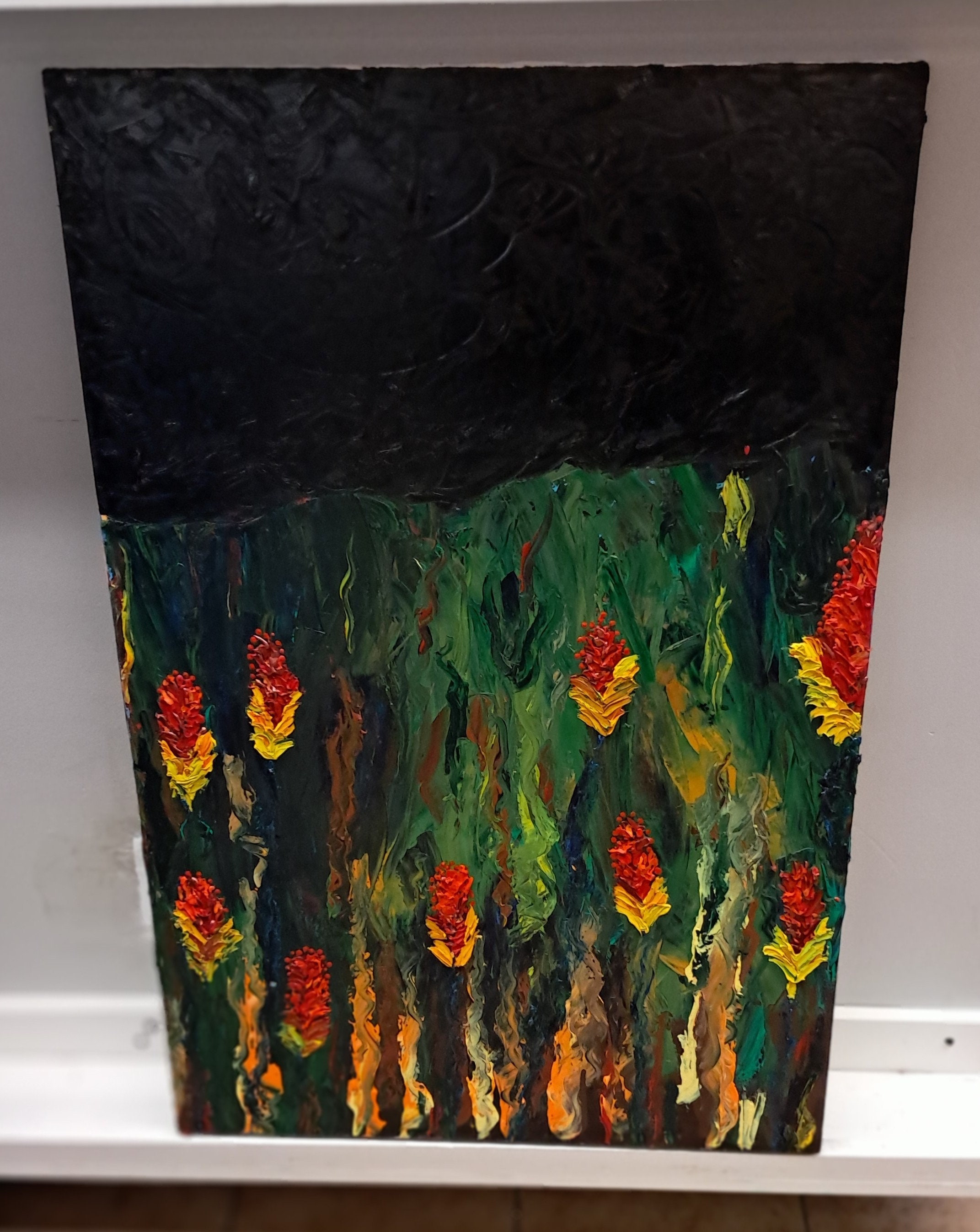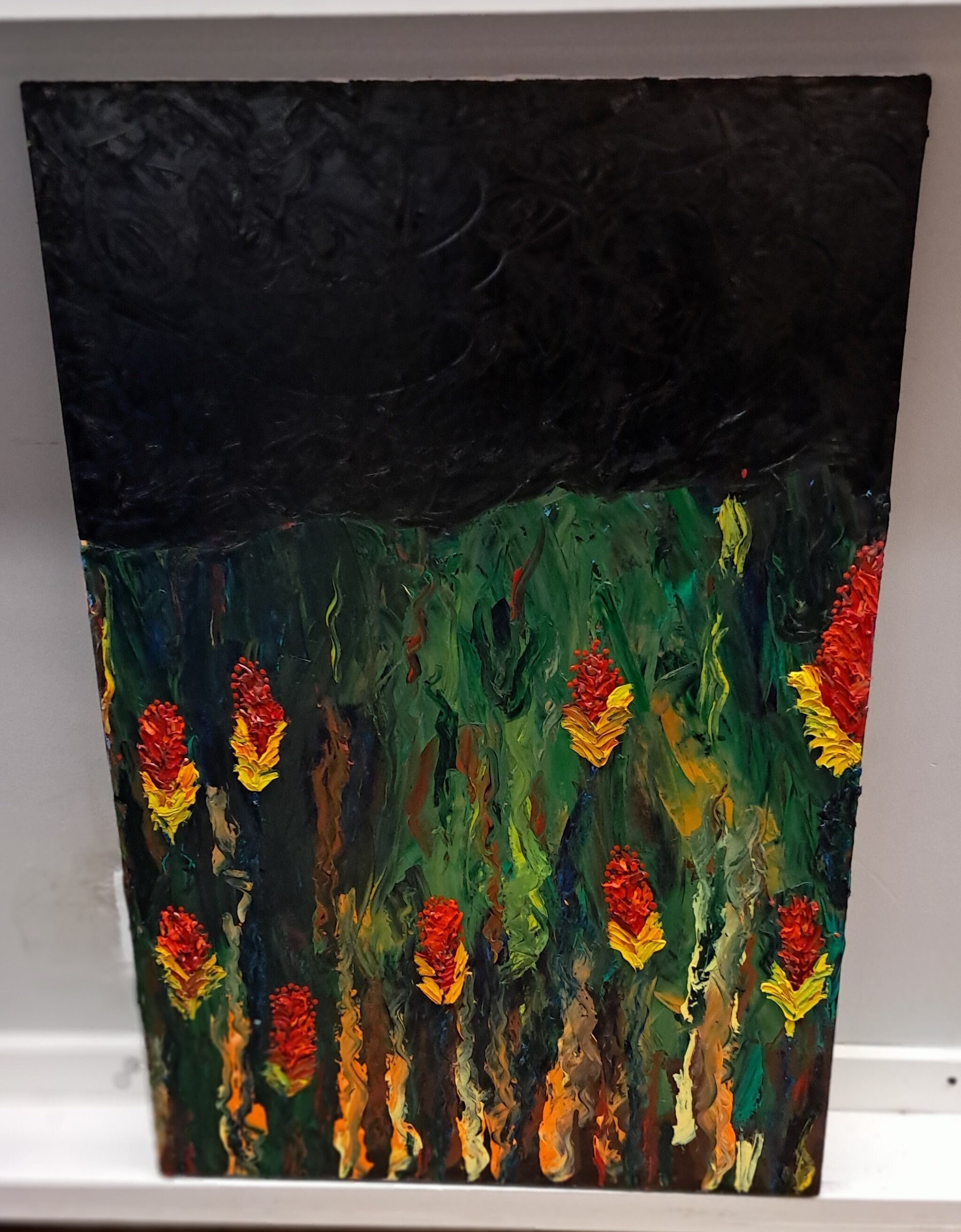 Garden Flowers Under Night SkyOil On Canvas Painting24 " wide x 36 " tall x 1 " deepPainting on Canvas BoardEstate Sales Find. Not Signed & Dated