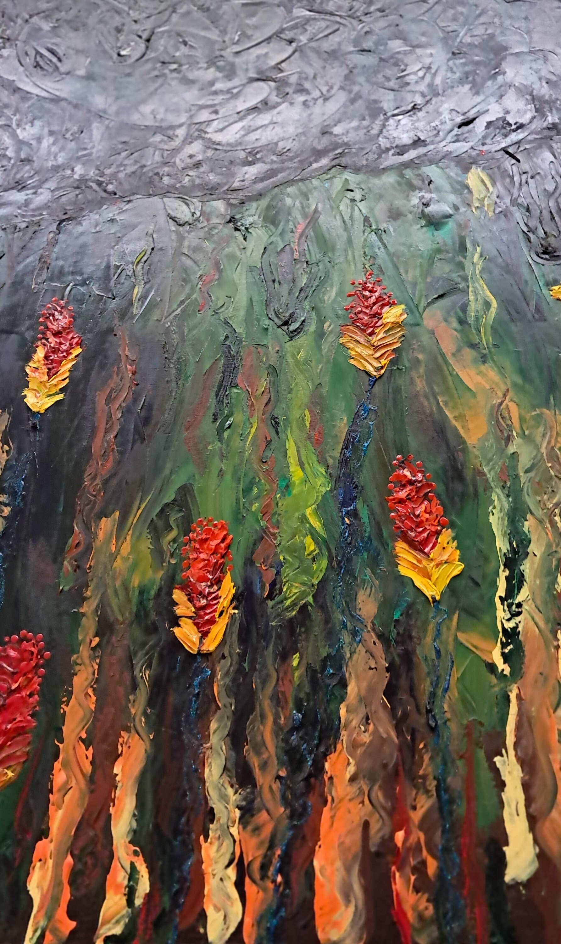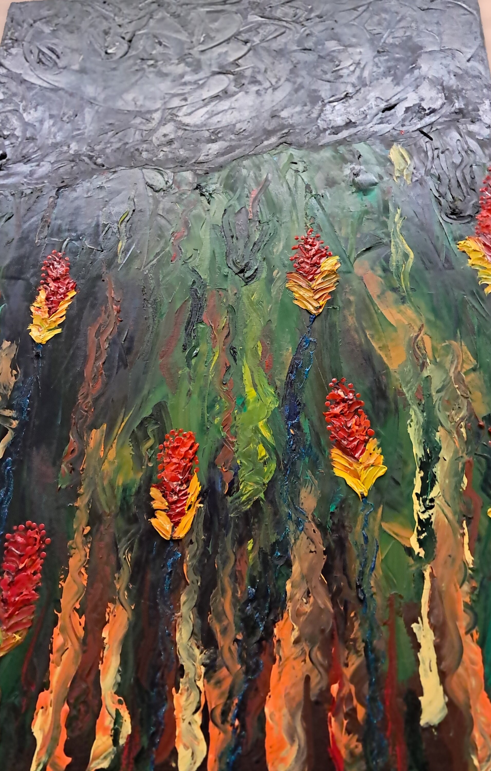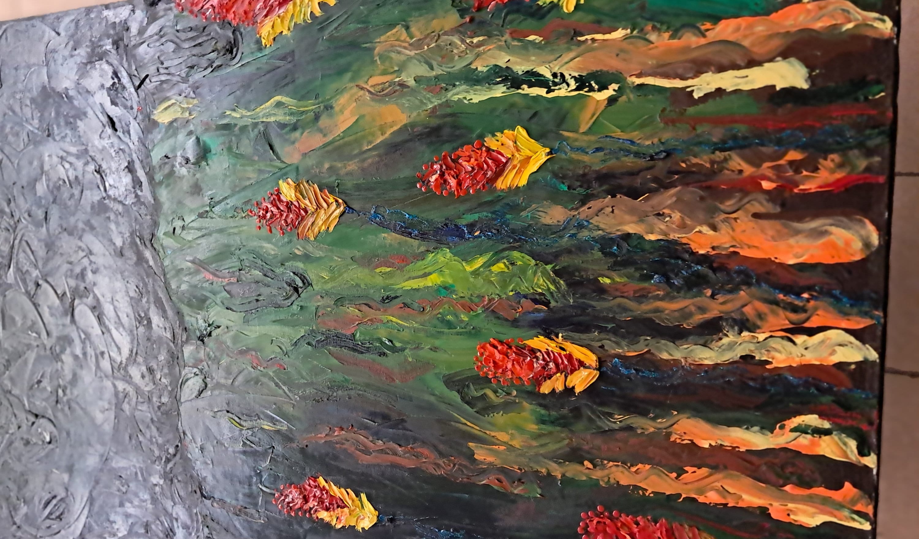 Garden Flowers Under Night SkyOil On Canvas Painting24 " wide x 36 " tall x 1 " deepPainting on Canvas BoardEstate Sales Find. Not Signed & Dated