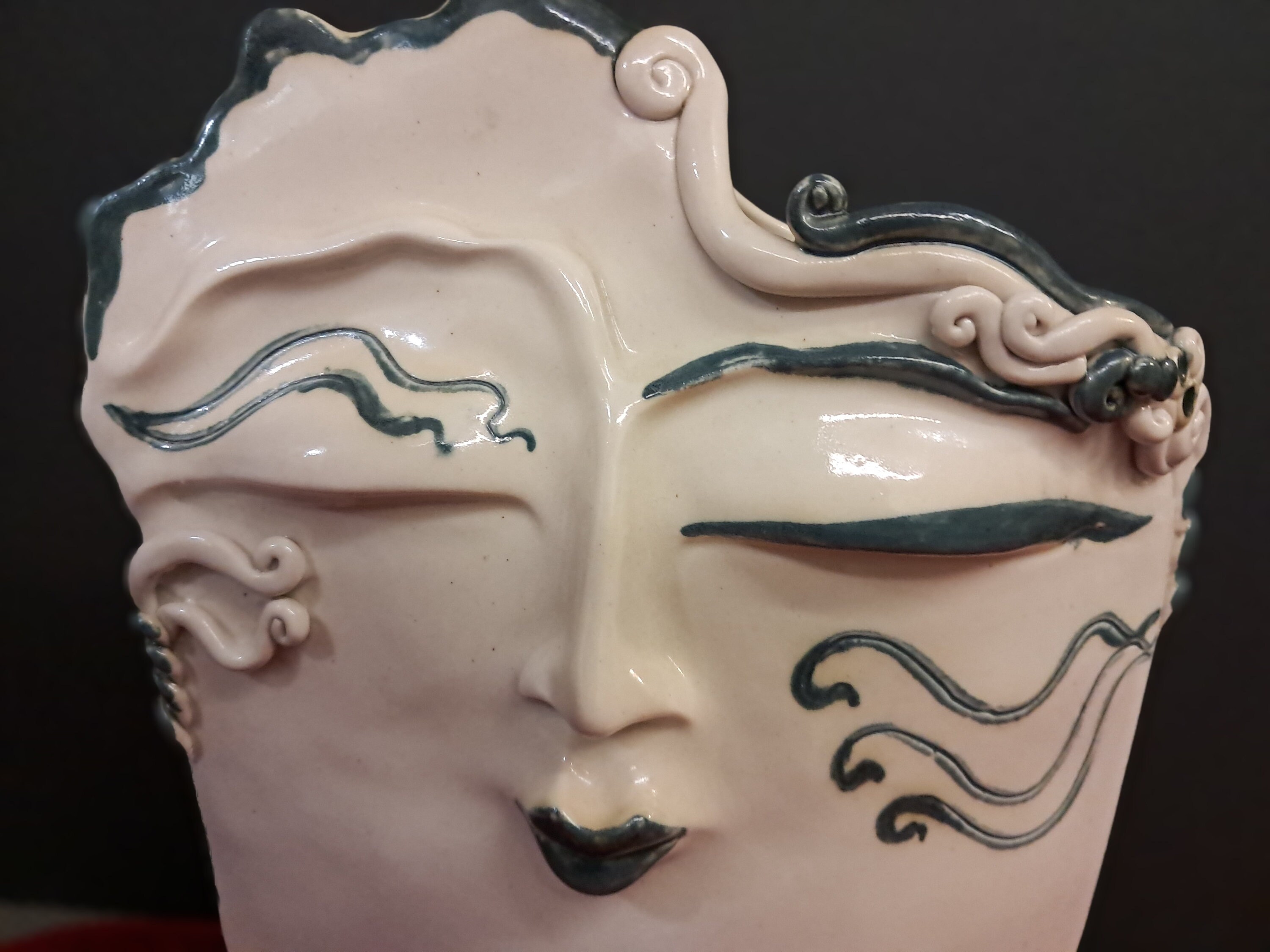 Ceramic Face Vase Art Work by JODBeautiful art work Very Rare and Unique10.5" tall x 7.5" wide x 3" deepExcellent Condition No Damages