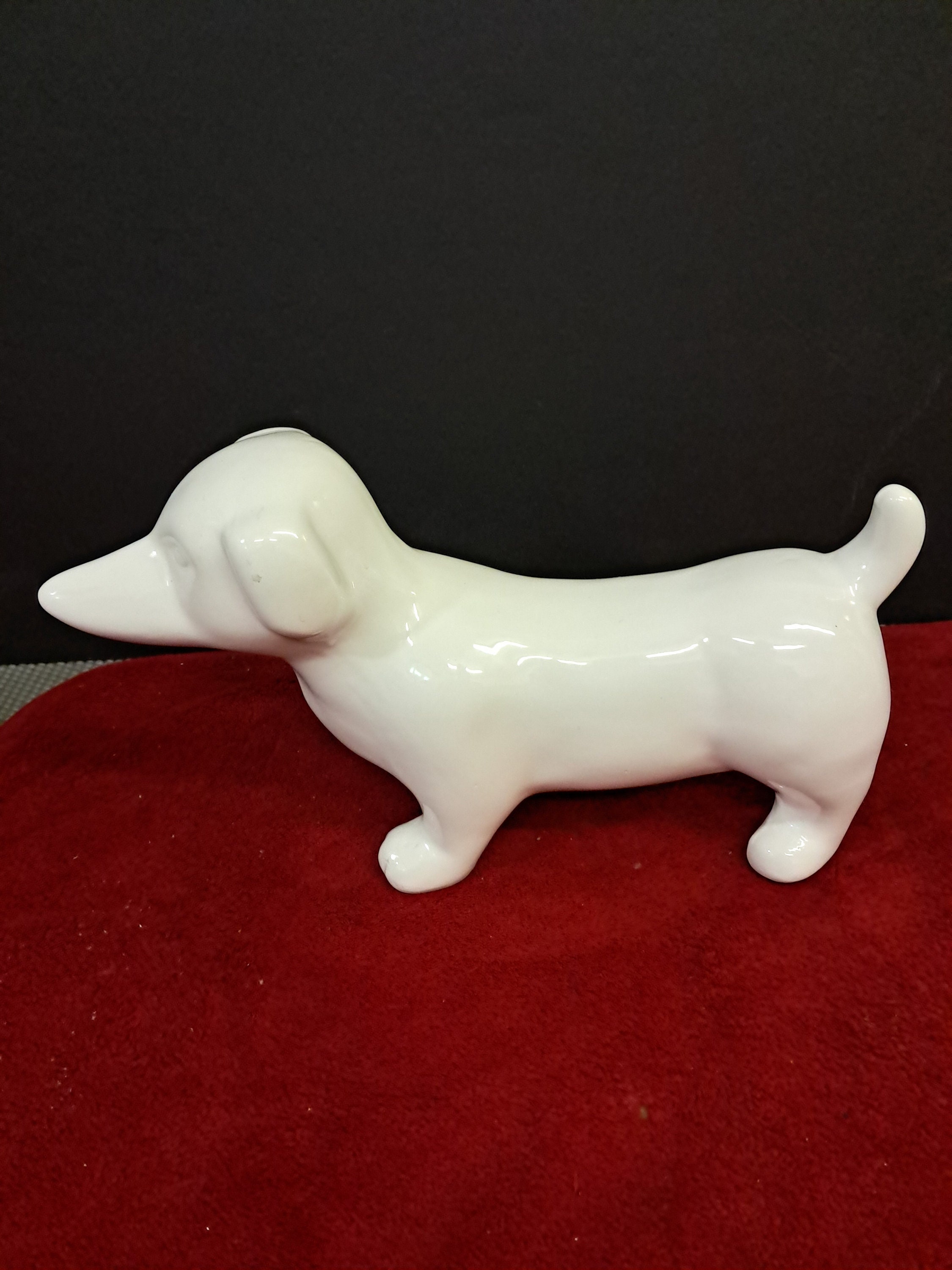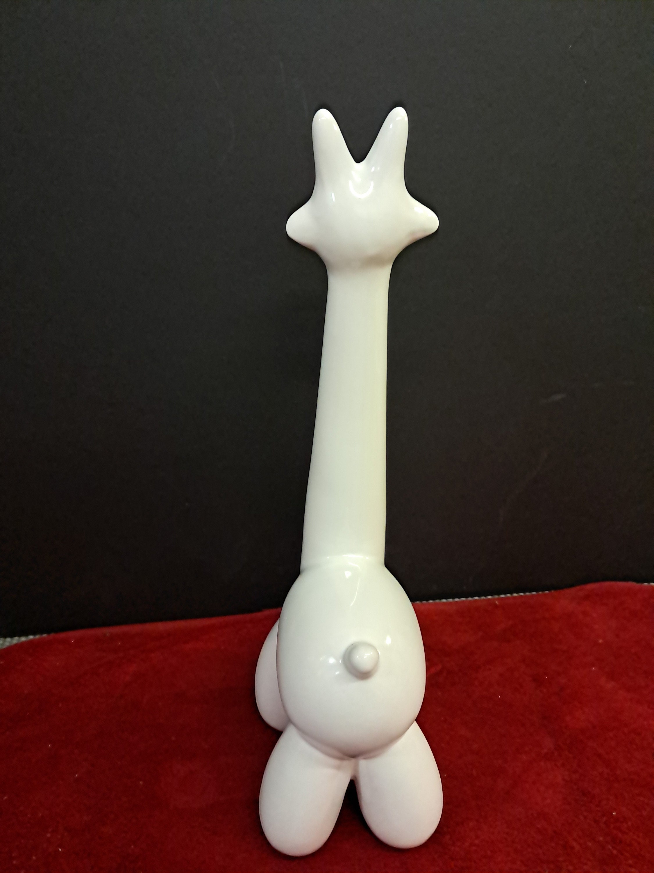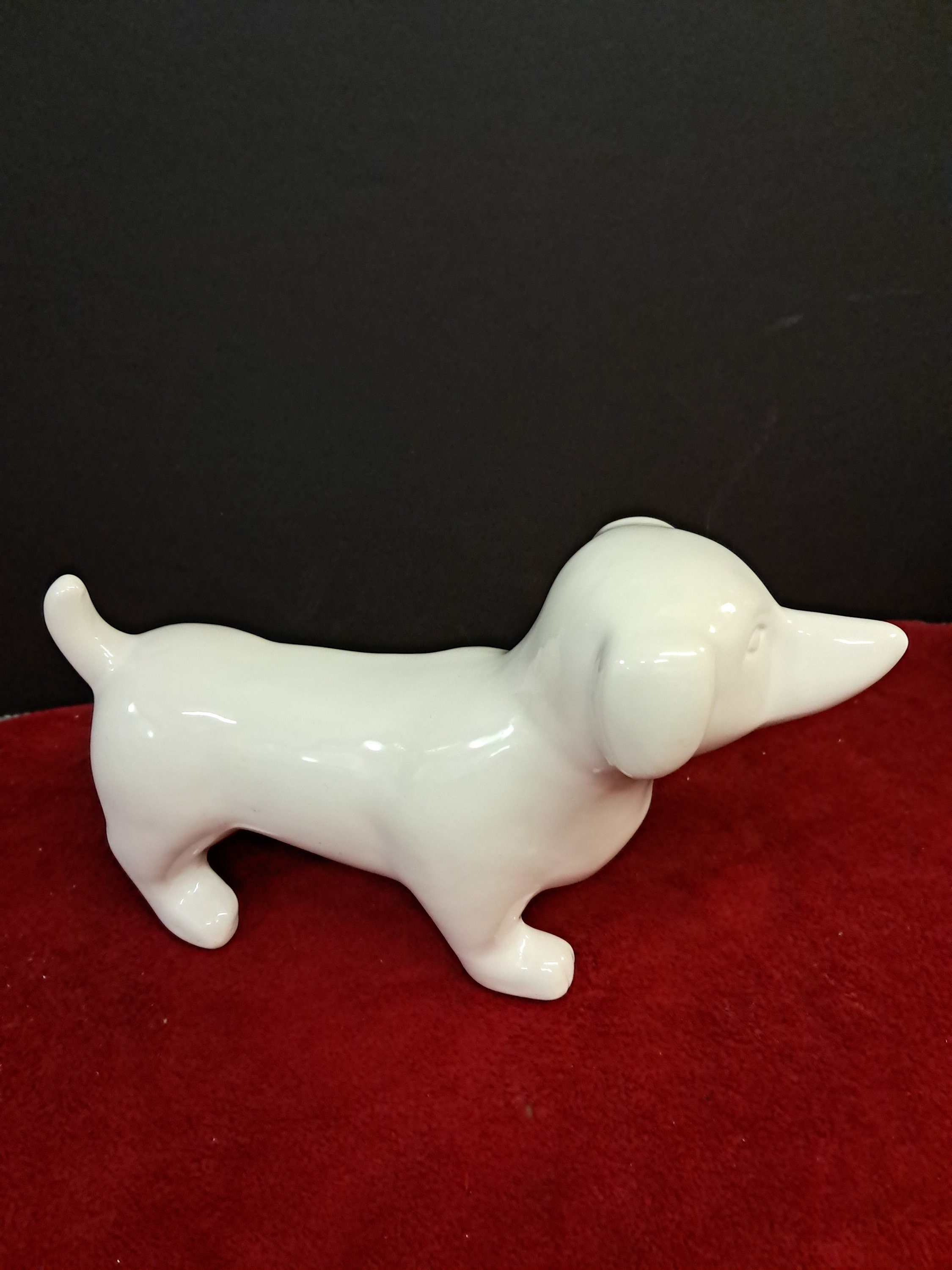 Ceramic Figurine Matte White FinishGiraffe Balloon13.25" tall x 4.5" wide x 3.5" deepStanding Dachshund Dog 5.5" tall x 11" long x 3.75" deepBoth are in Excellent Condition with no damages