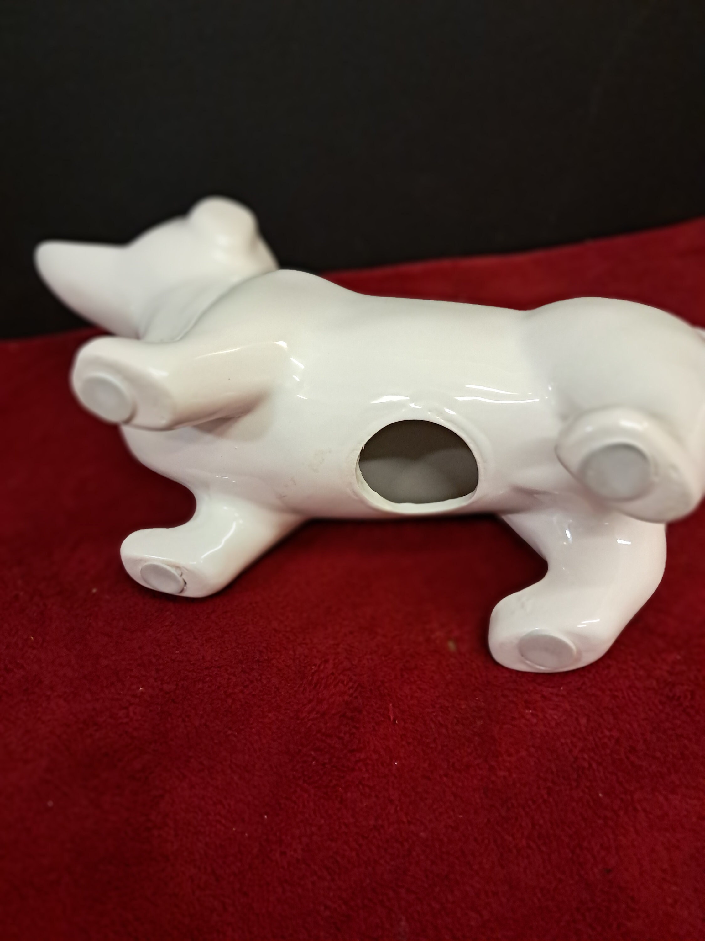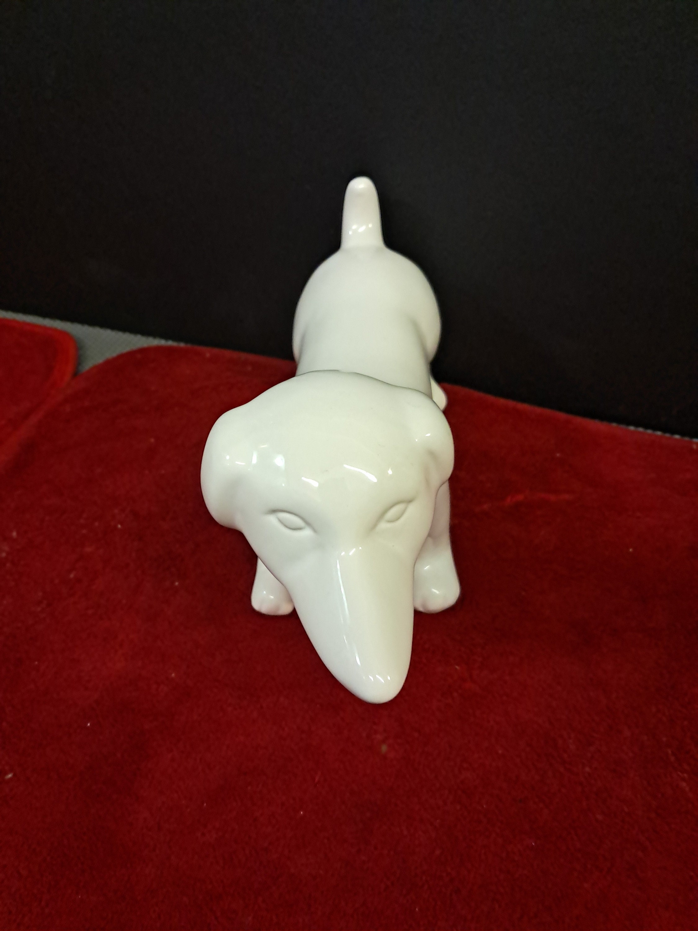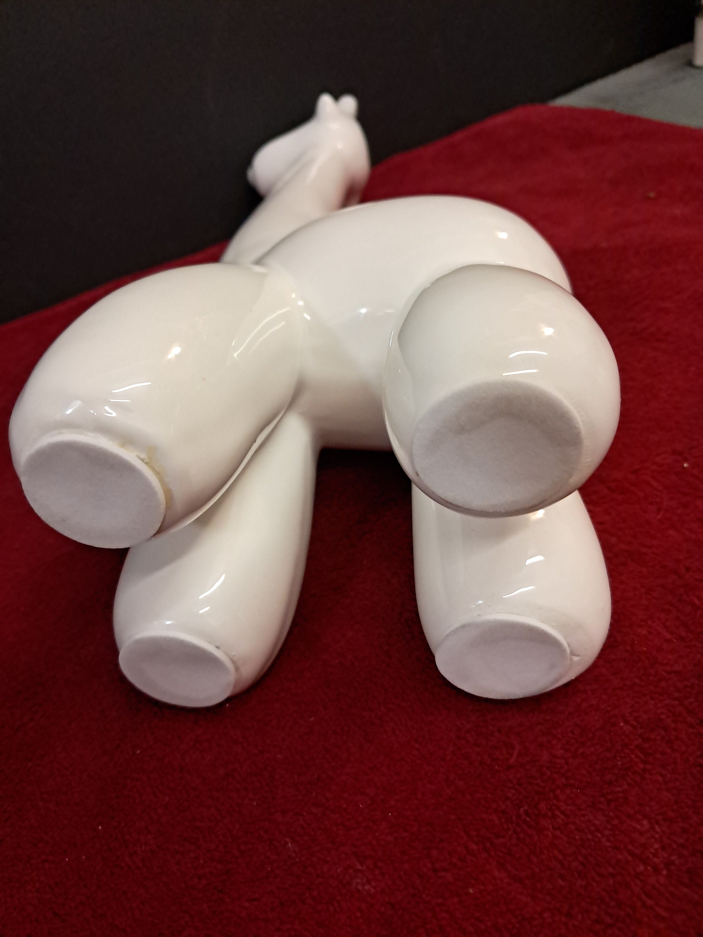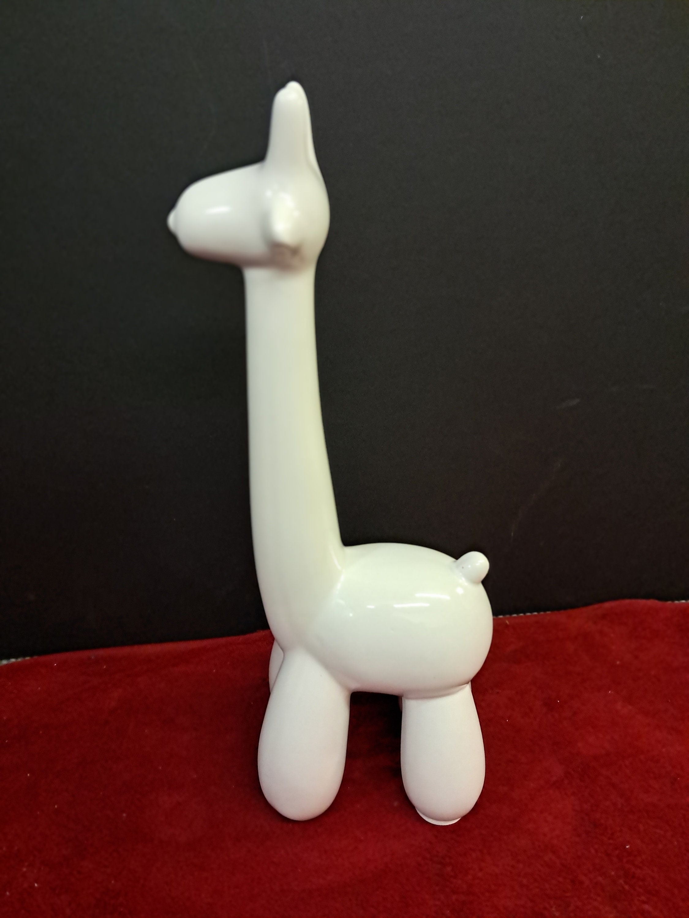 Ceramic Figurine Matte White FinishGiraffe Balloon13.25" tall x 4.5" wide x 3.5" deepStanding Dachshund Dog 5.5" tall x 11" long x 3.75" deepBoth are in Excellent Condition with no damages