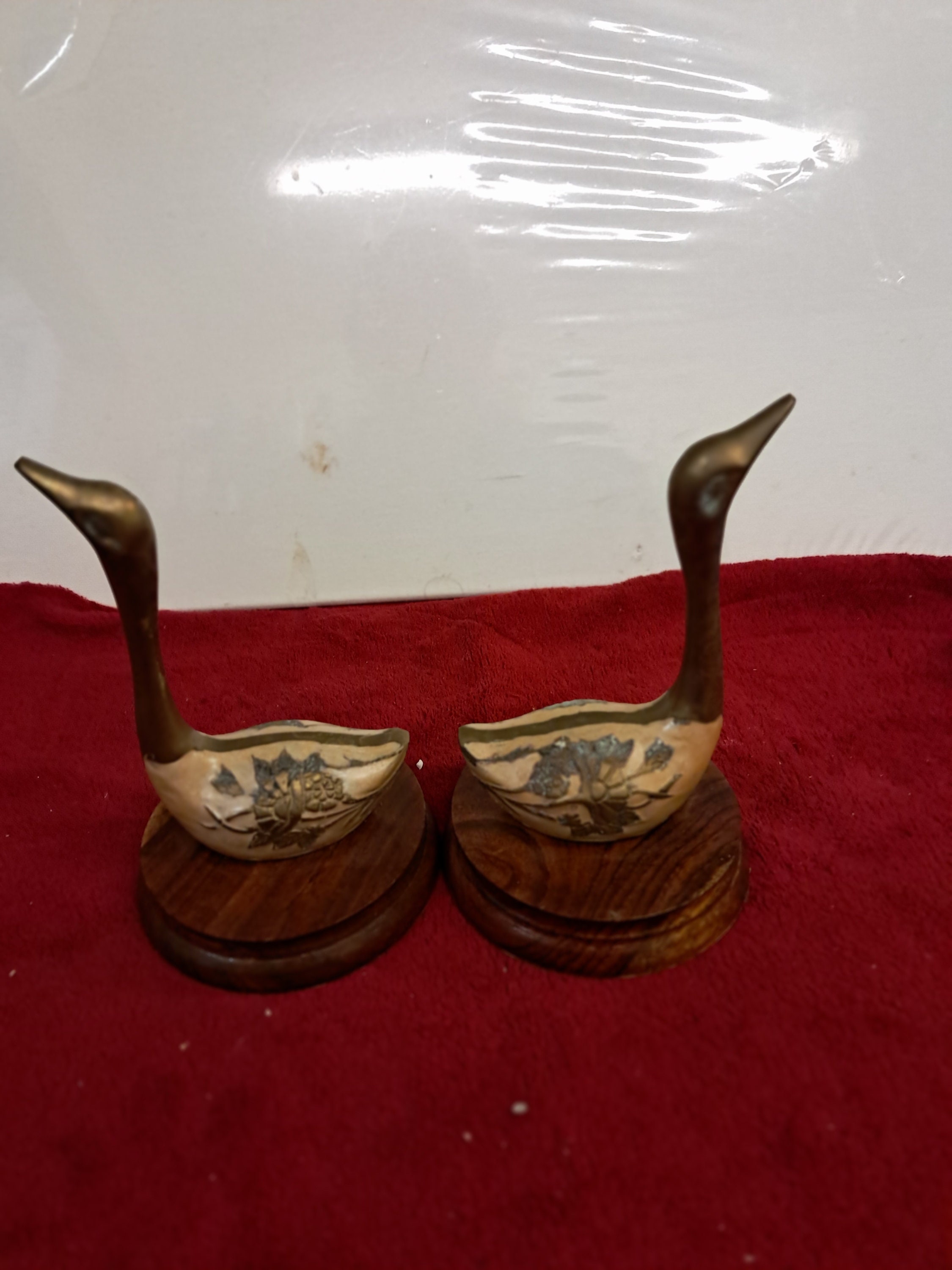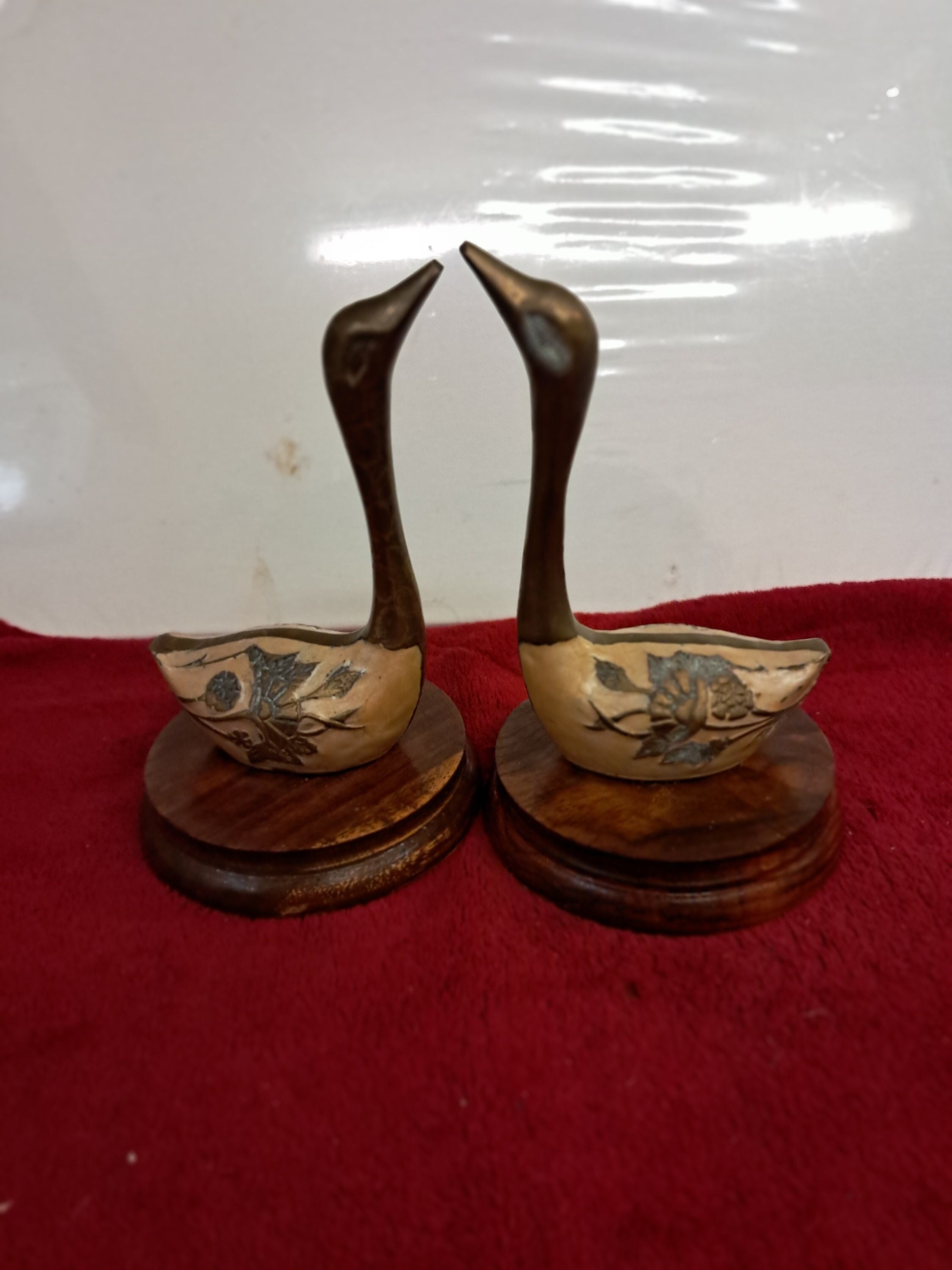 This set of two decorative brass swans has a beautiful aged patina that only comes with age.