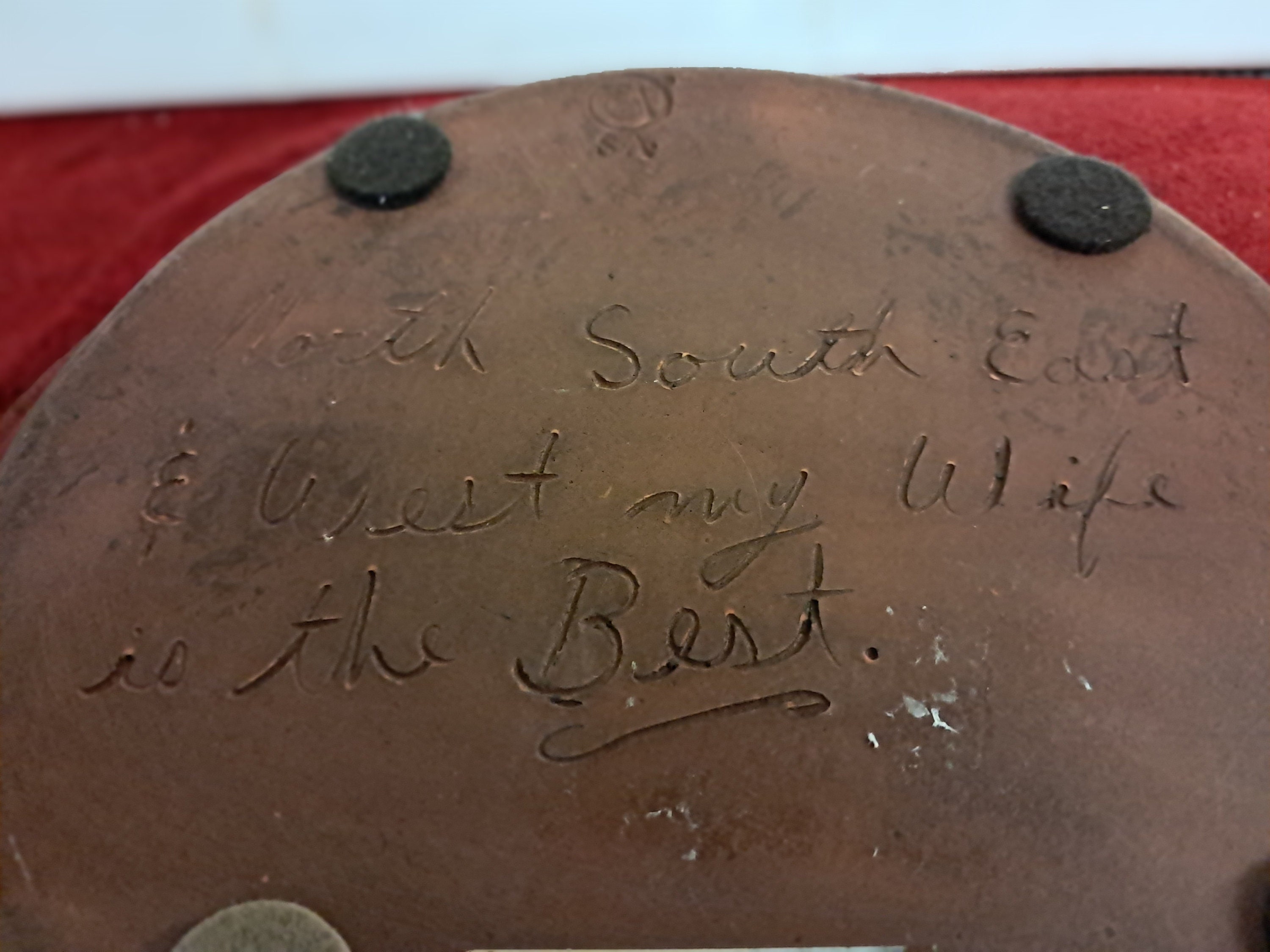 Hand written at base," North,South,East, & West, My Wife Is The best"