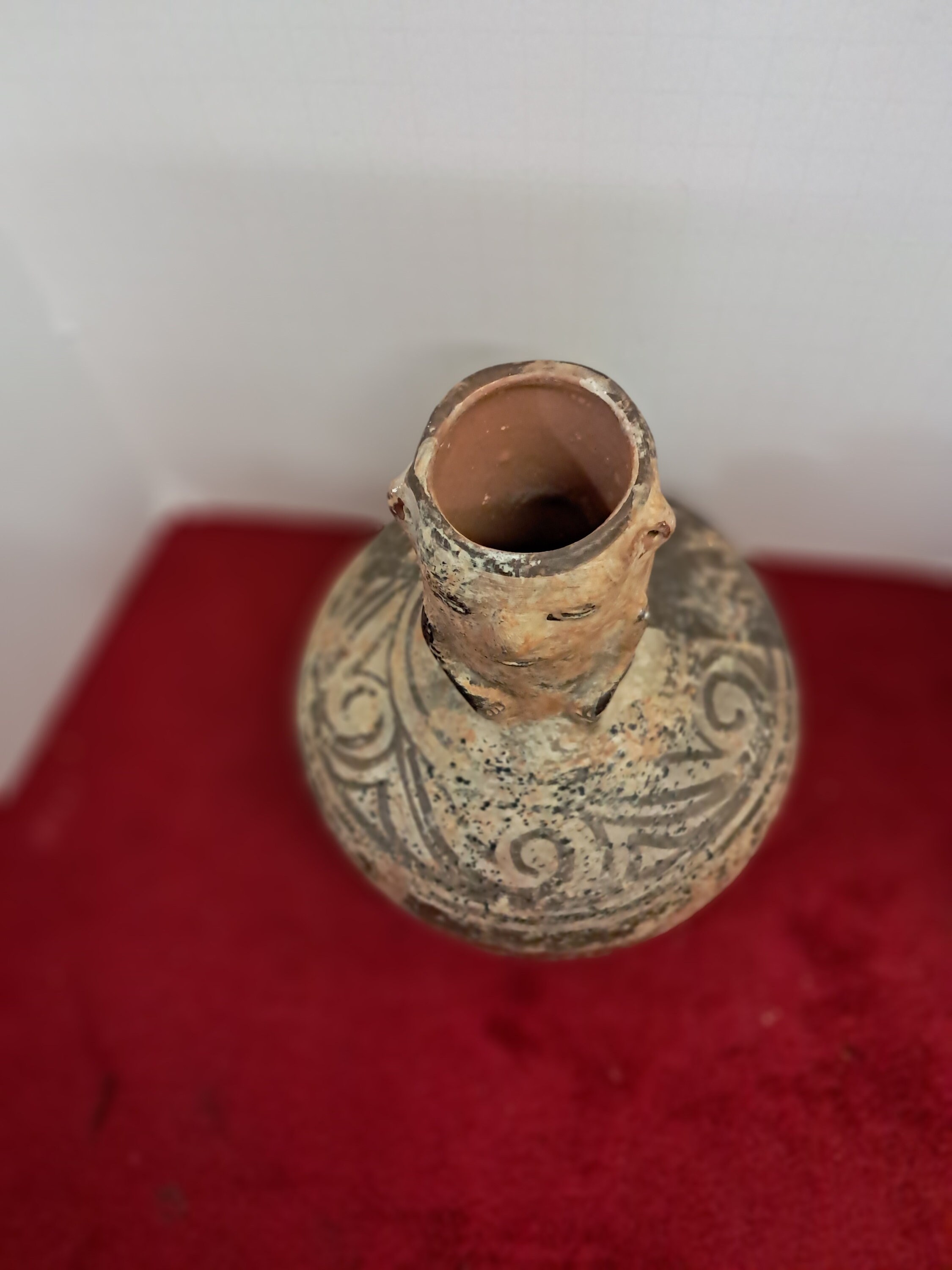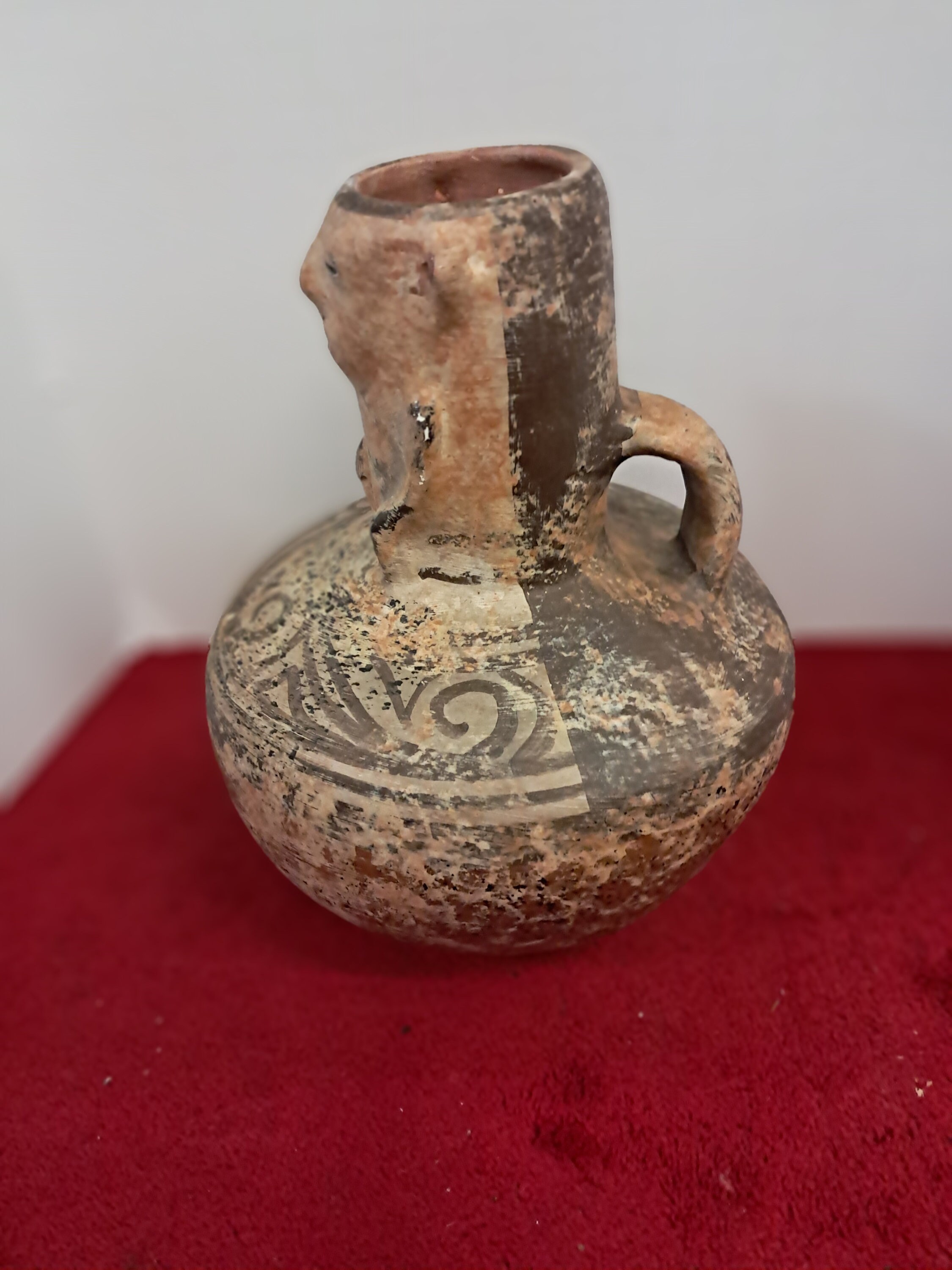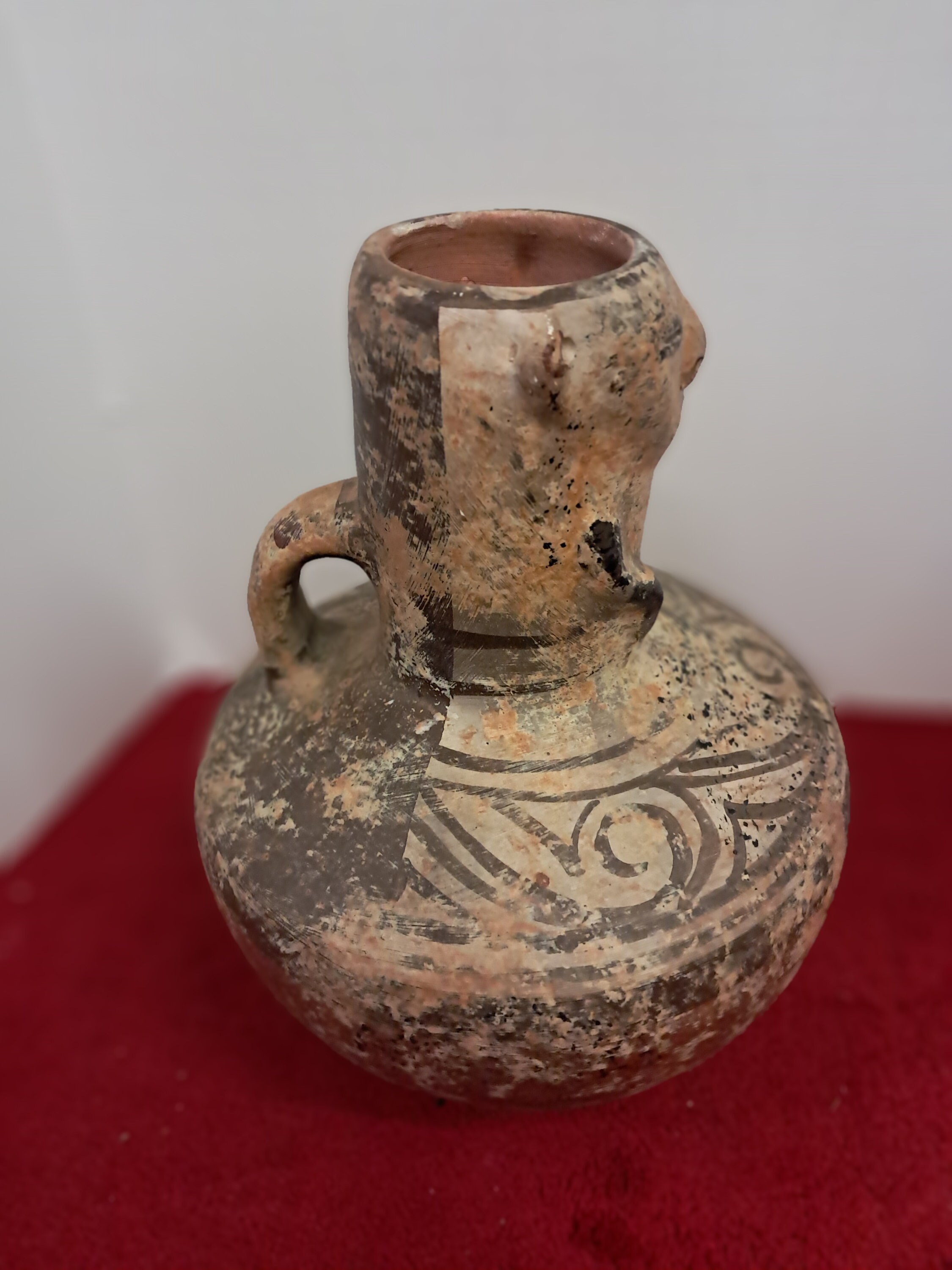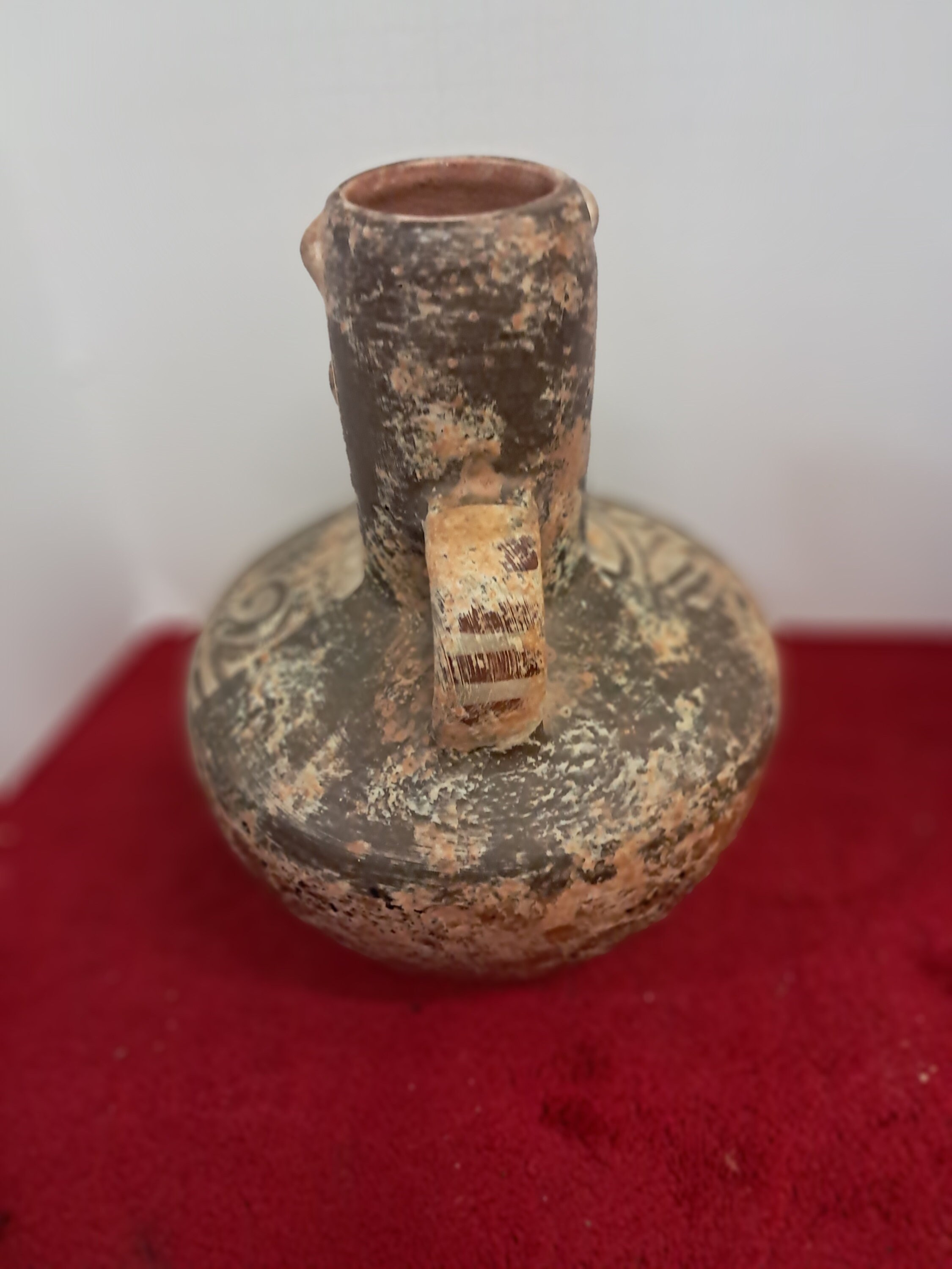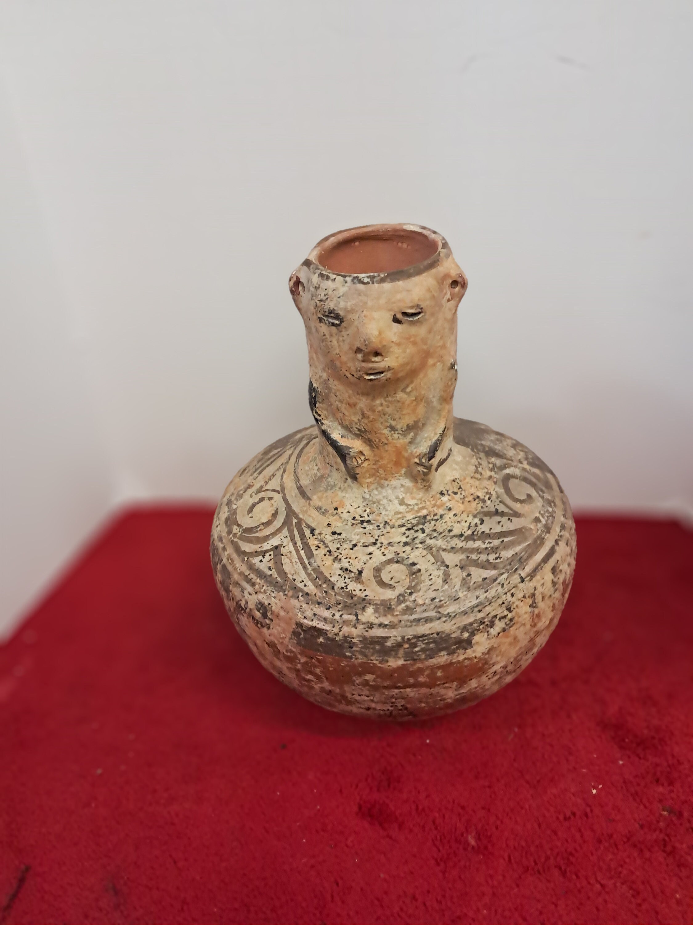Prehispanic Vasel with human head and multicolor paints, , date unknown. Appears to be avase