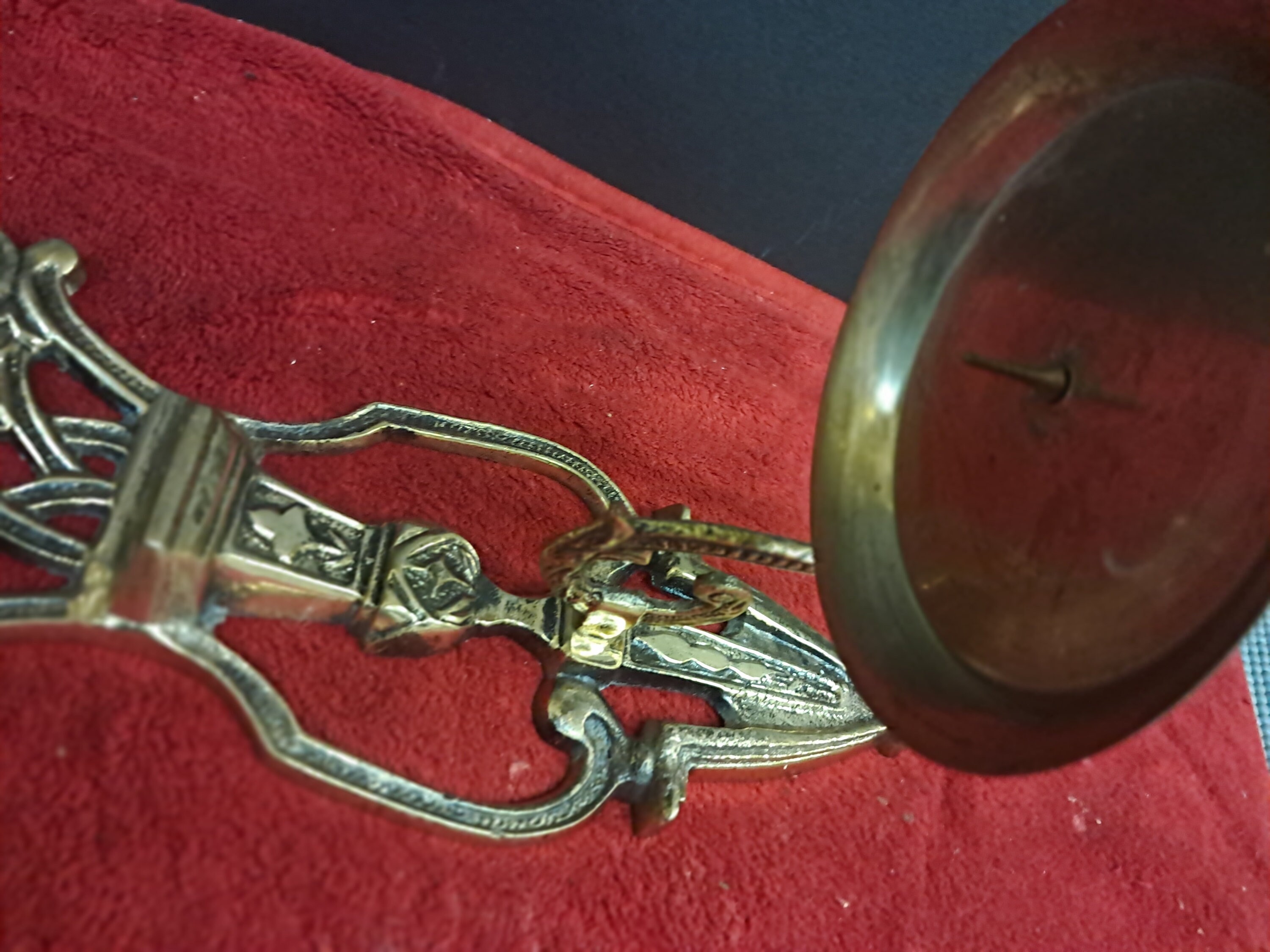 Made from high-quality brass and measuring 14.5 inches in length, this sconce is a beautiful addition to any collection of decorative collectibles. Its features include a sturdy design that can hold one candle, making it an ideal option for any wall.