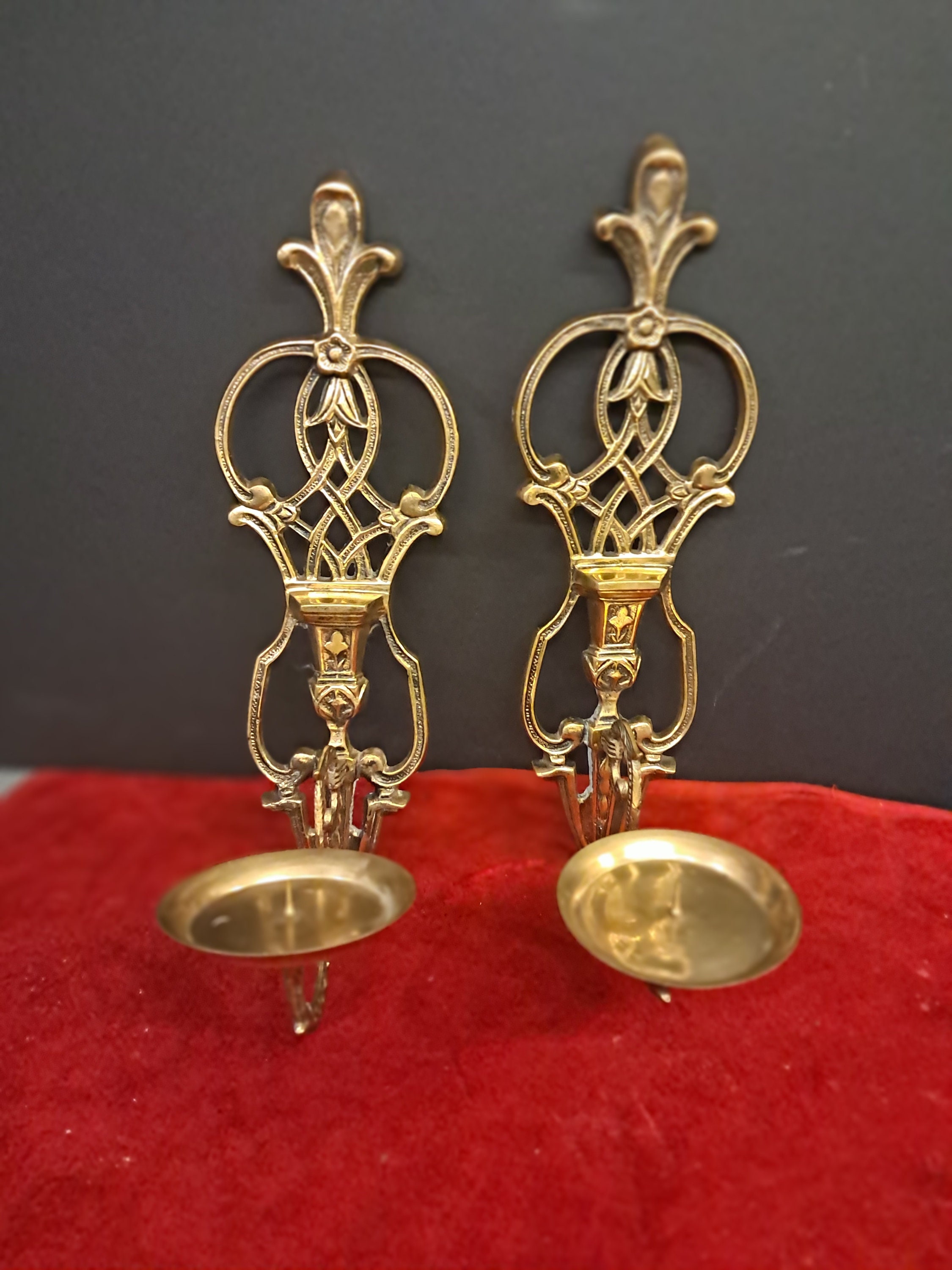 2 Vintage MCM Brass Fleur De Lis Brass Wall Sconce Candle Holders