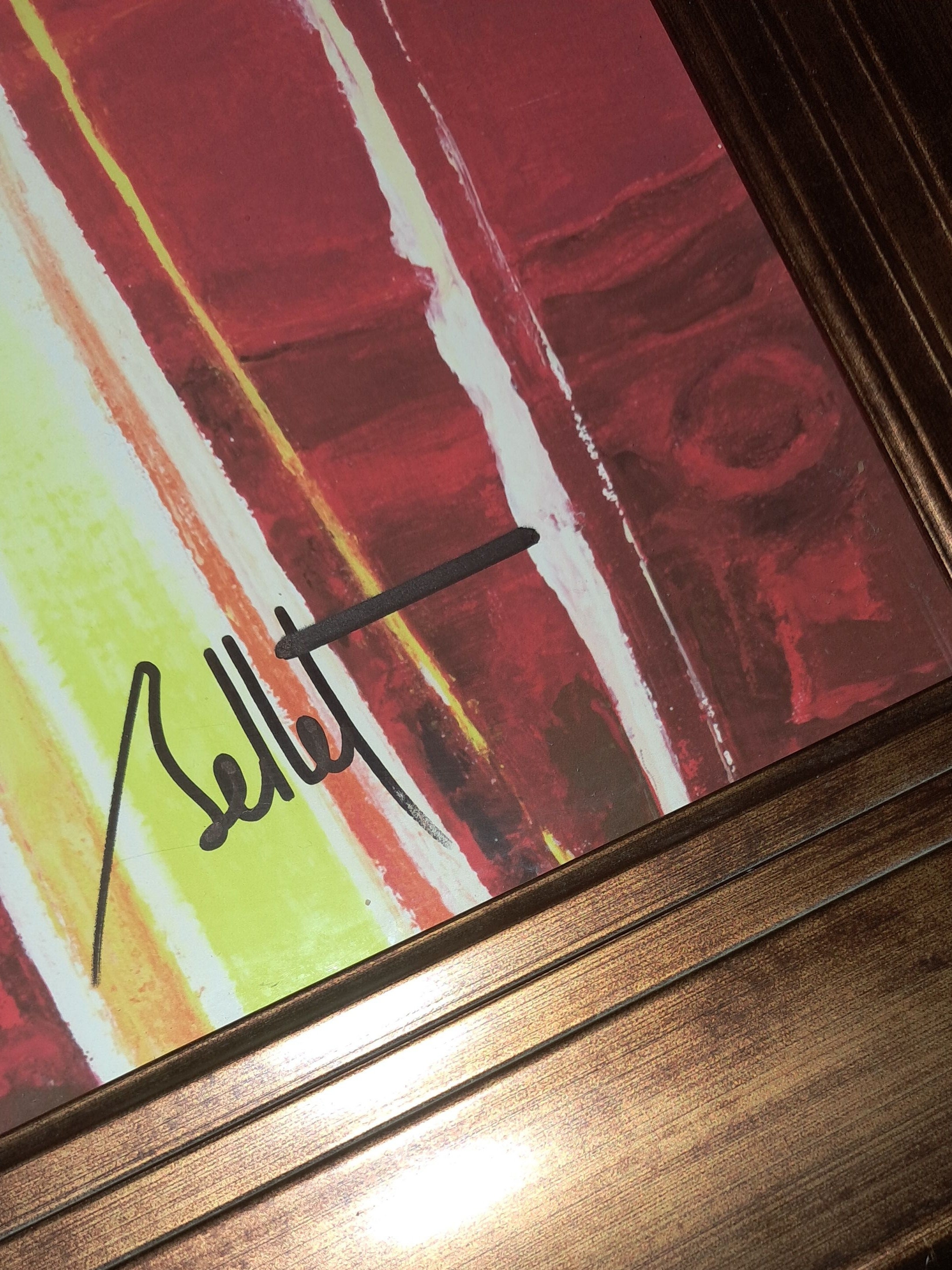 This beautiful work is hand signed in ink by the artist in the lower right. The vibrant yellow and reds in this work are stunning.