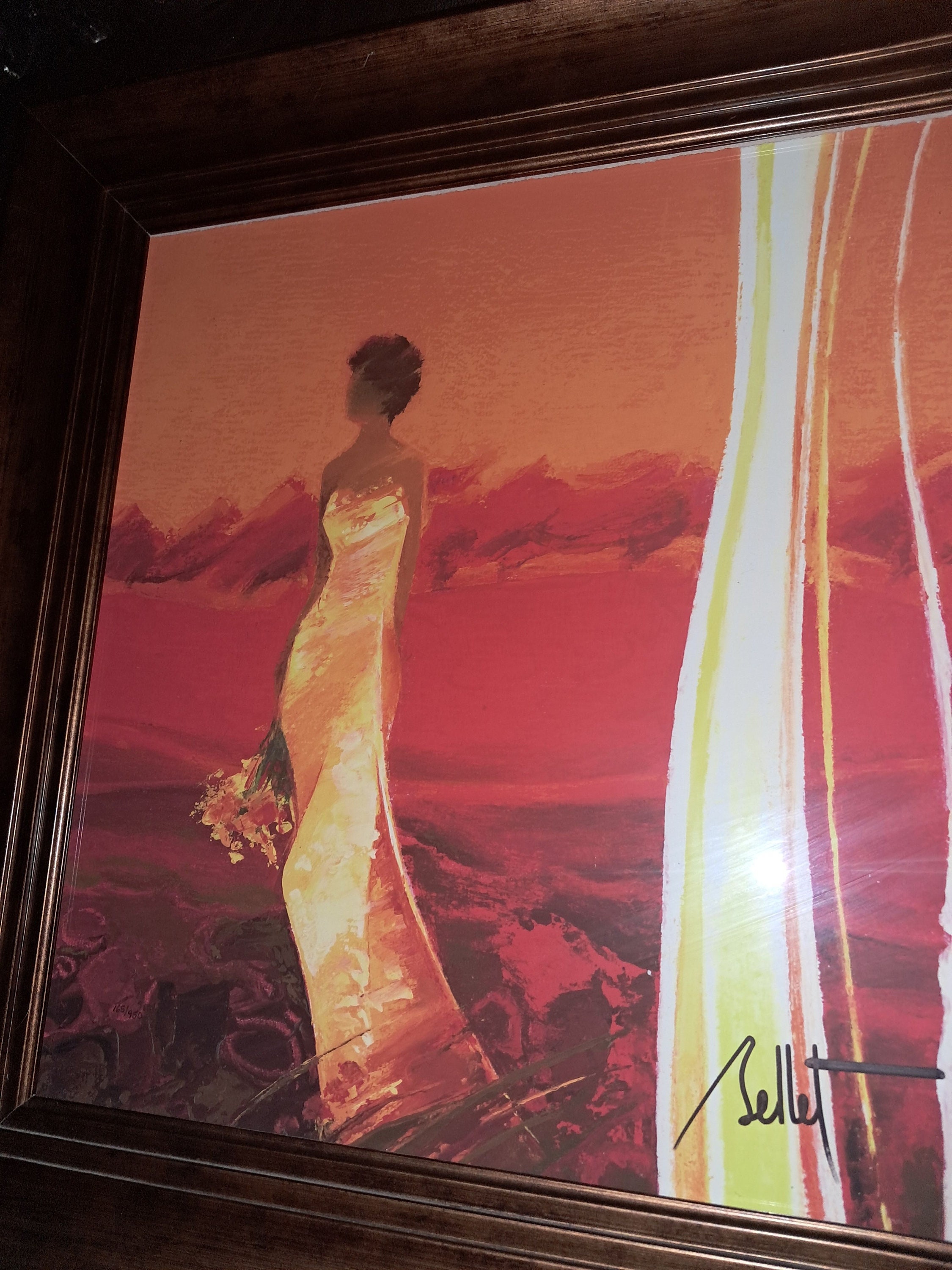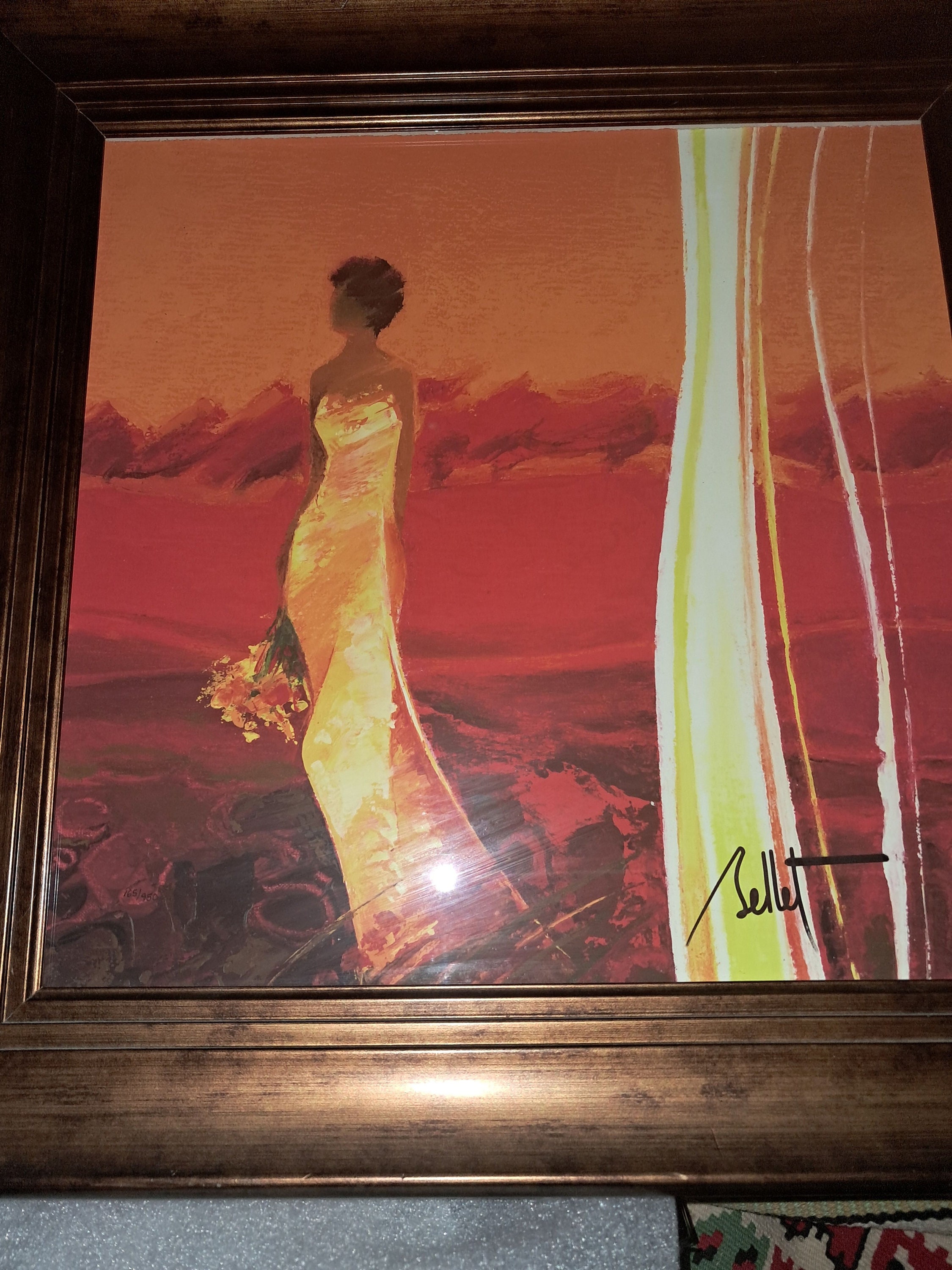 Emile Bellet's paintings are notorious for the mysterious female he includes in his compositions. His wife, his daughter and musings on an idyllic kind of woman are all sources of his inspiration. The familiar female figure used throughout his work is symbolic of his impression of femininity. She represents all women and, for this reason, has no facial expression. She is timeless, ageless and universal.