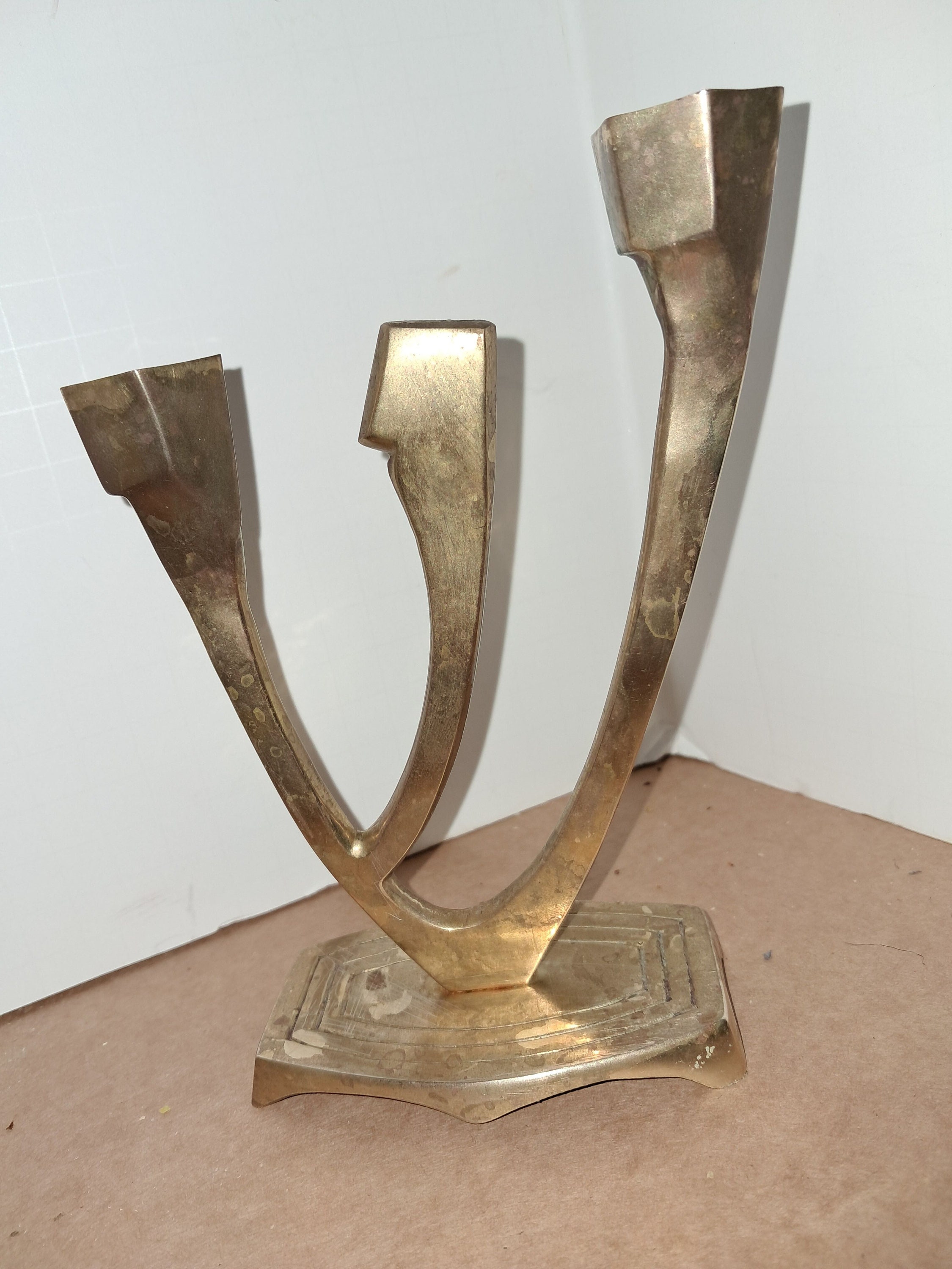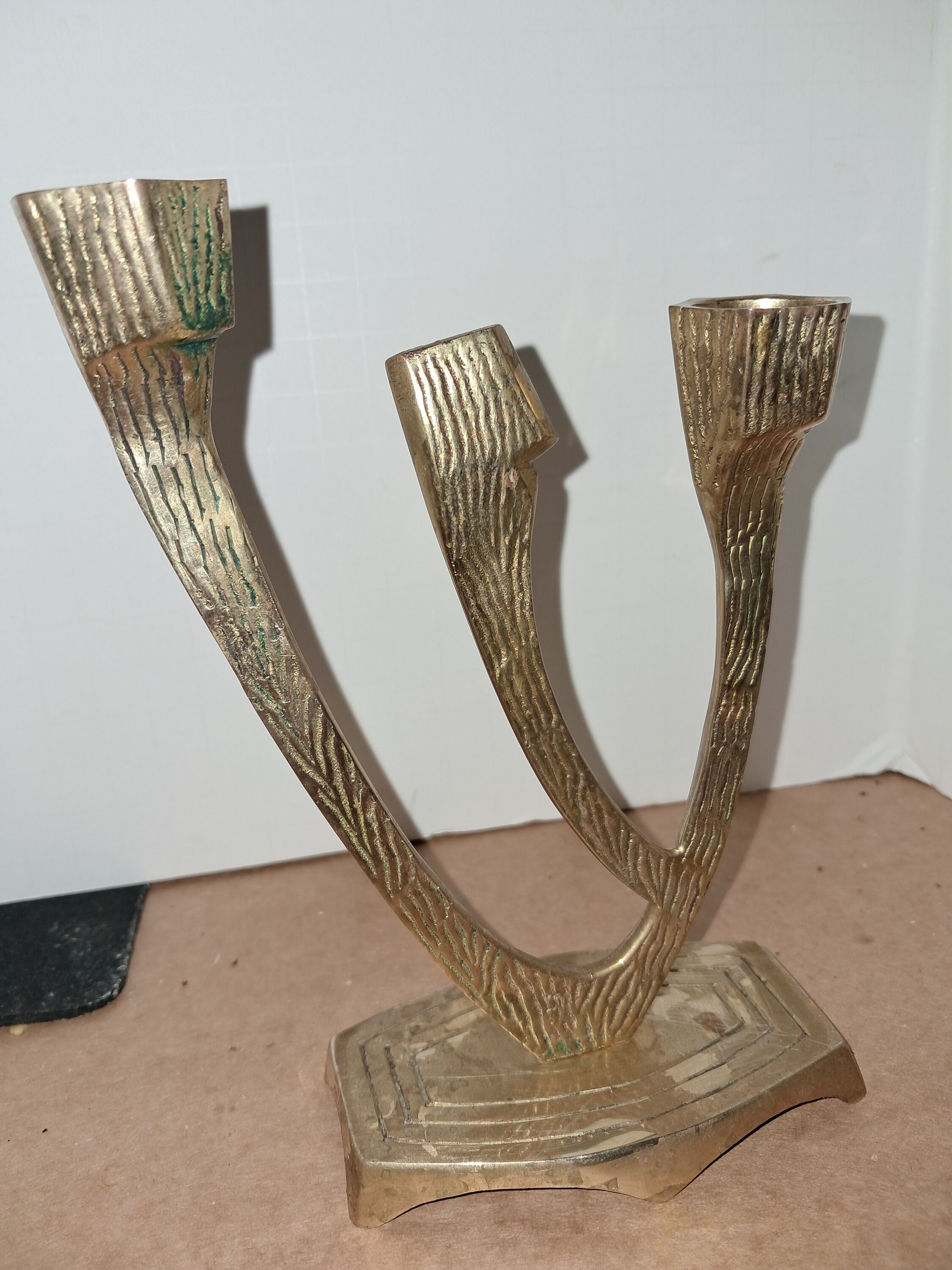Vintage Waimberg Brass 3 Arm Candle Holder Made In IsraelVintage Waimberg Candle Holder3 ArmMade Of BrassMade In Israel6 1/4" Tall x 5" Wide x 2 1/4" DeepCome Tarnish Due To Age