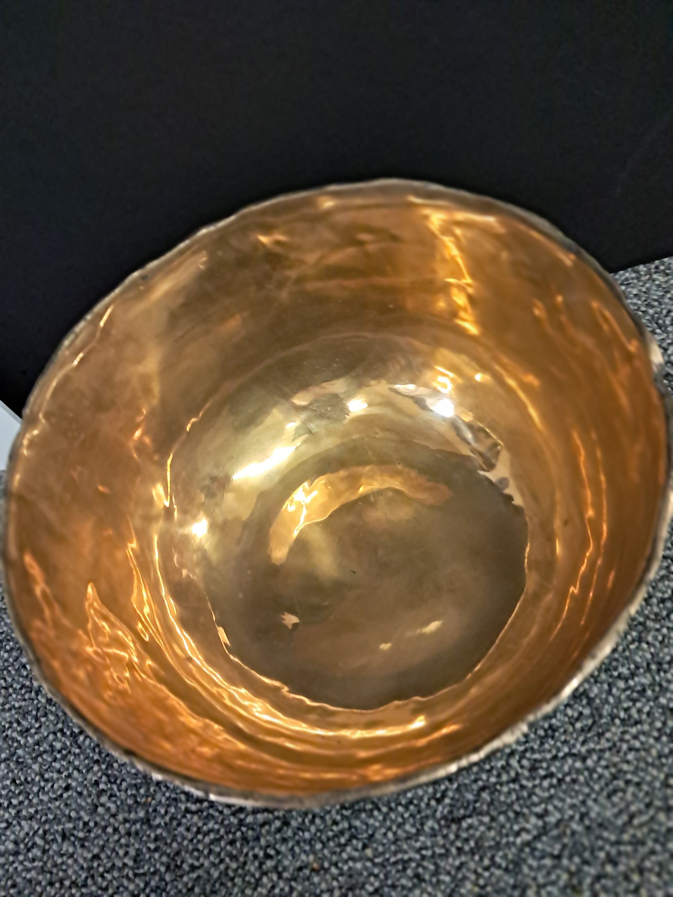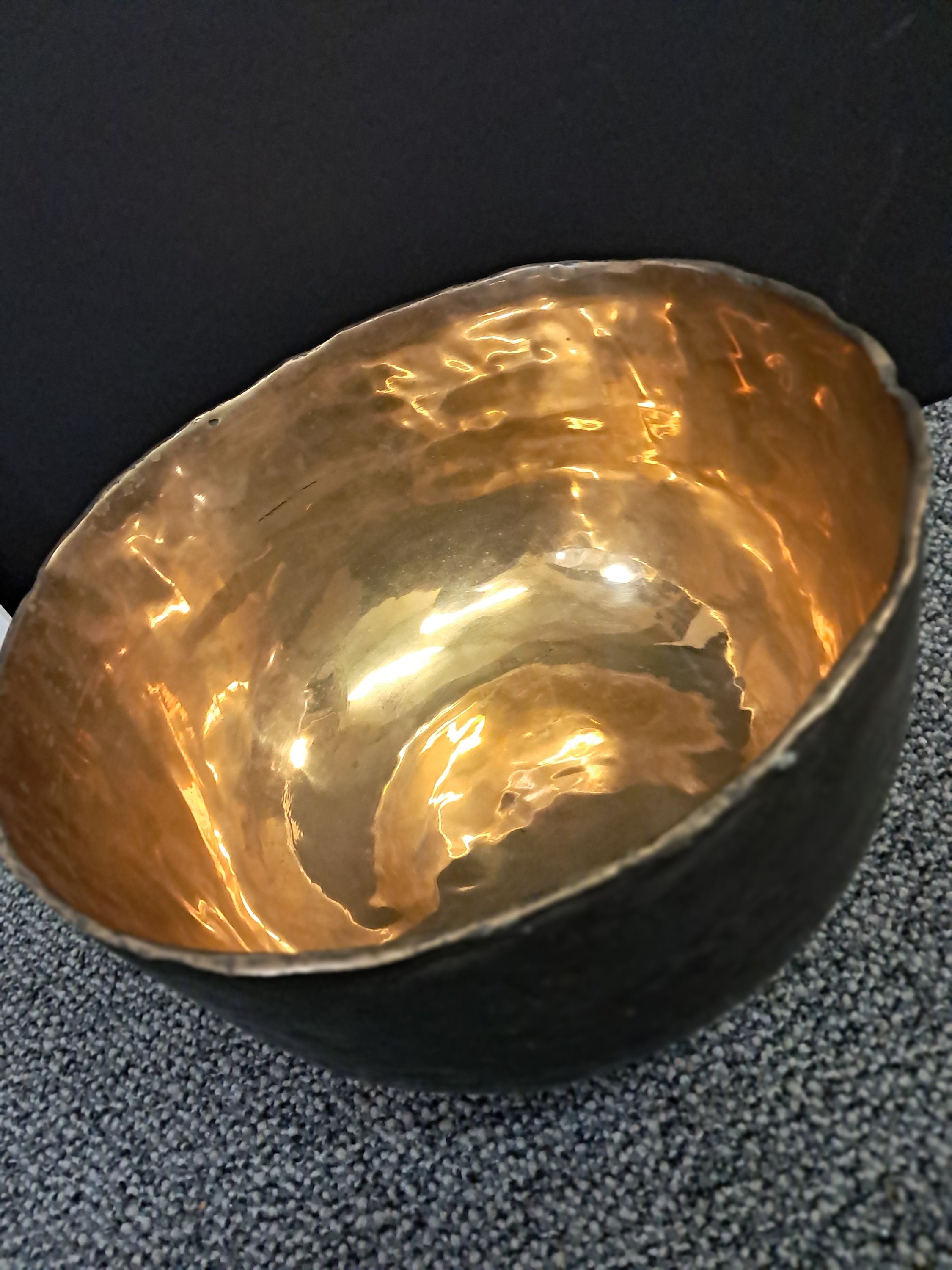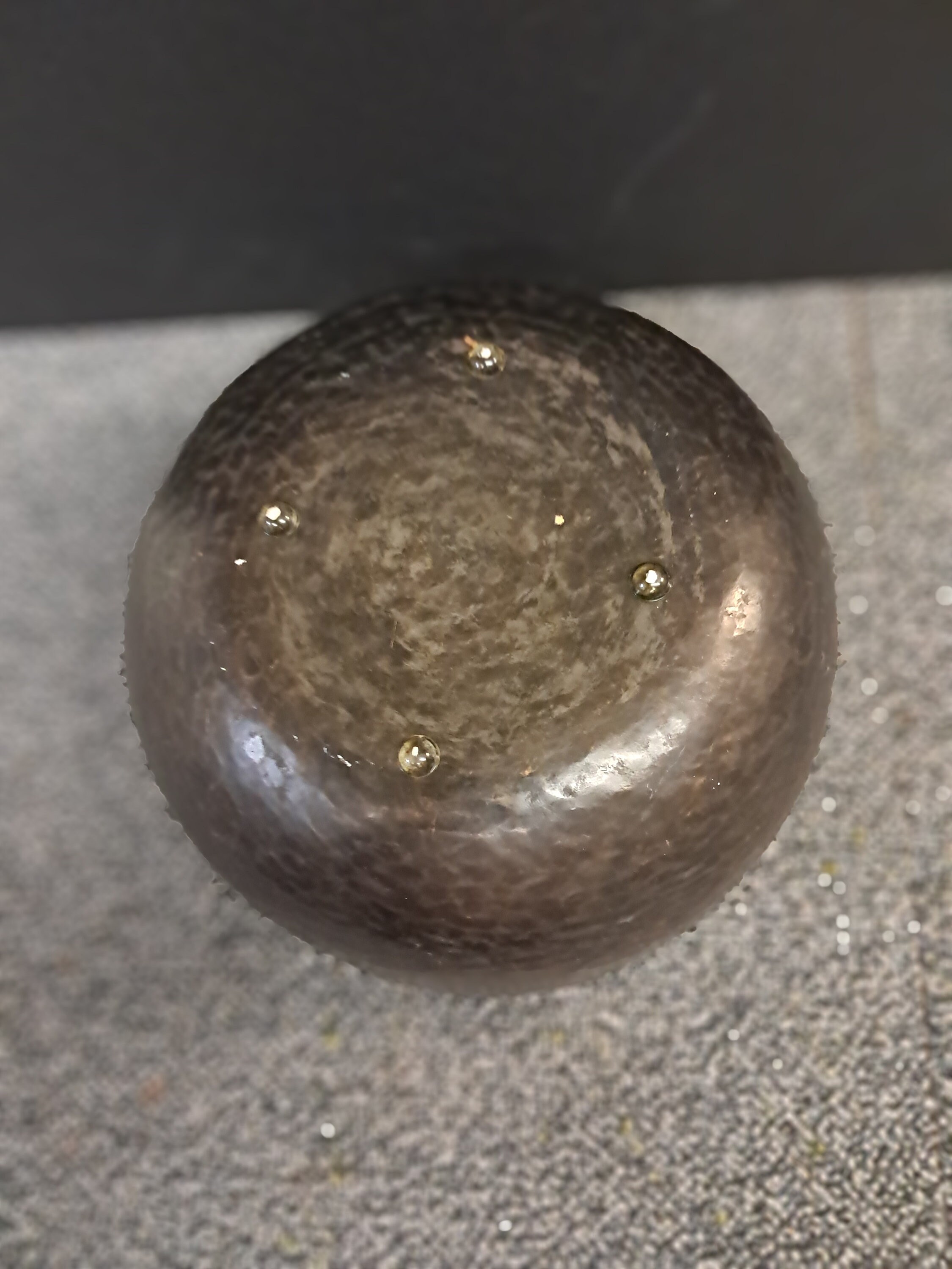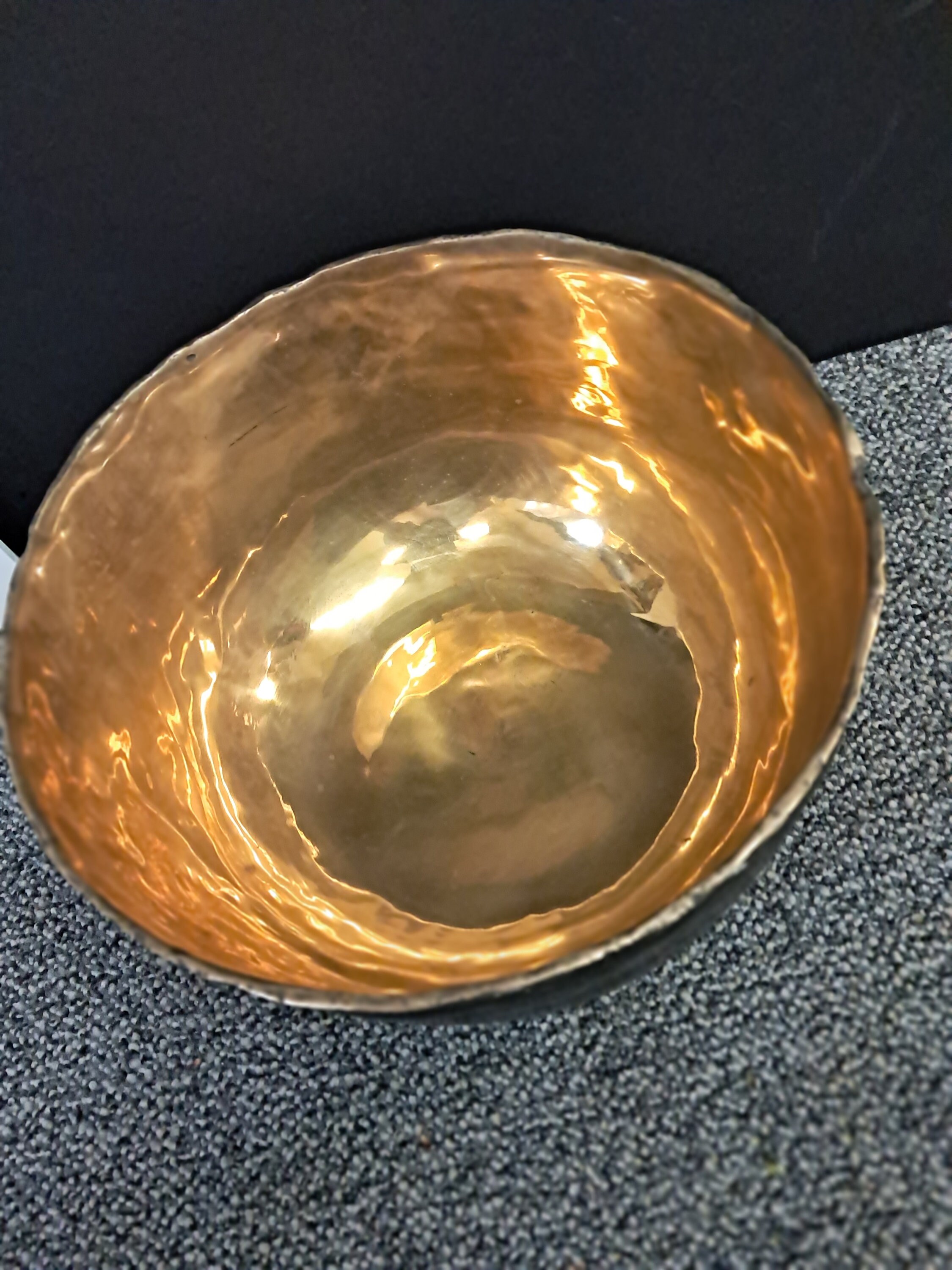 Art deco style decorative brown Brass /Metal round, 10-inch wide , bowl with gold interior will complement any table, counter or shelf