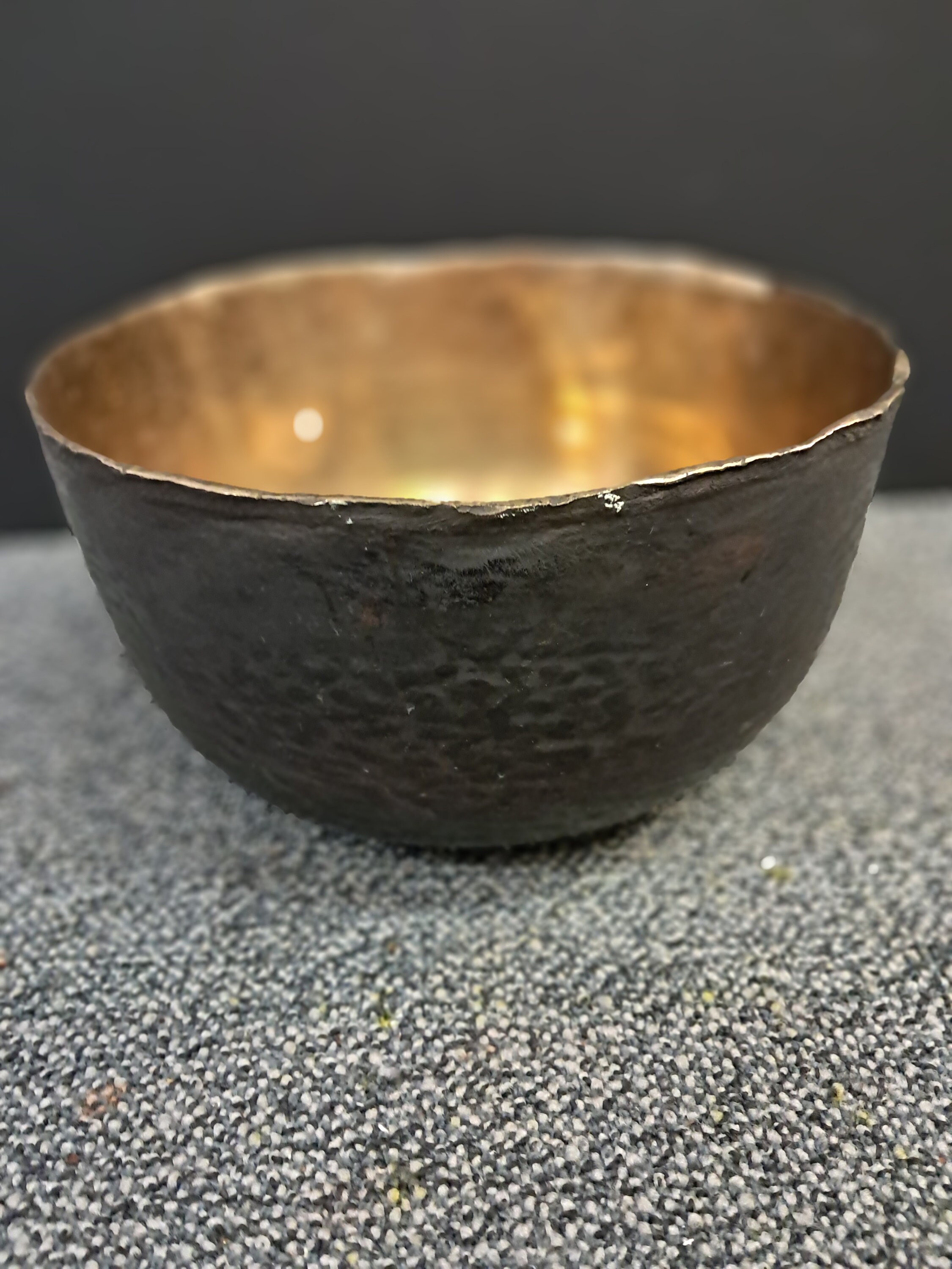 Brown Brass Hammered Decorative Bowl for Home Decor with Gold Interior,