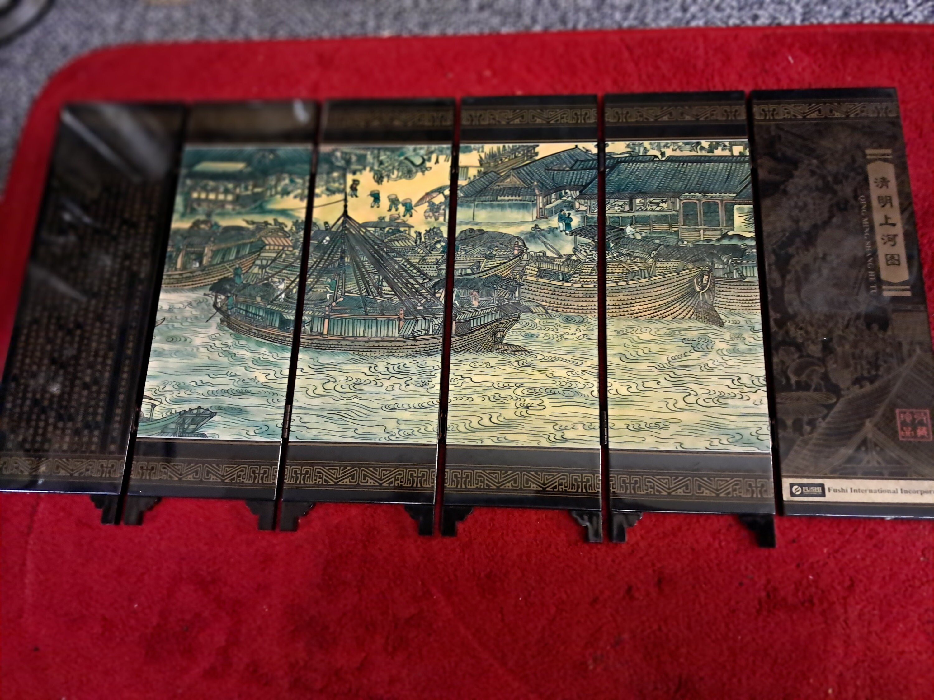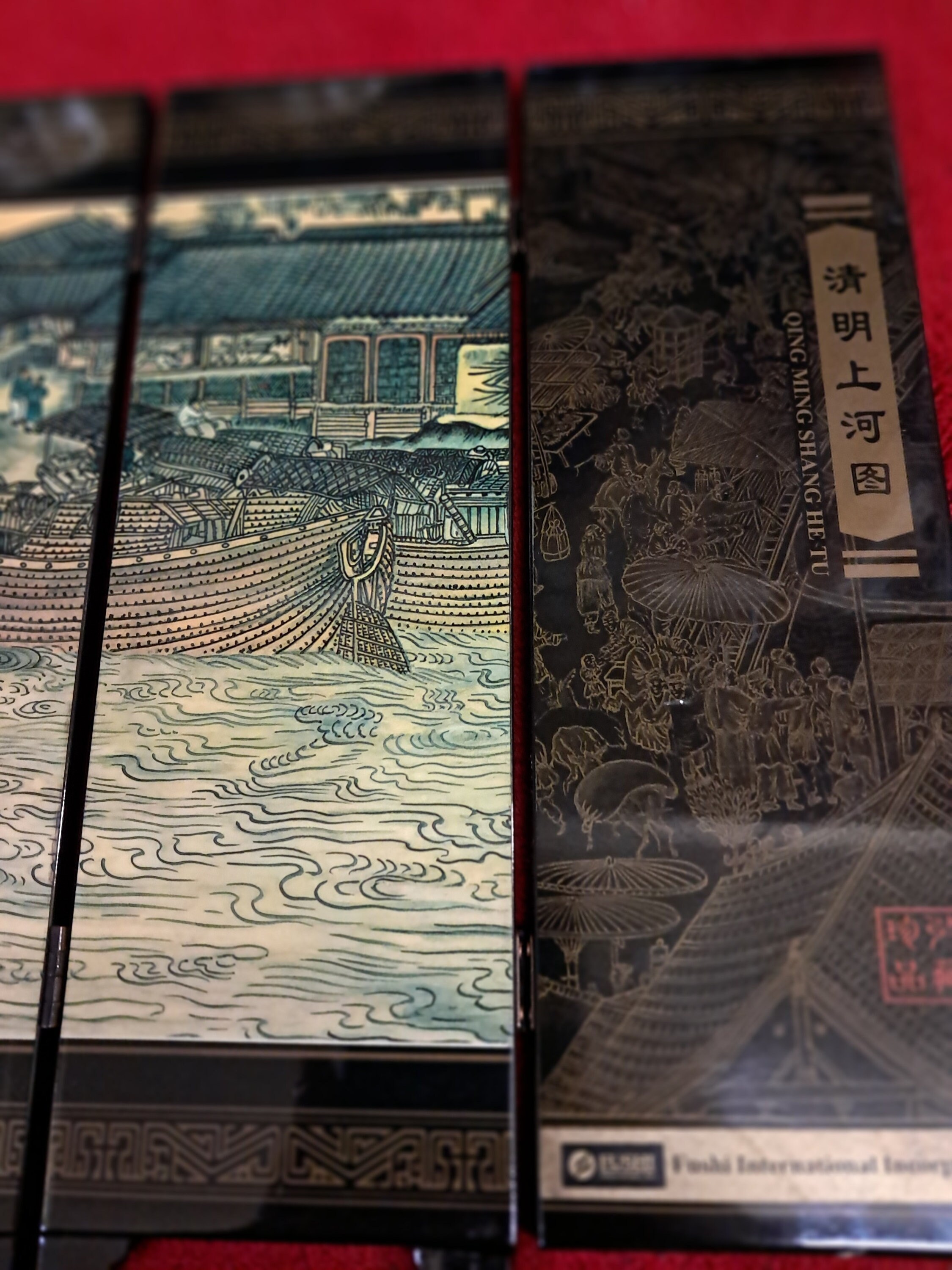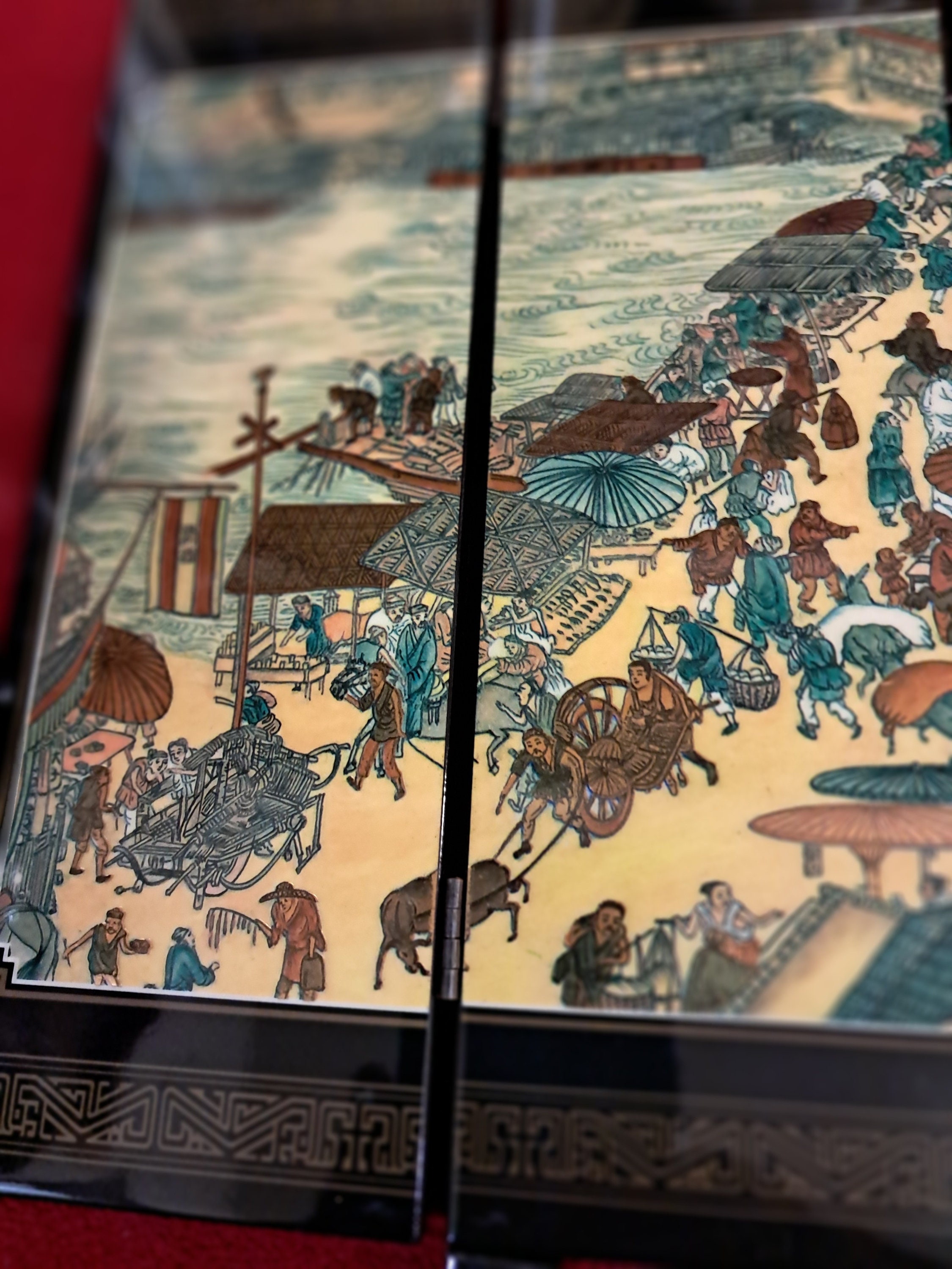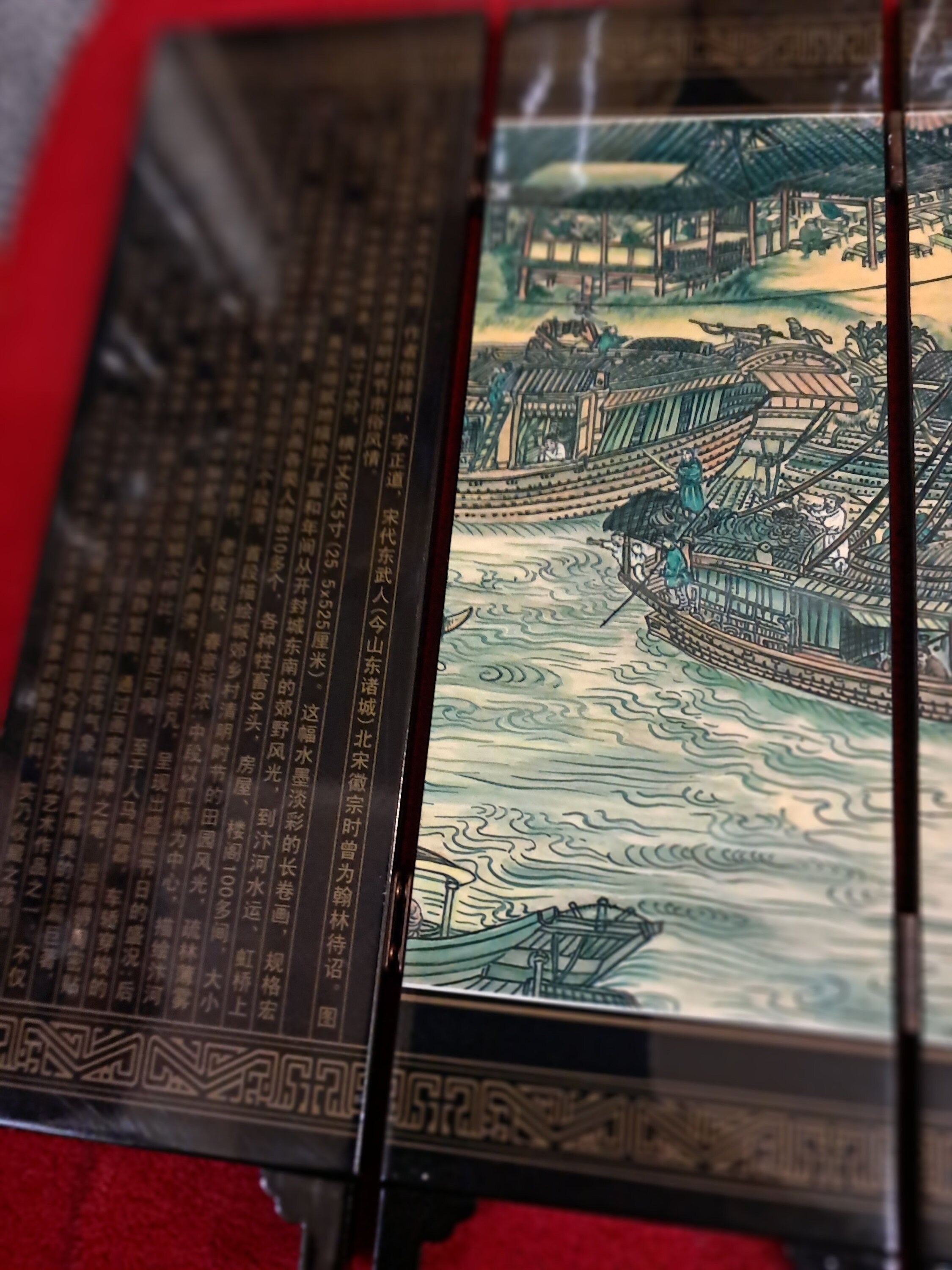Asian Table Screen 6 Panel Symphonic Picture Riverside Scene @ Qingming Festival
