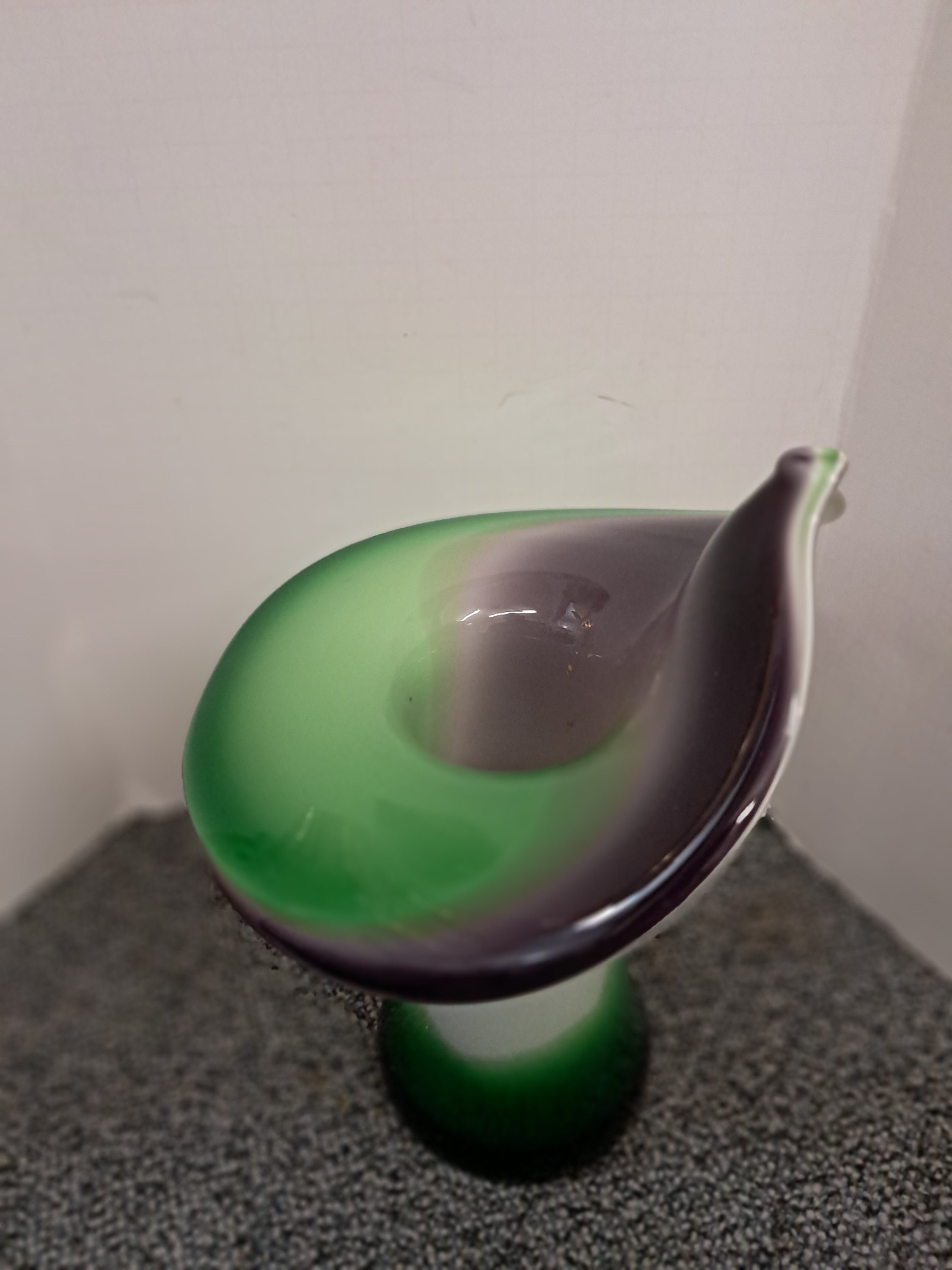 beautiful Murano glass Hand blown "Jack in the Pulpit" Calla Lilly vase in EXCELLENT condition with NO chips, NO cracks and NO hairlines.