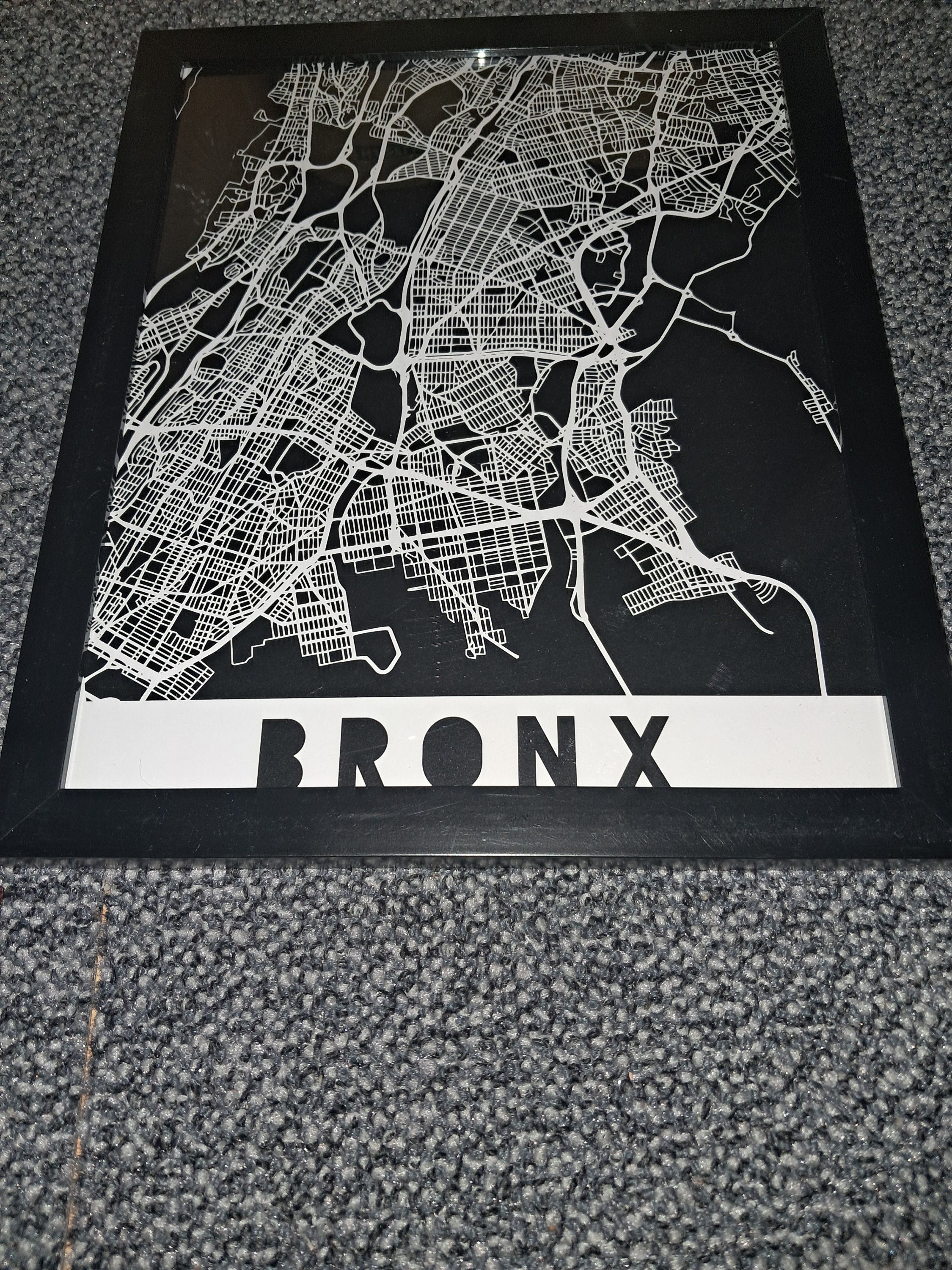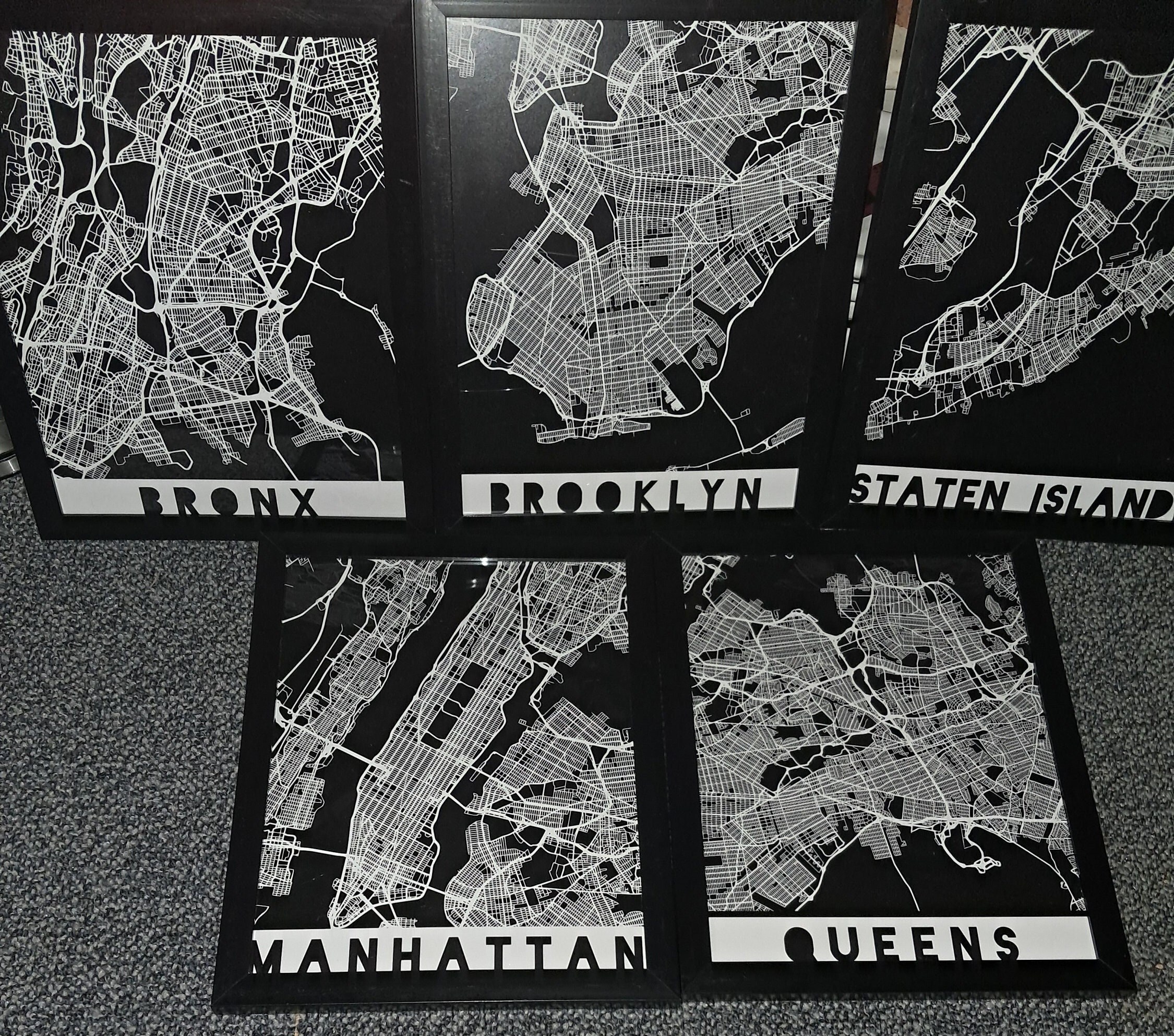 NYC Five Borought US Map Poster Black & White Hometown City Print .