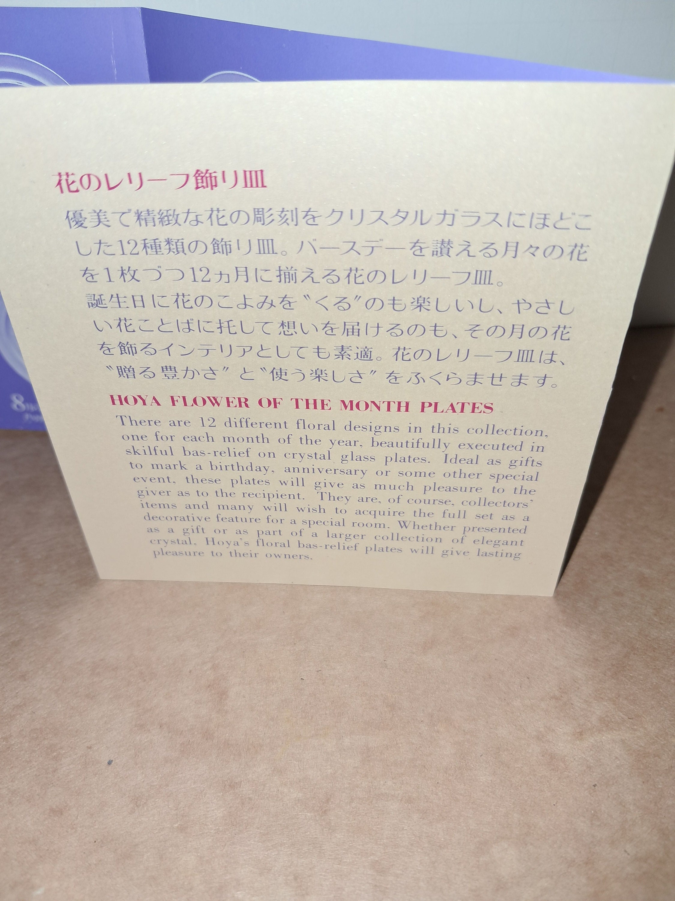 Hoya Crystal Flower of The Month Plate Yamamoto Japan 8.25” Plates
