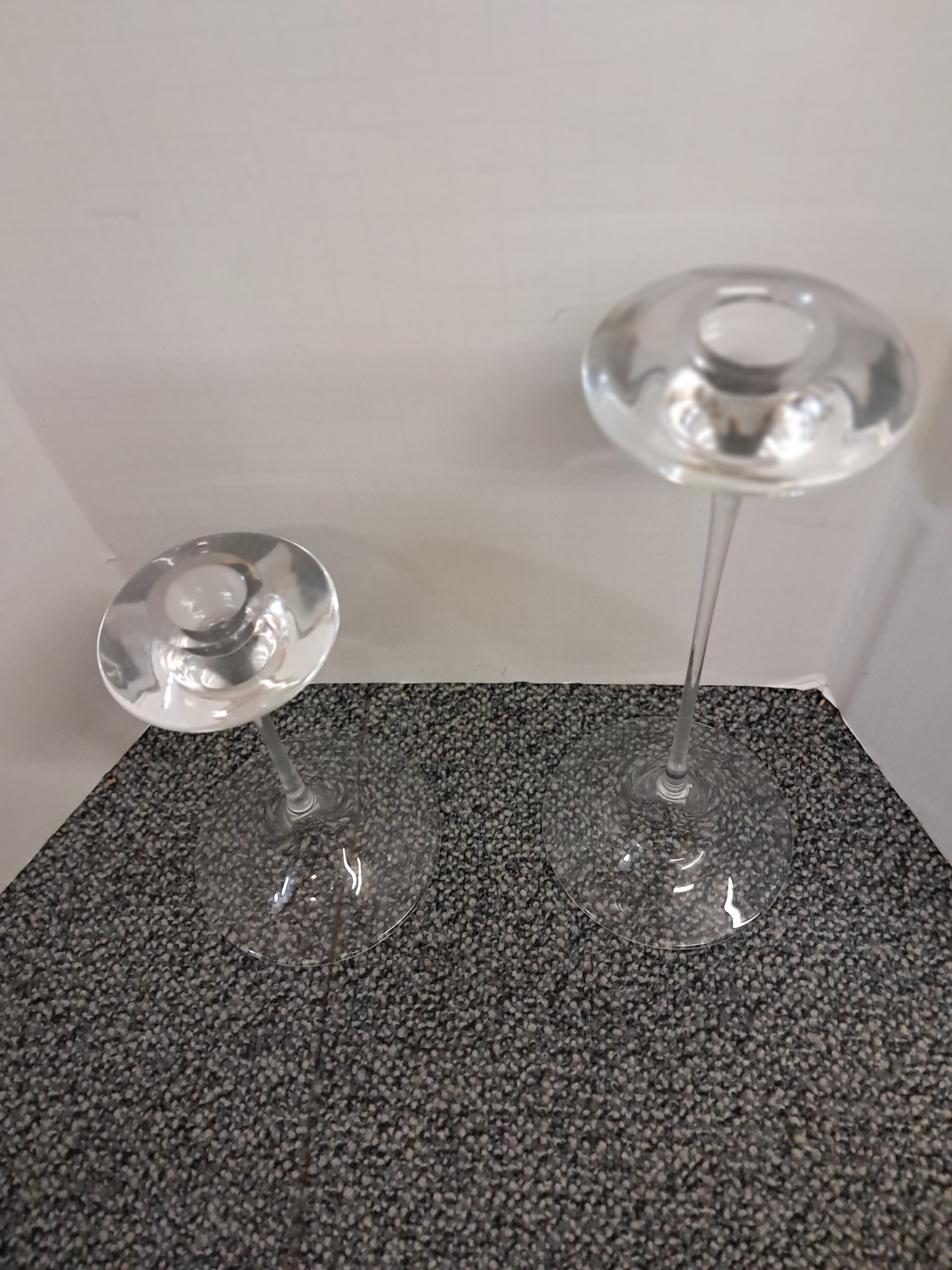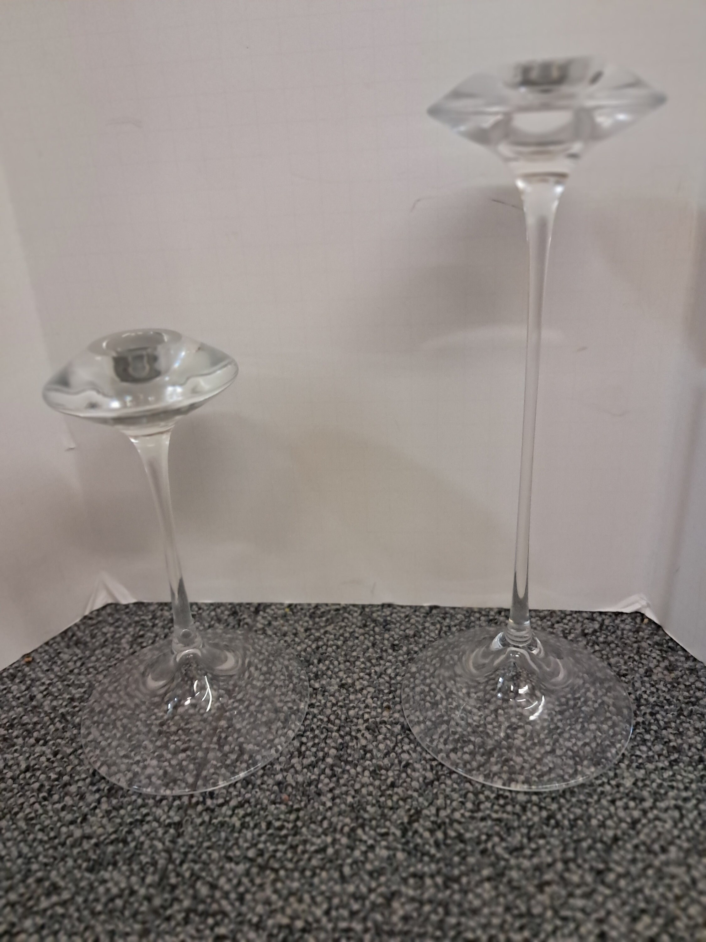 2 Kosta Boda Fanfare Hand Blown Signed Kjell Engman Candlesticks Long Stem