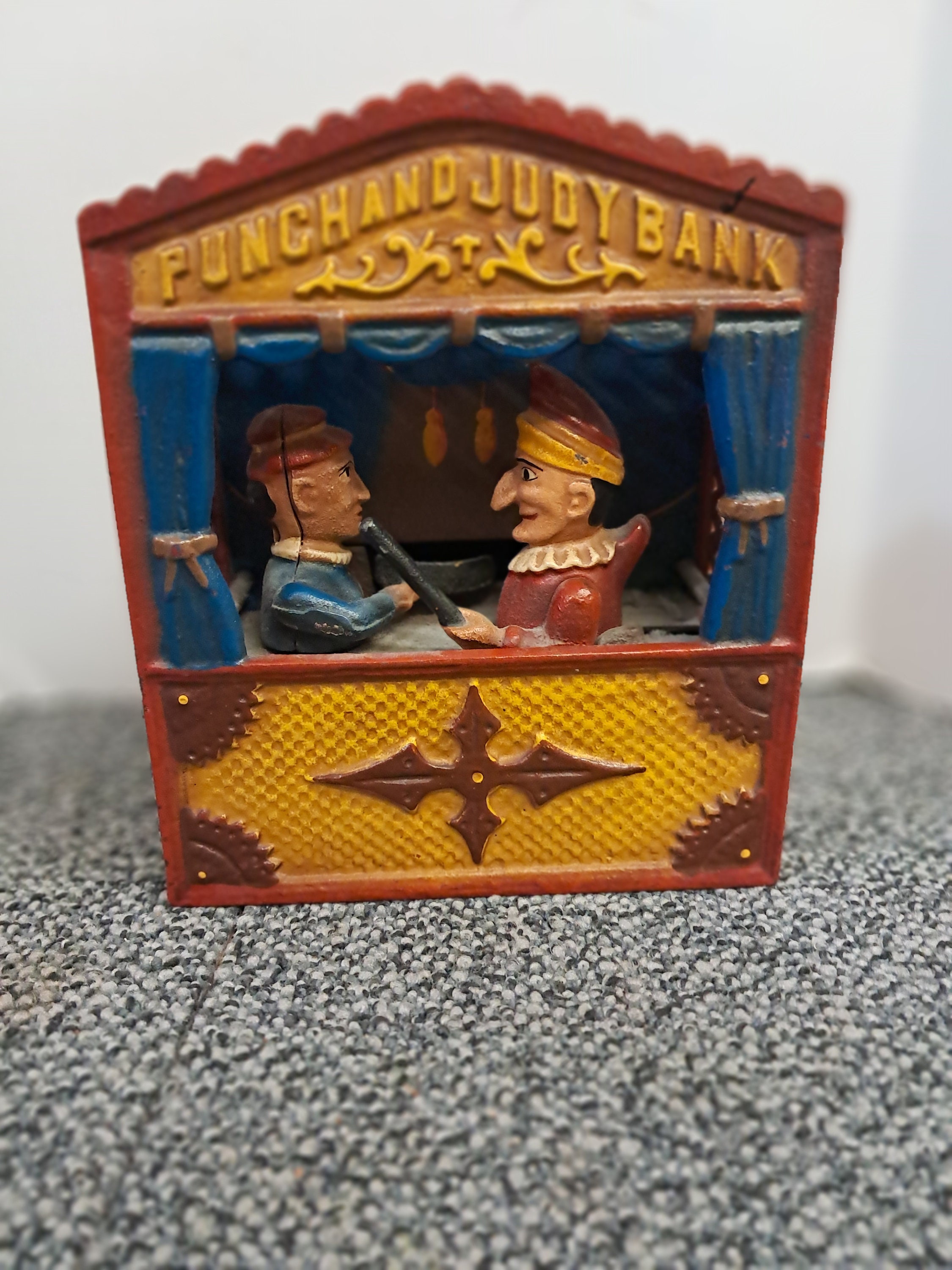 Vintage Punch and Judy Cast Iron Book of Knowledge 1960s WORKS w Stopper