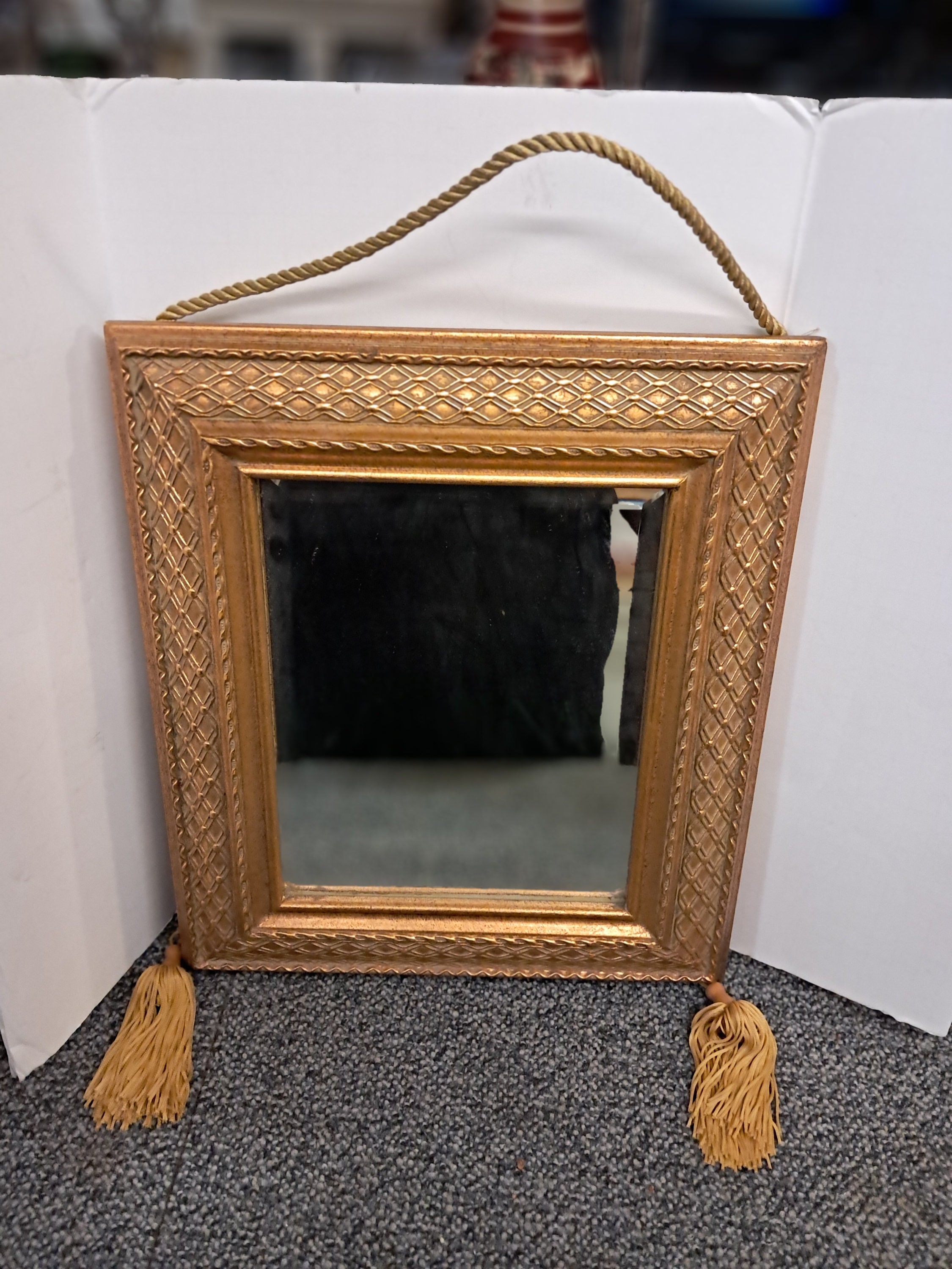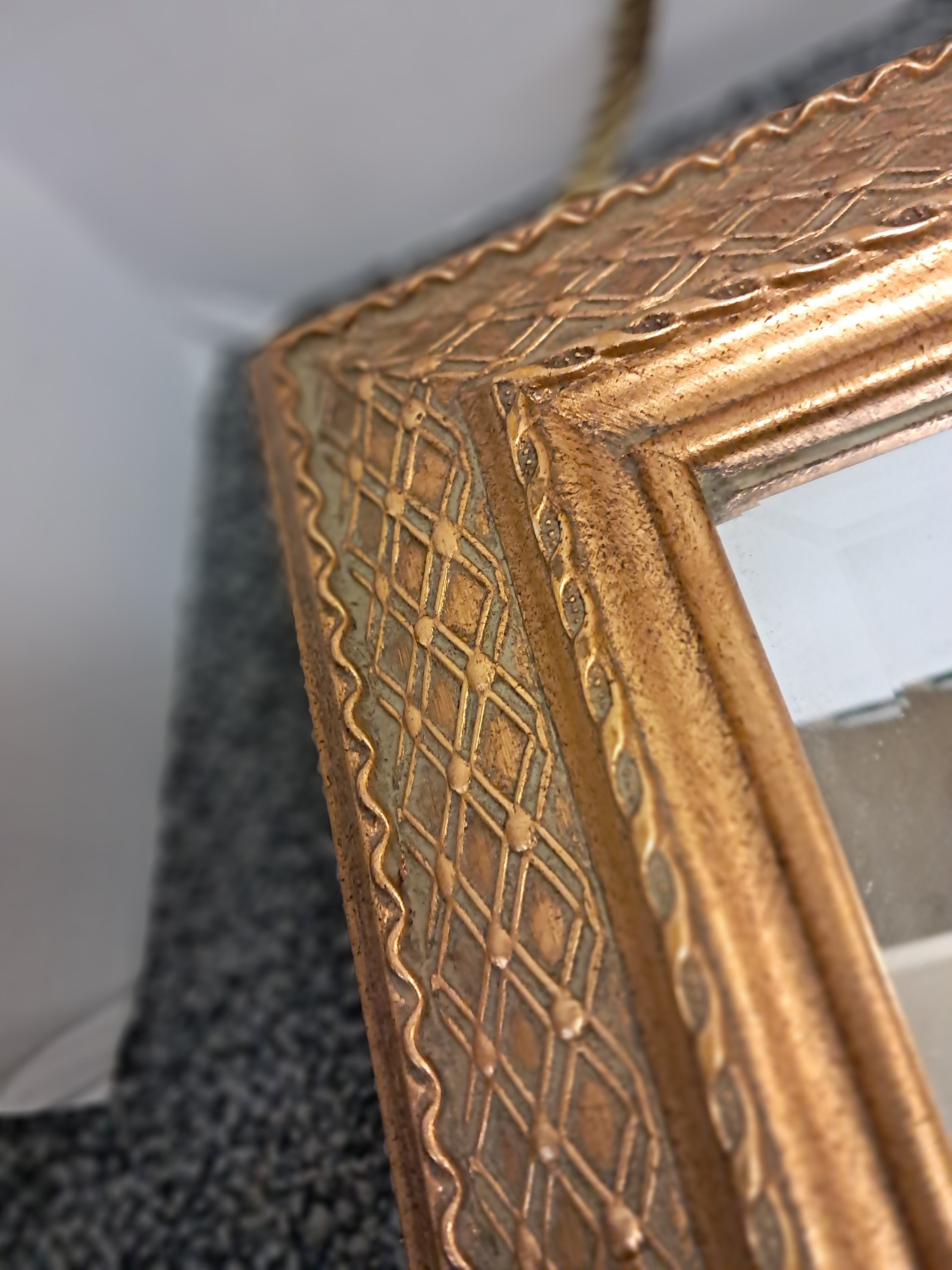 Vintage Gold Carved Wood Frame Beveled Mirror