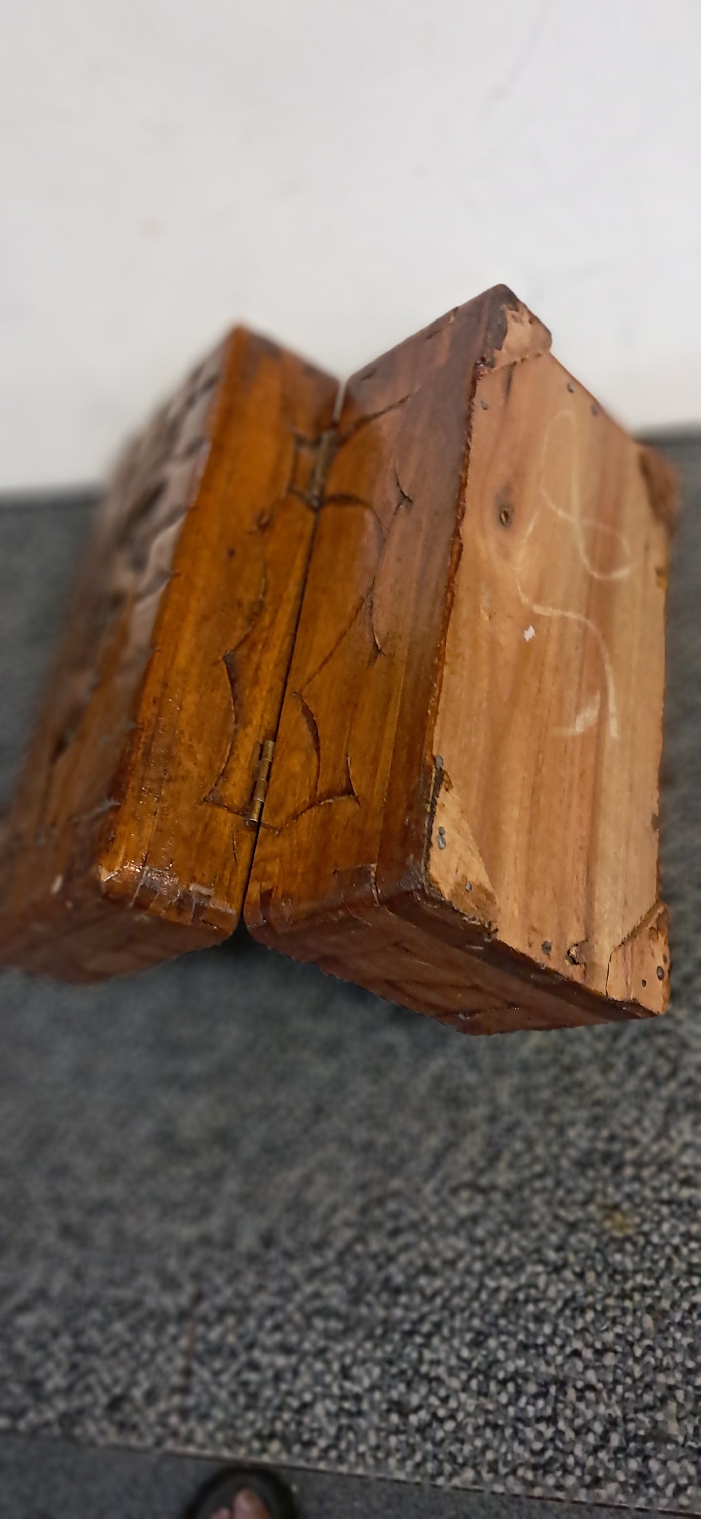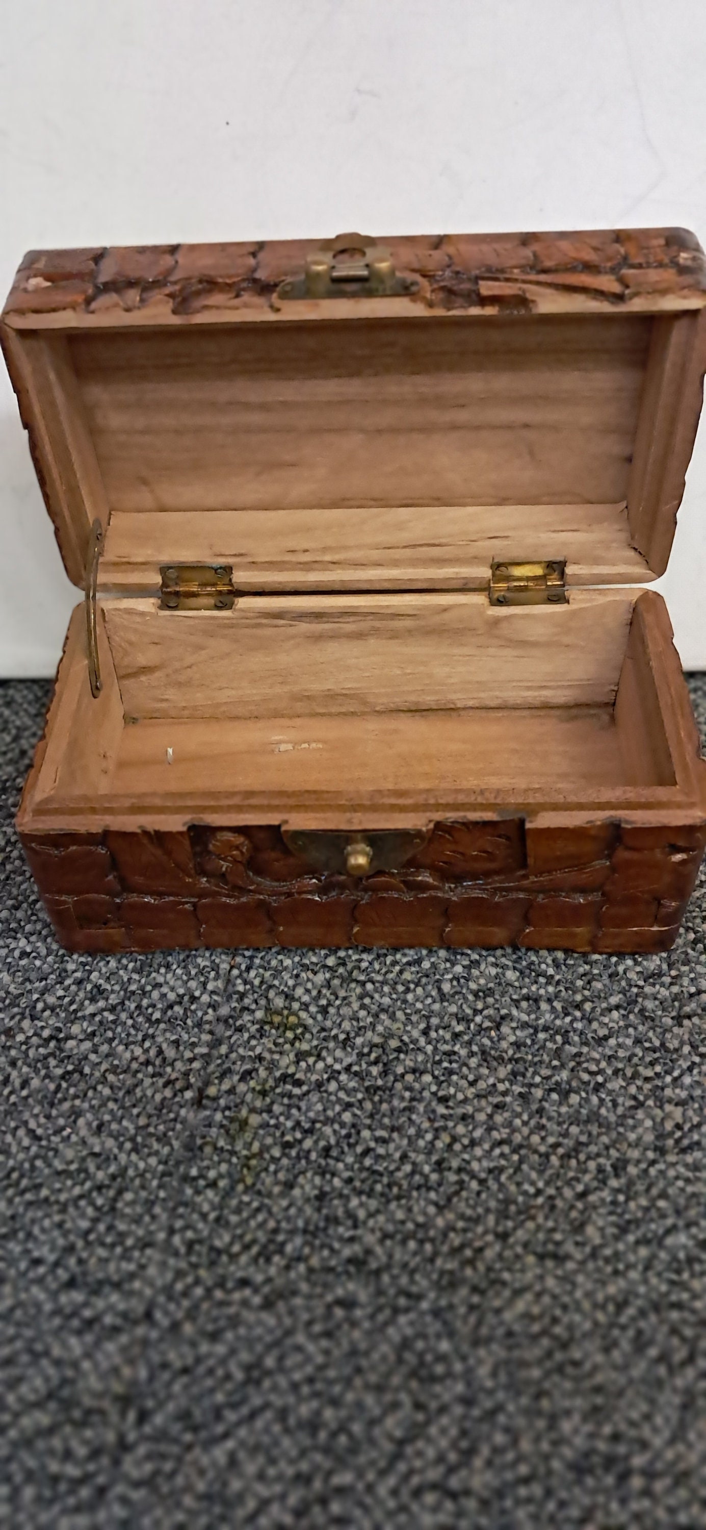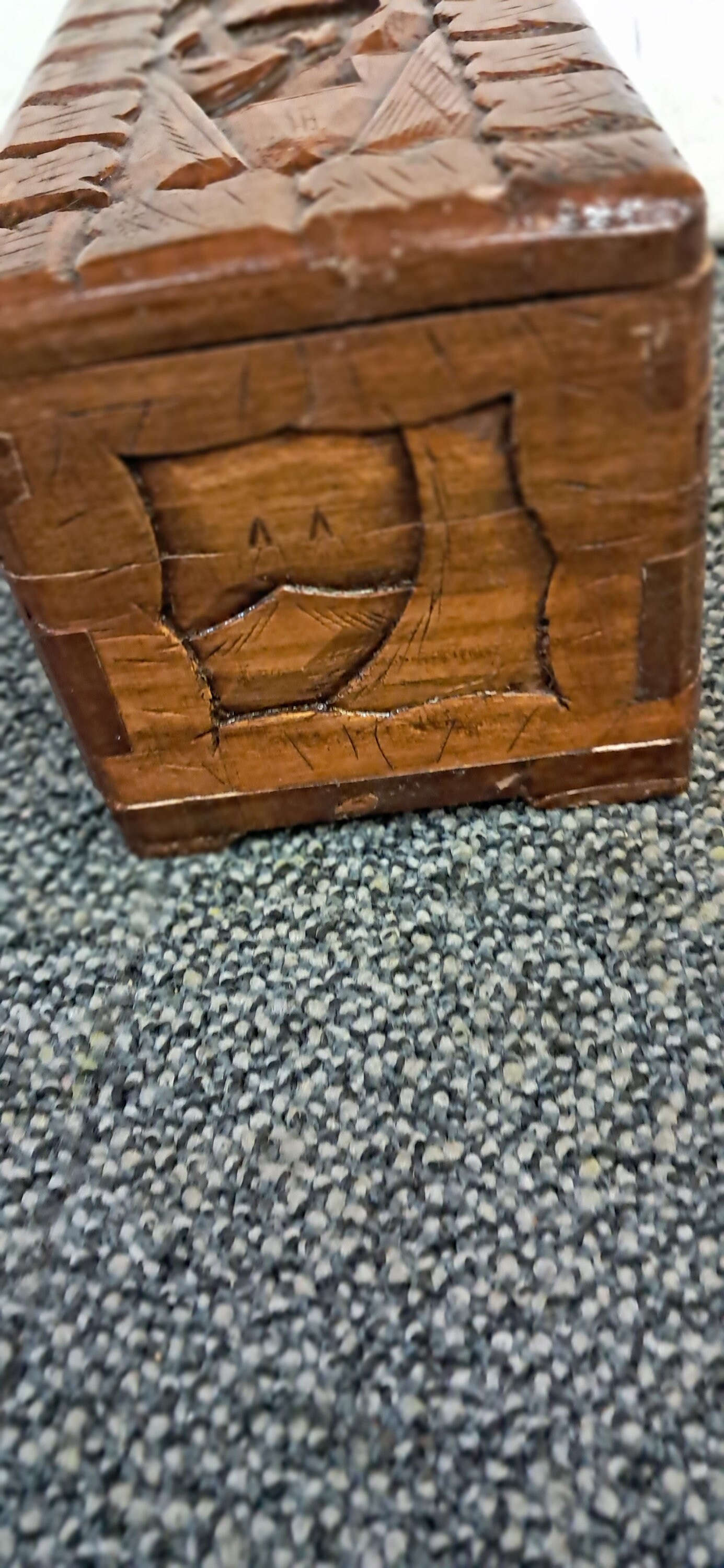 This beautifully camphor wood box measures 8 x 4 x 4.25 inches and weighs 2 pounds.