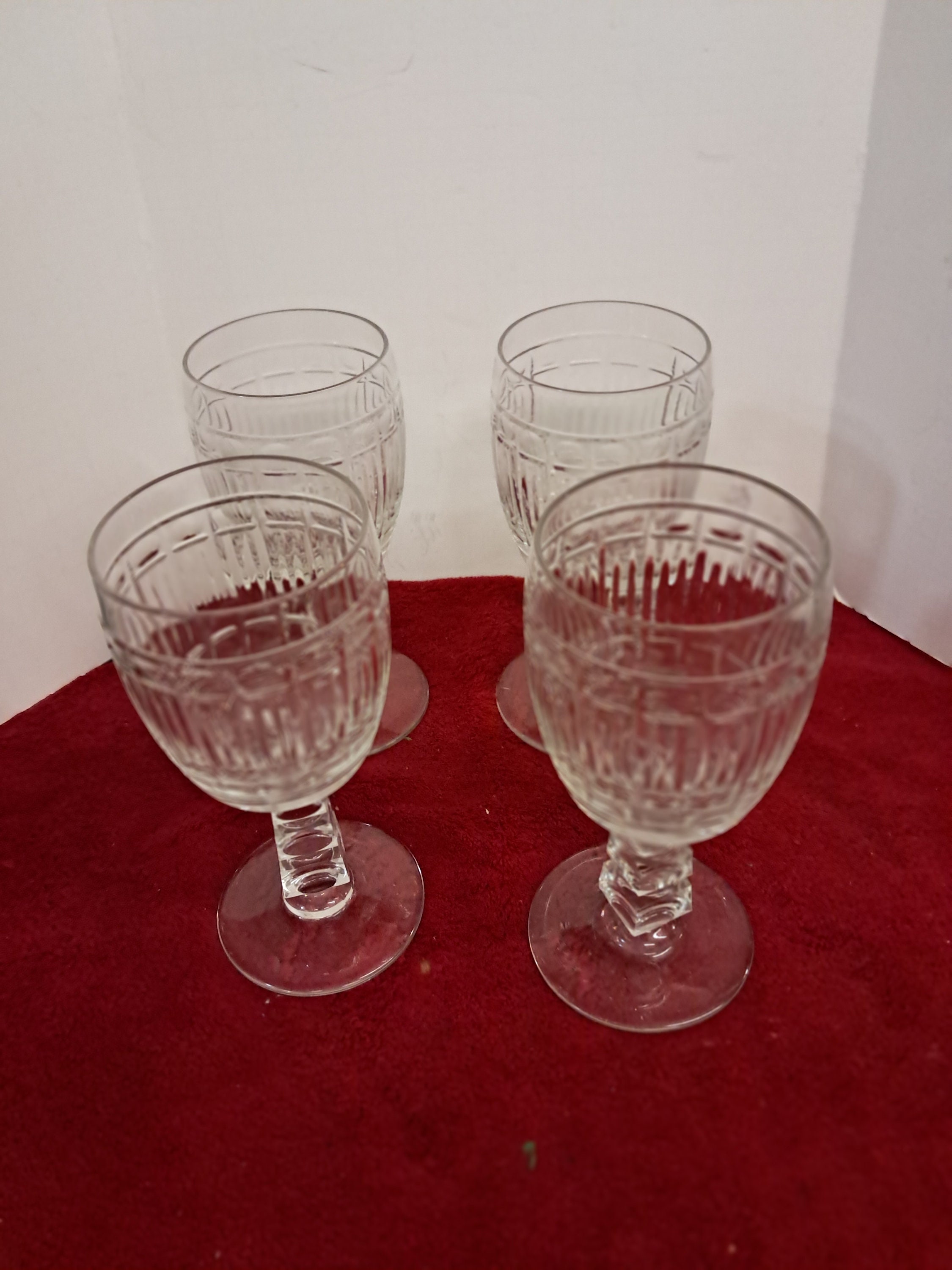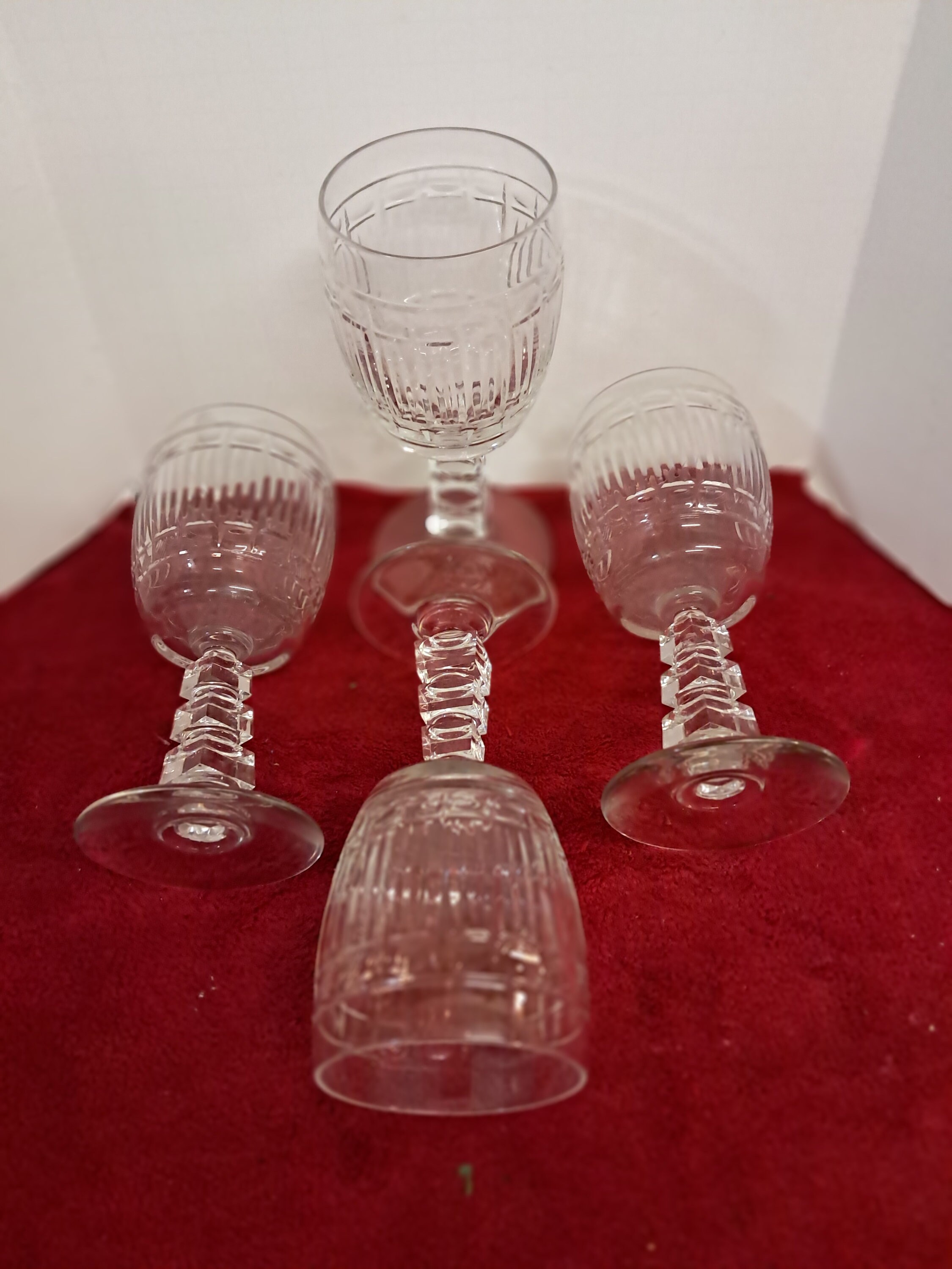 Set Of Triple layers, Rock Pattern Style Crystal Wine GlassesEstate Sale Find Vintage of 1940's No MarkingExcellent Contions with NO damages6.75" tall x 3" wide x 3" baseSet of Four