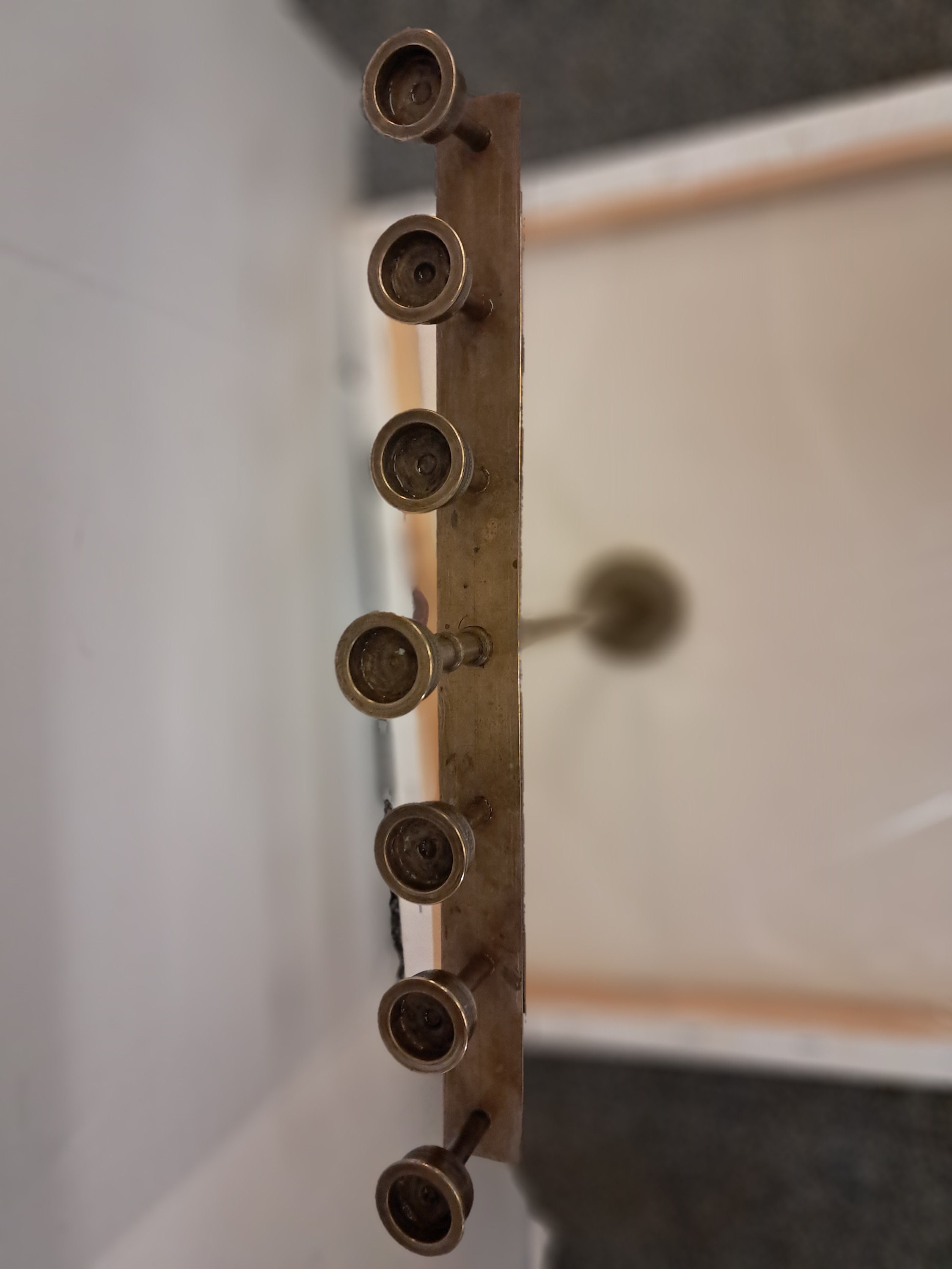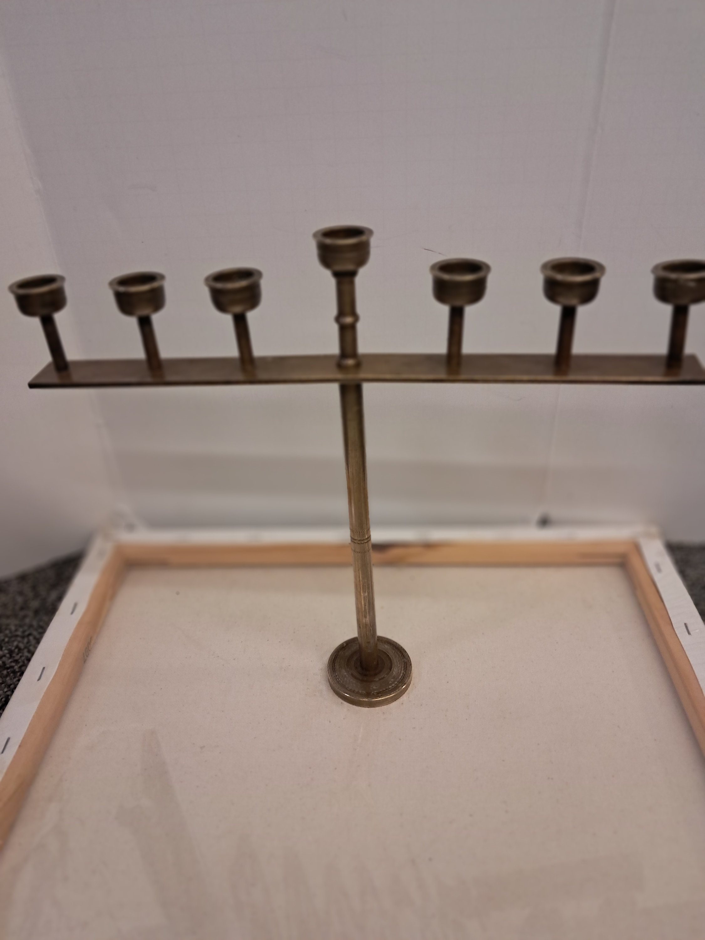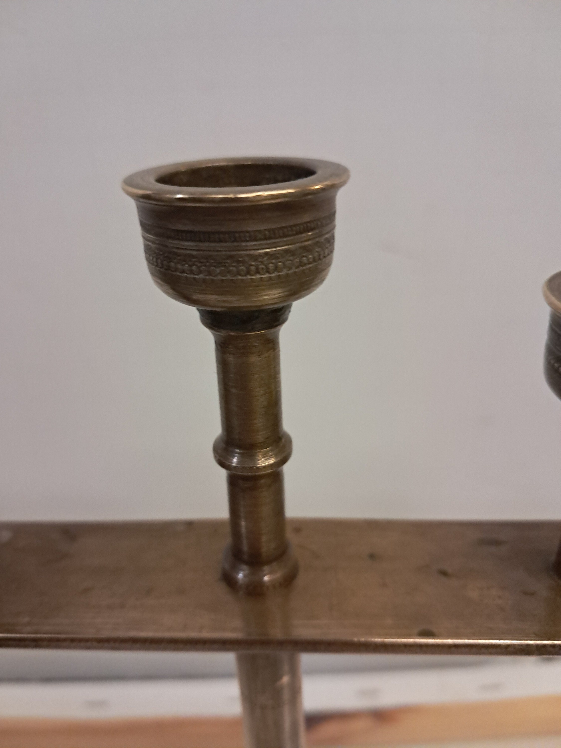Vintage Brass Menorah,Candle Holder10.25" tall x 12" wide x 2" deep( base)Estate Sale find. Circa 1950'sPerfet Condition No damagesVintaged used